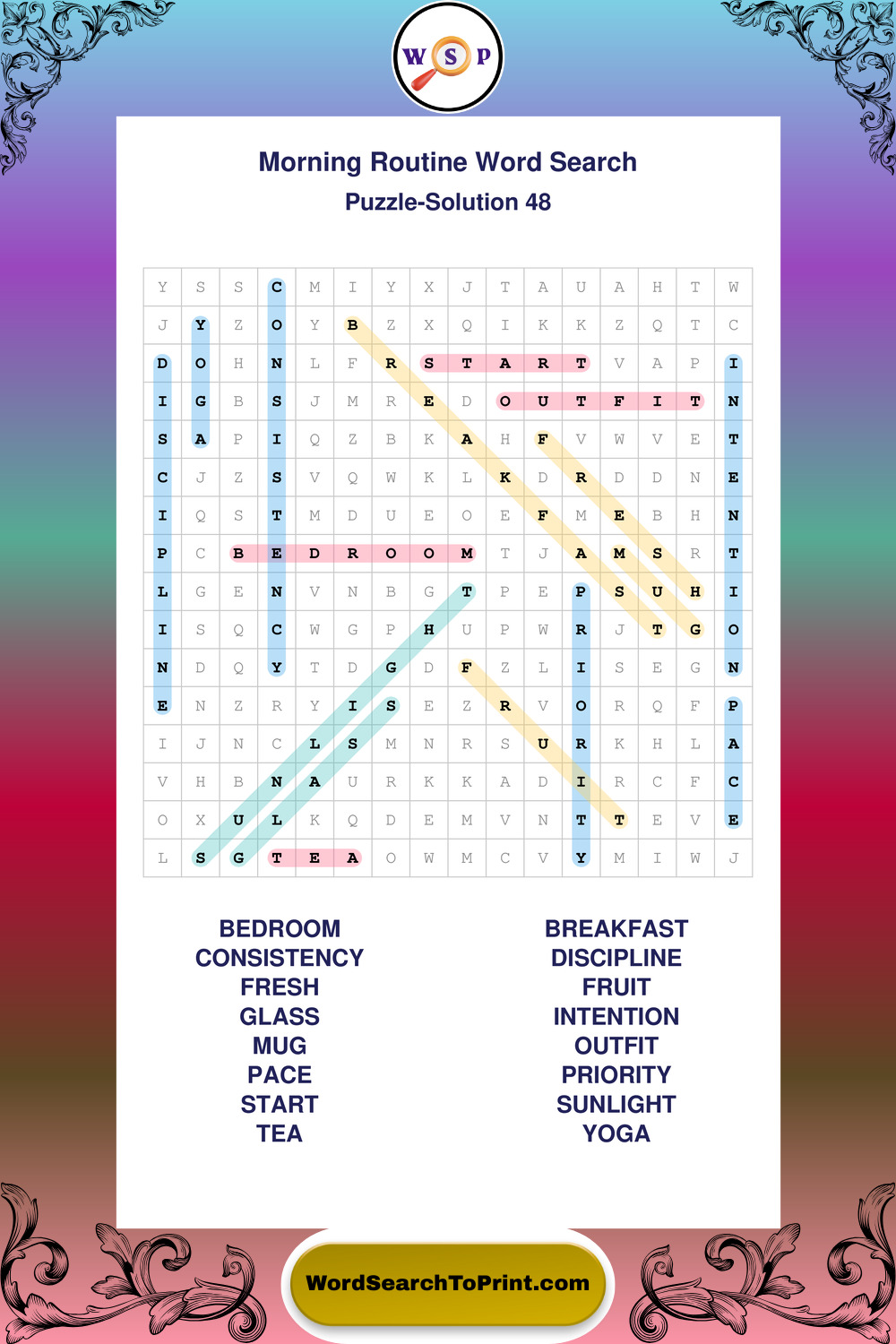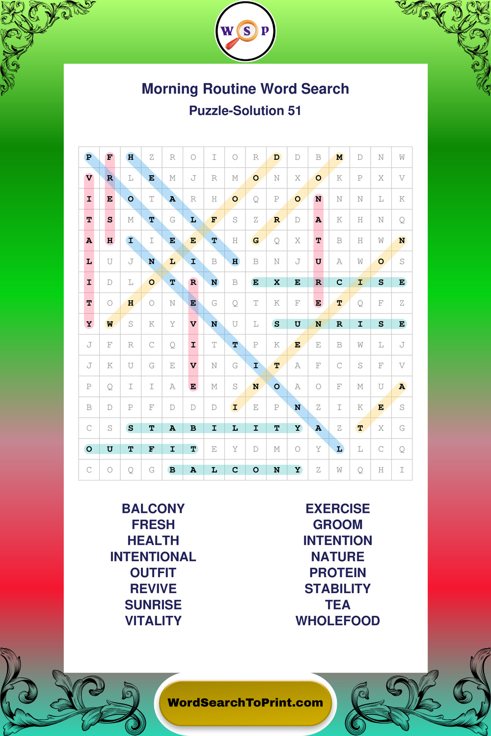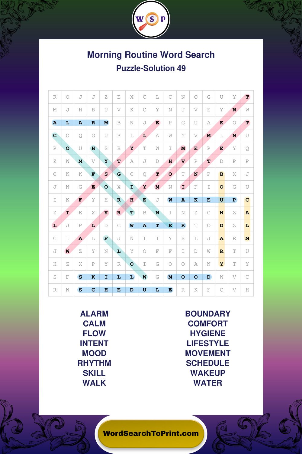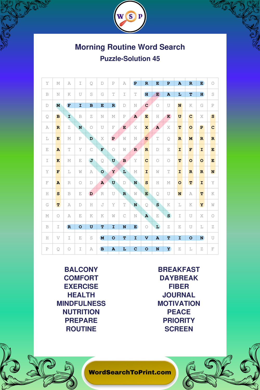 Printable Morning Routine Wordsearch Puzzles