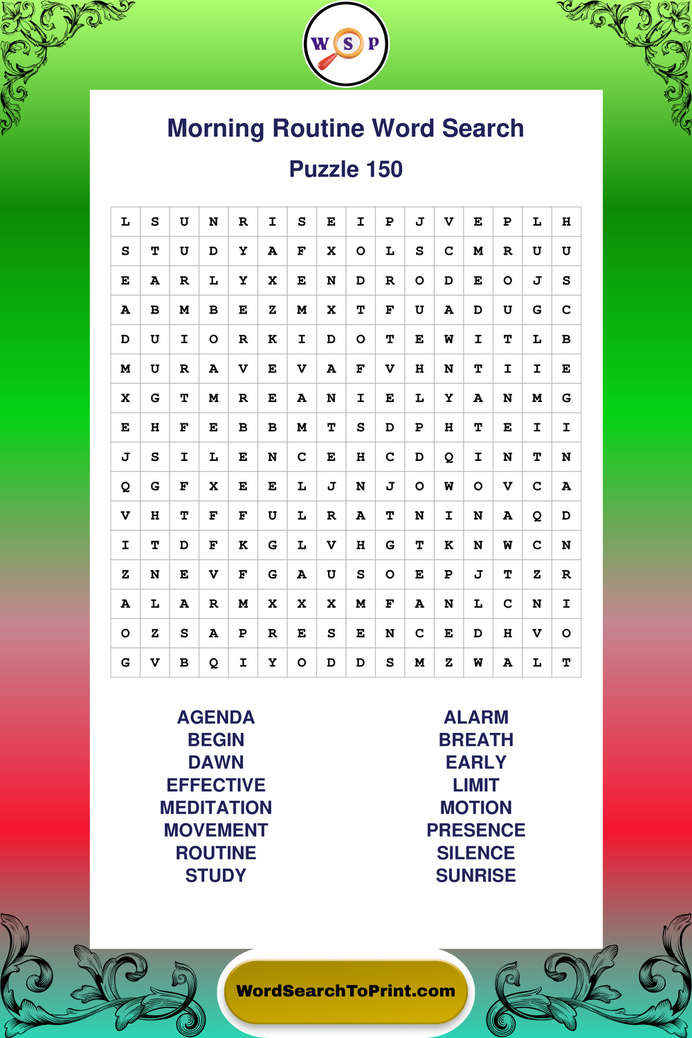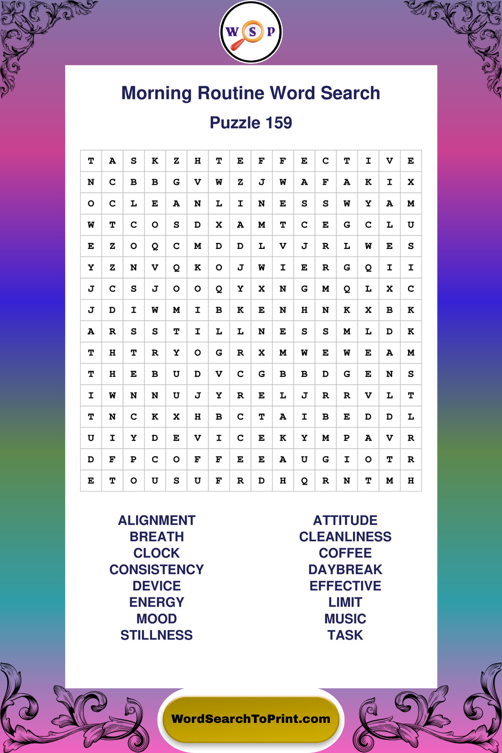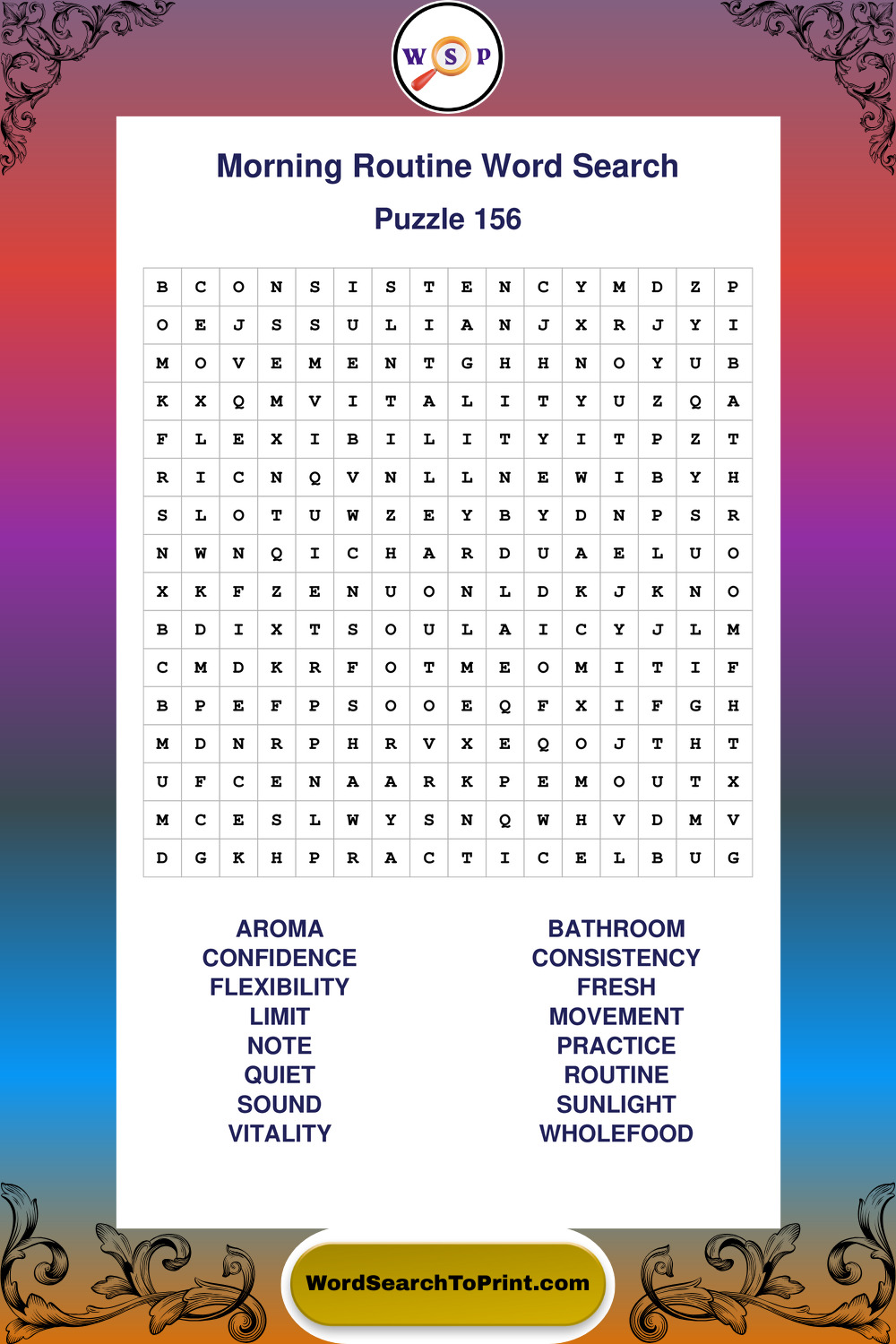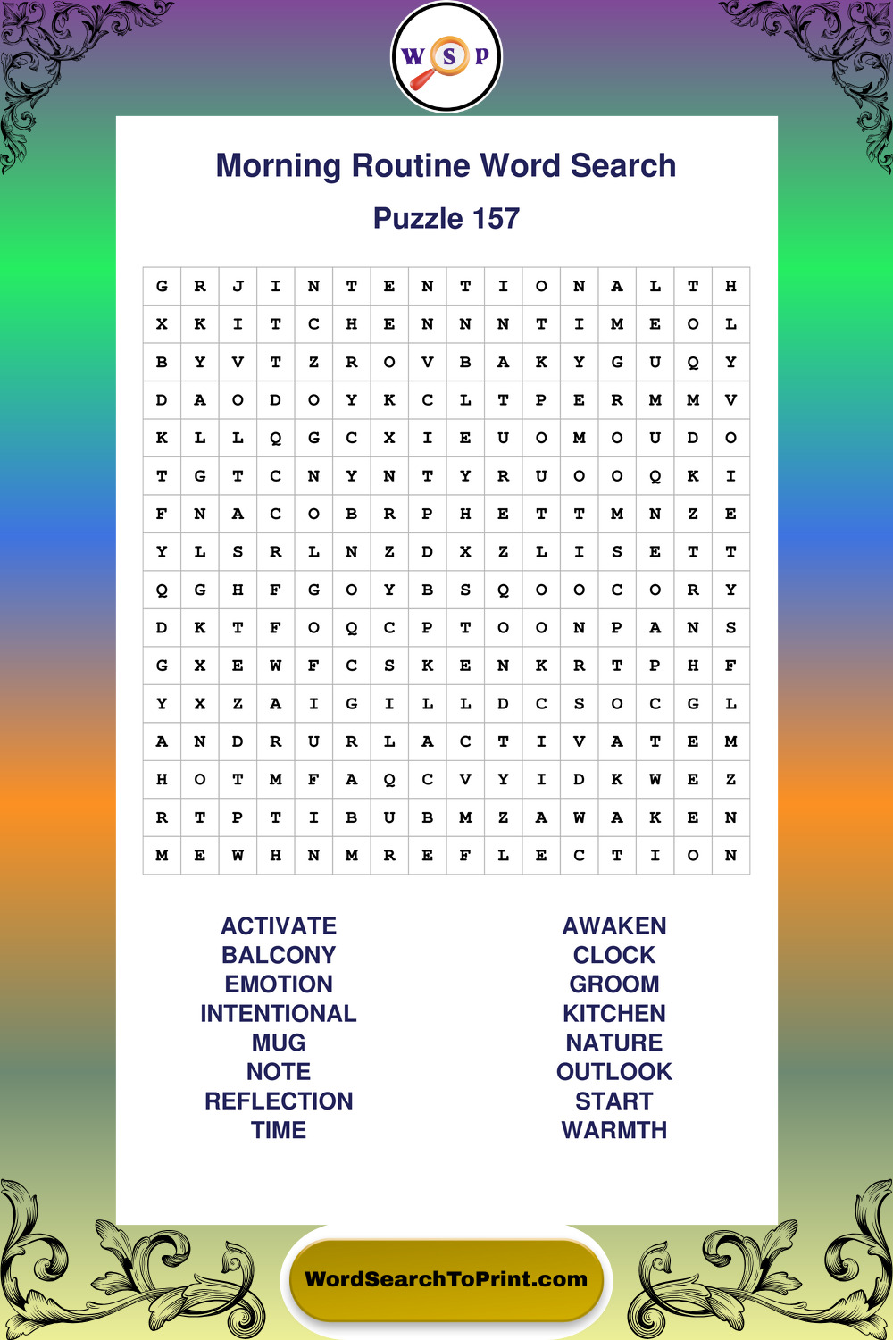 A relaxing collection of large print Morning Routine wordsearches designed for comfortable solving and steady focus.