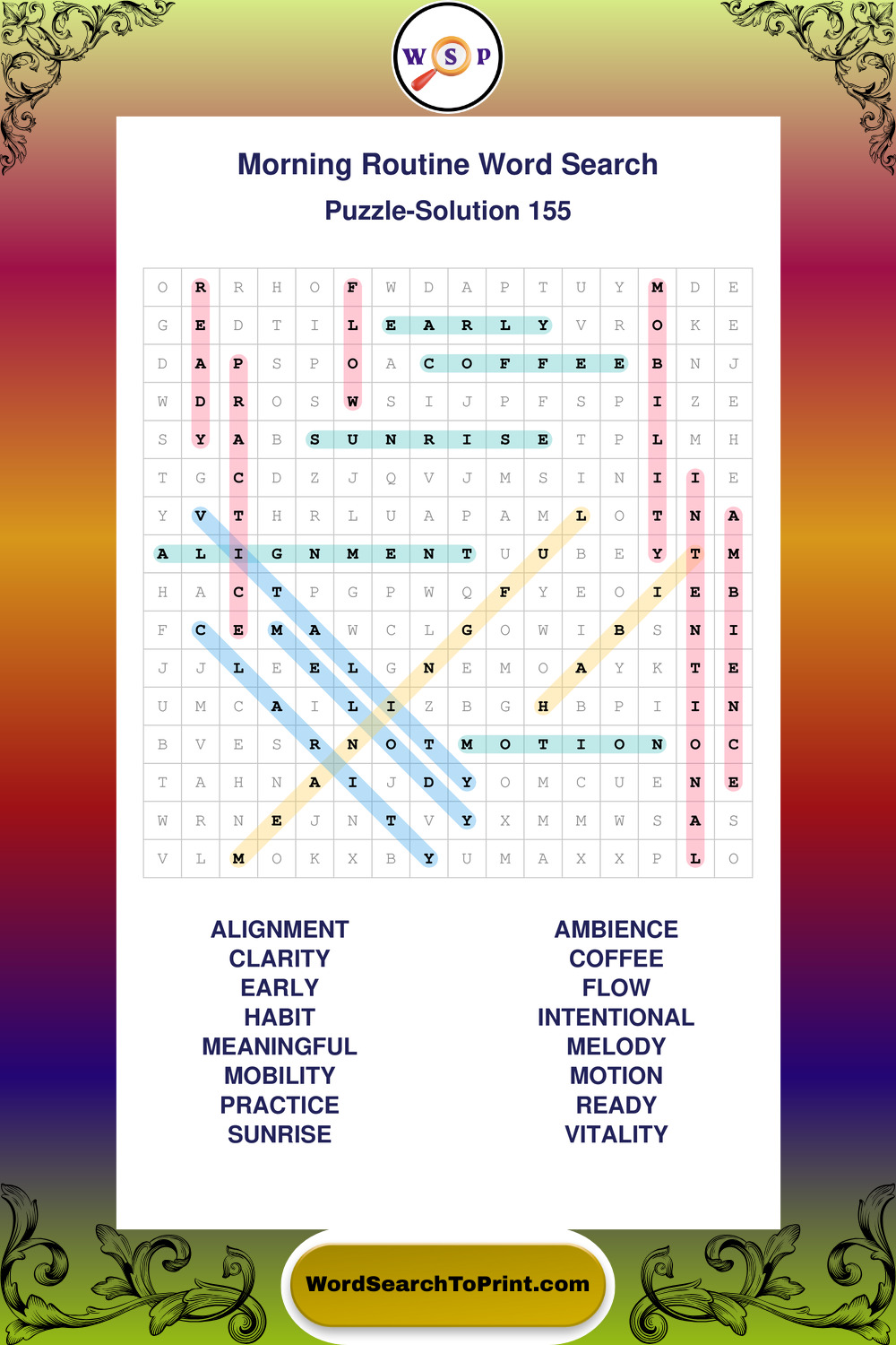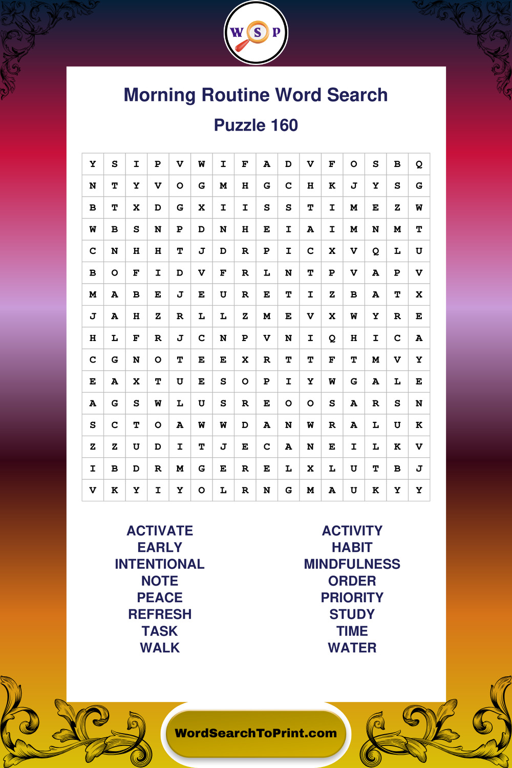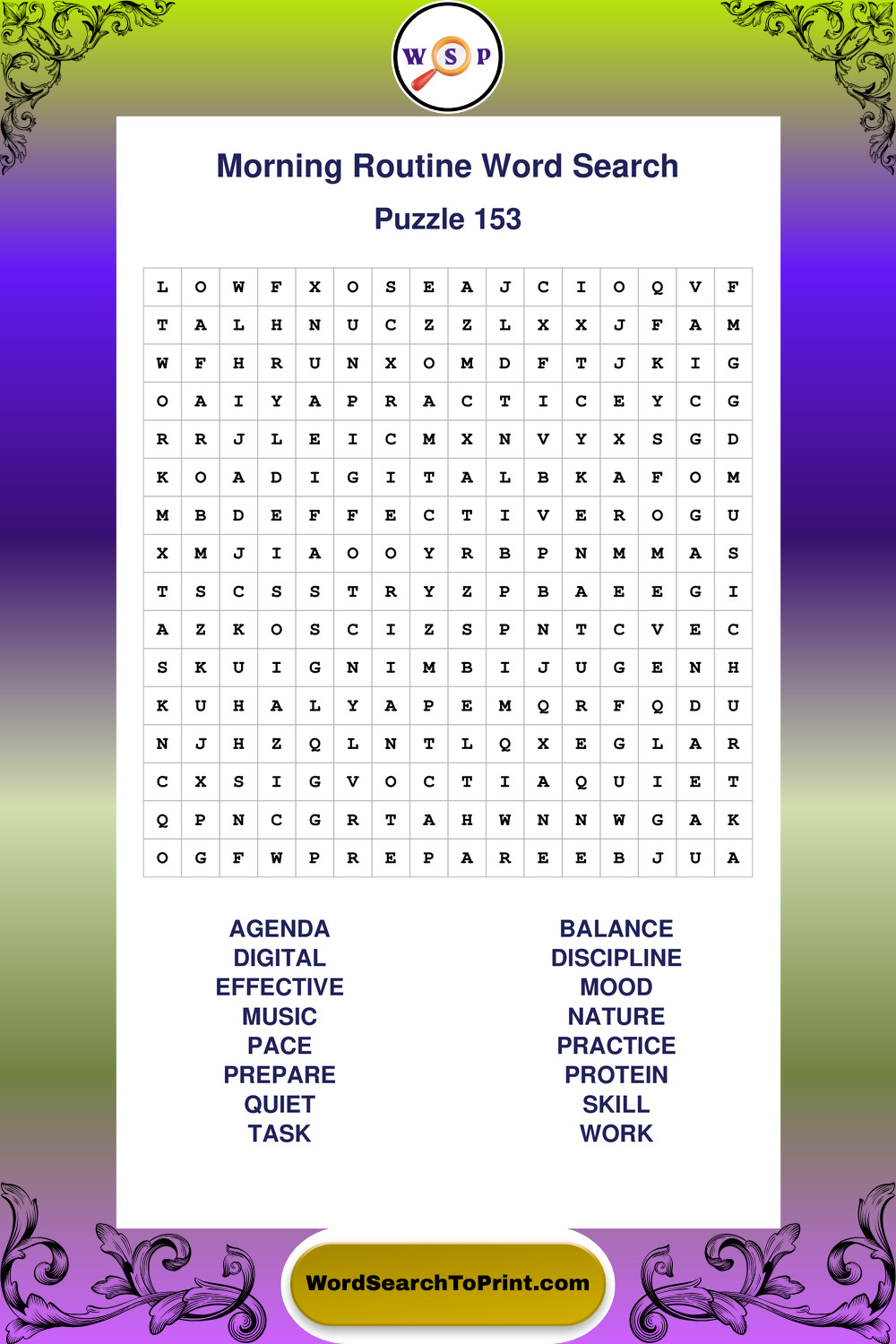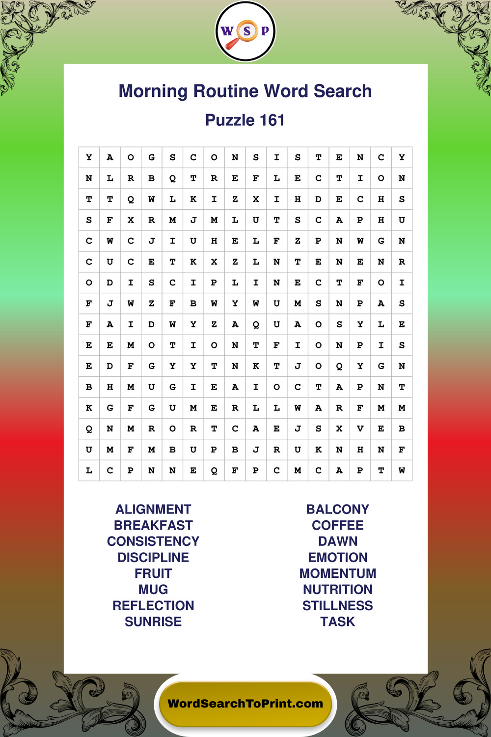 A relaxing collection of large print Morning Routine wordsearches designed for comfortable solving and steady focus.