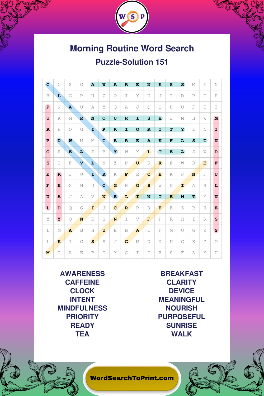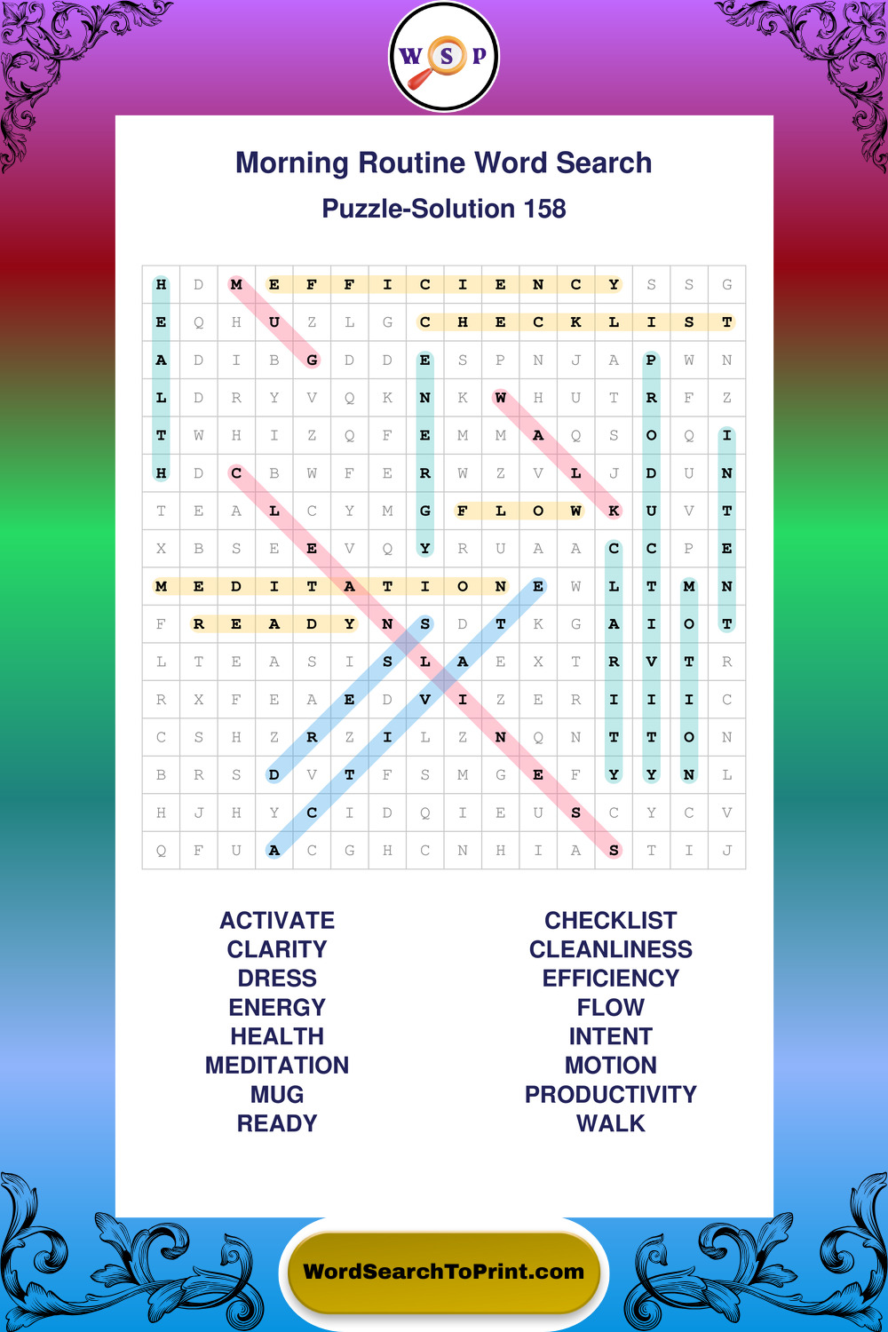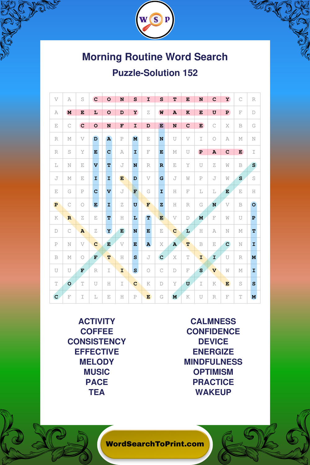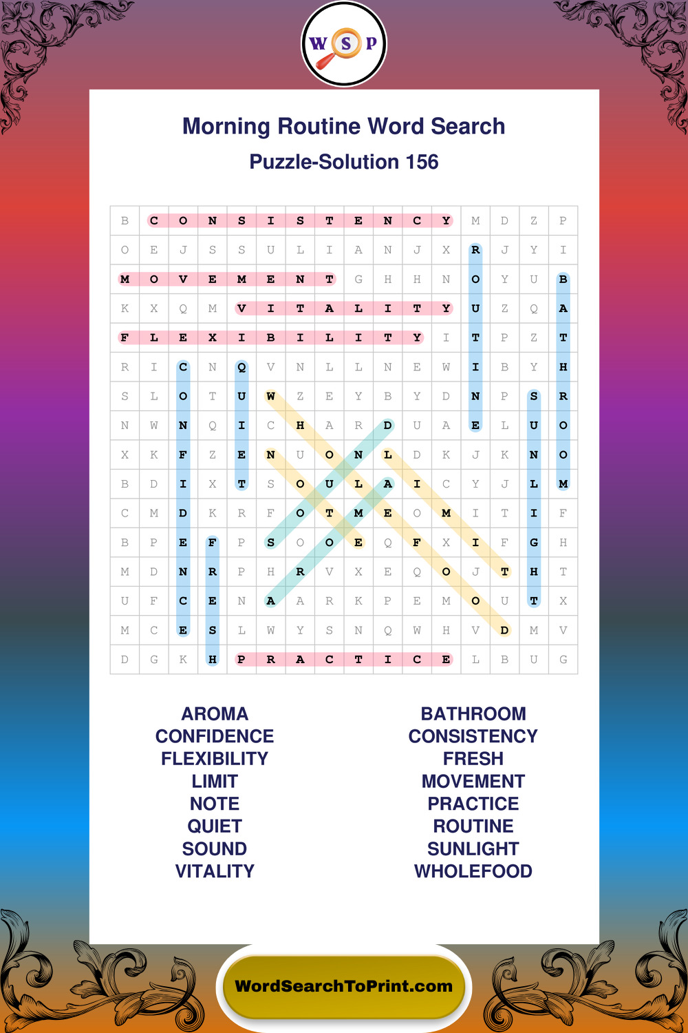 A relaxing collection of large print Morning Routine wordsearches designed for comfortable solving and steady focus.