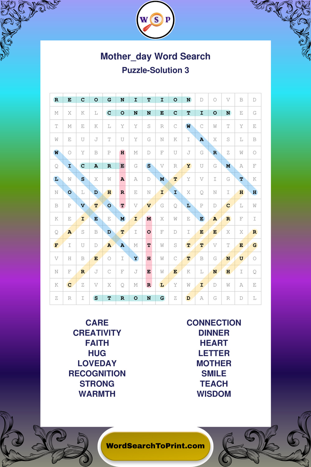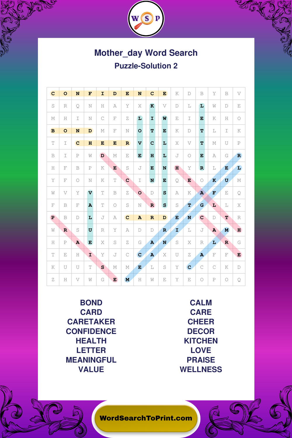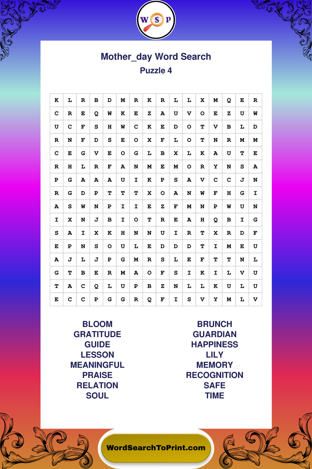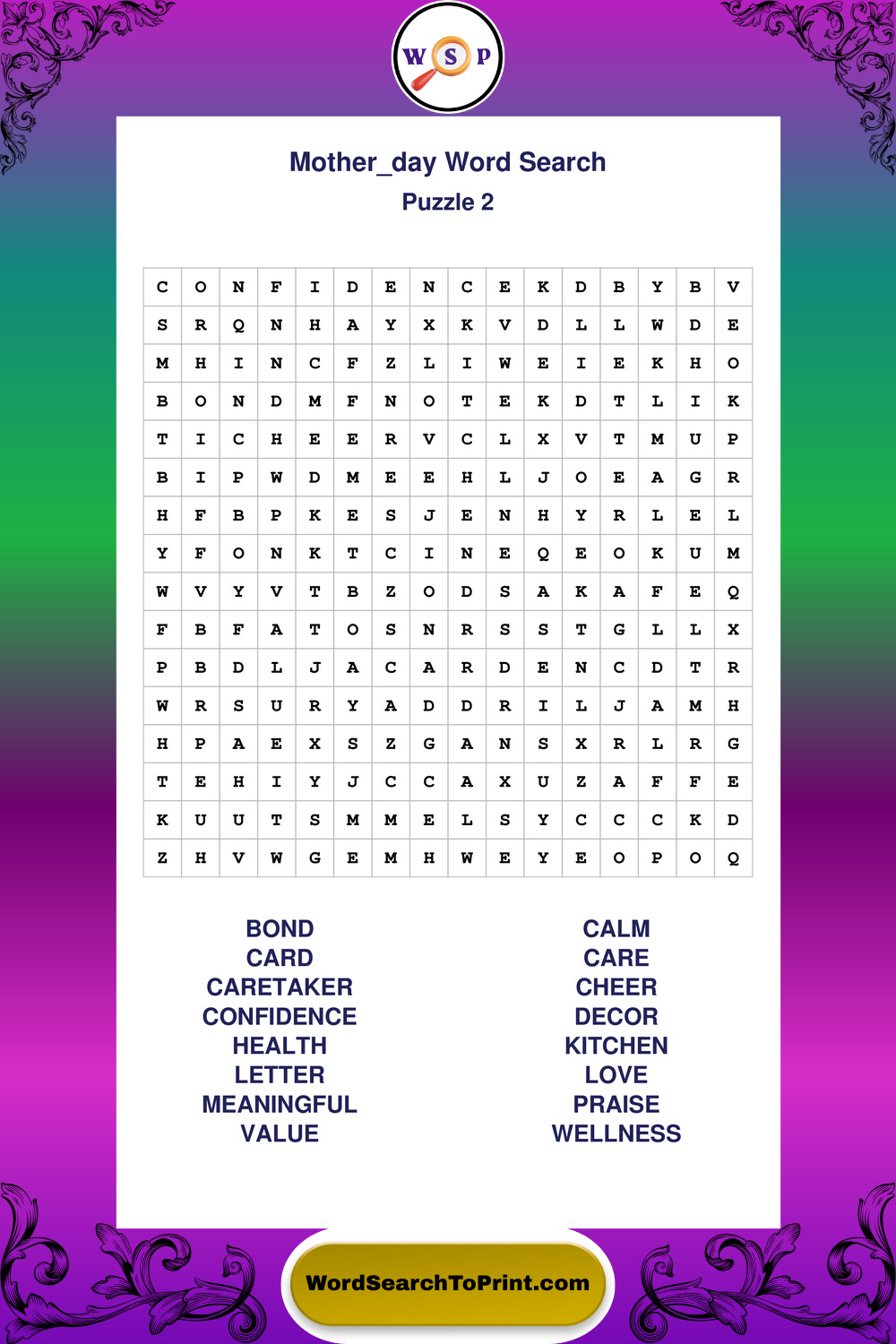 These large print Mother Day wordsearches are ideal for calm focus, light mental exercise, and easy readability.
