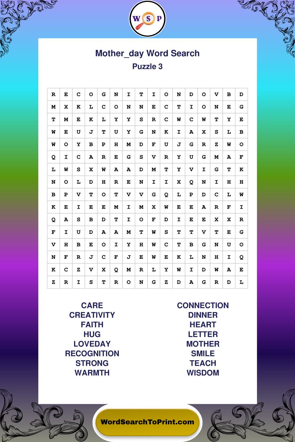 Printable Mother Day Wordsearch Puzzles