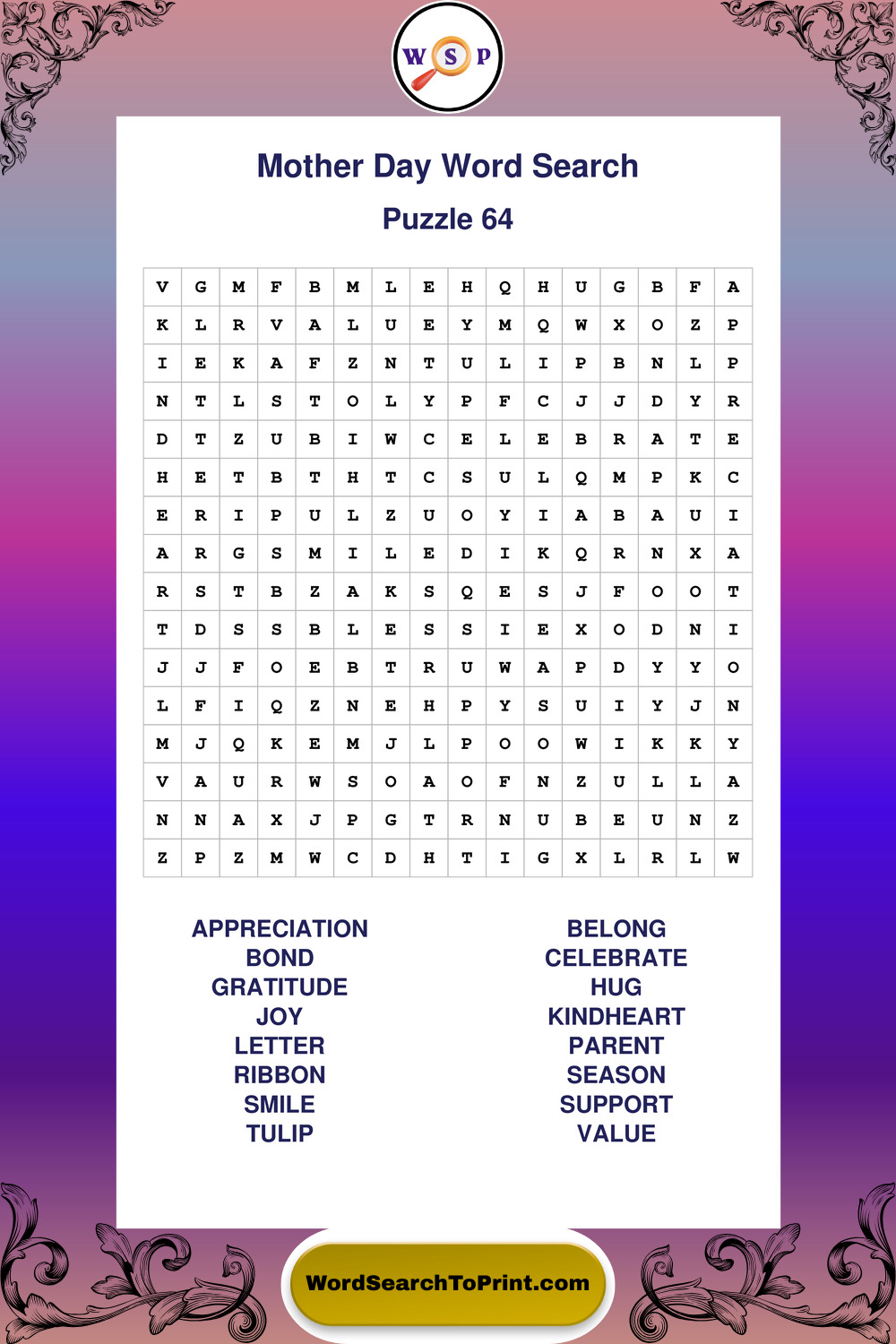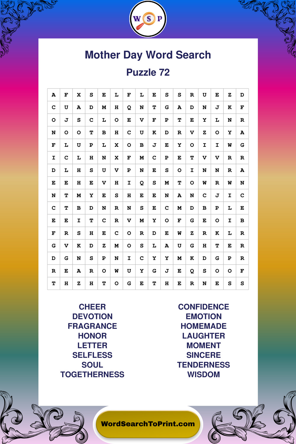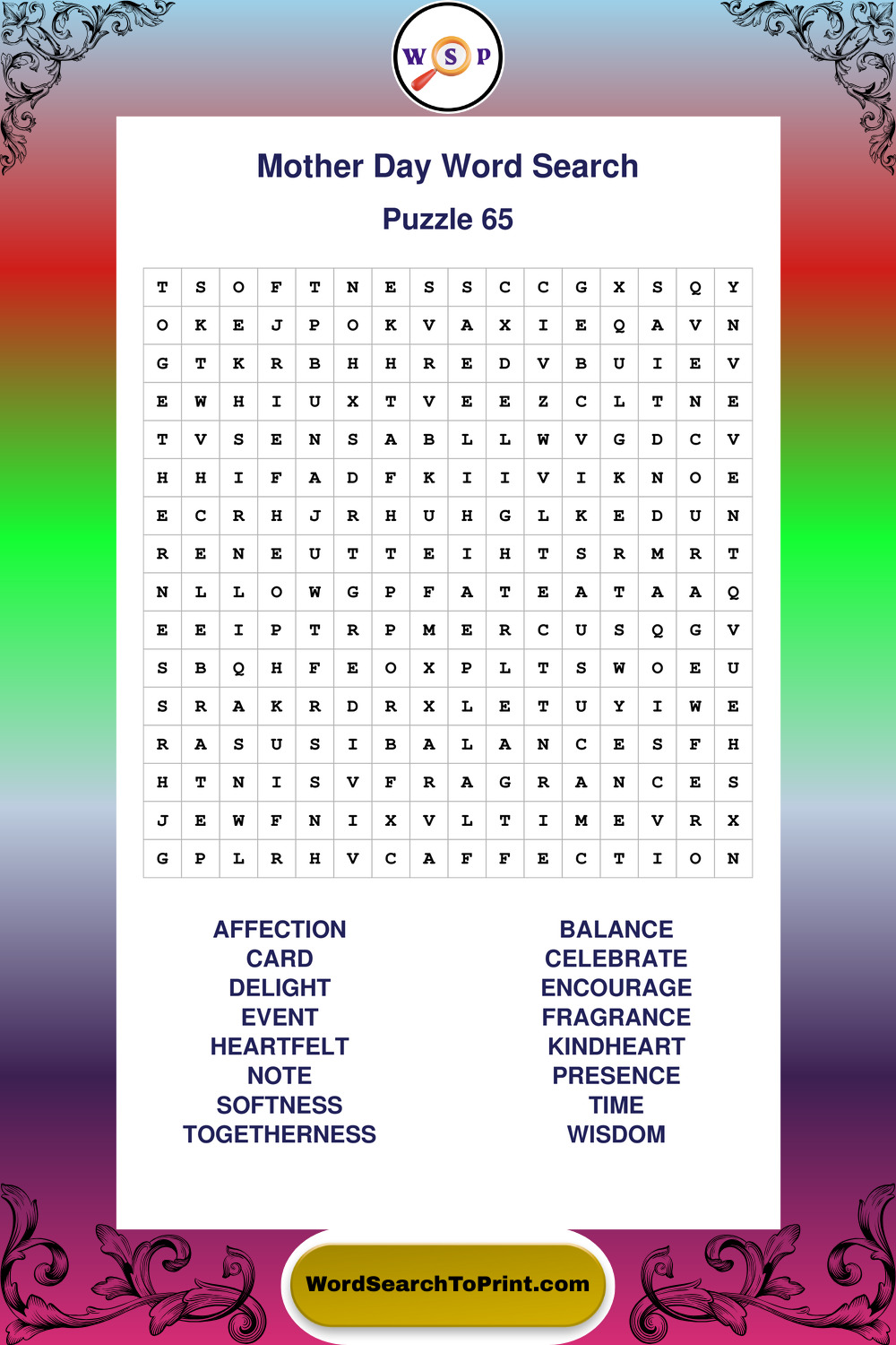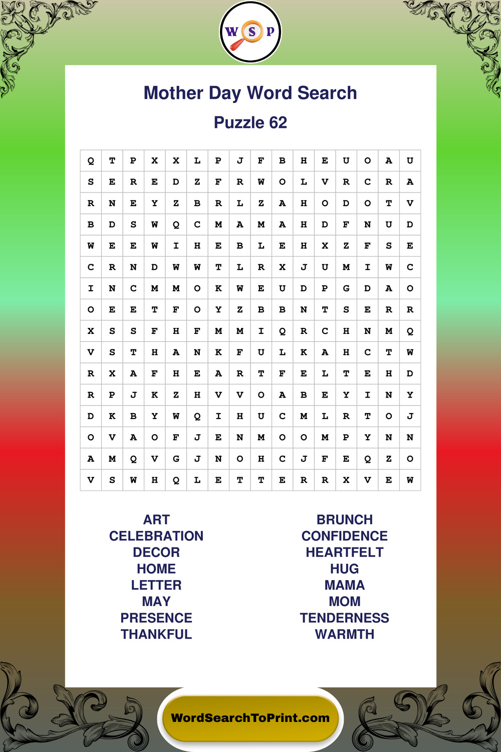 These large print Mother Day wordsearches are ideal for calm focus, light mental exercise, and easy readability.