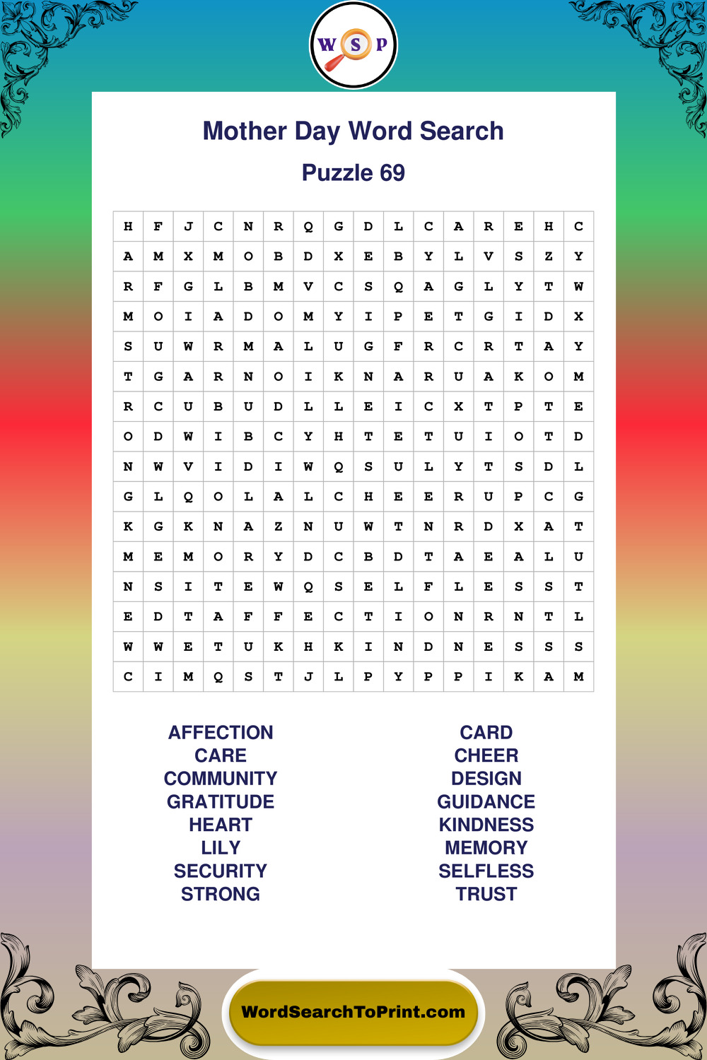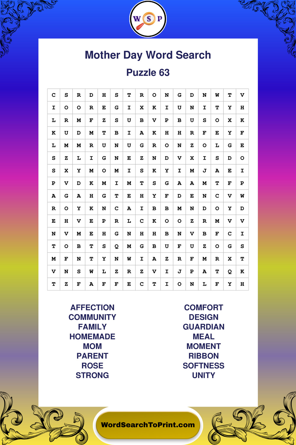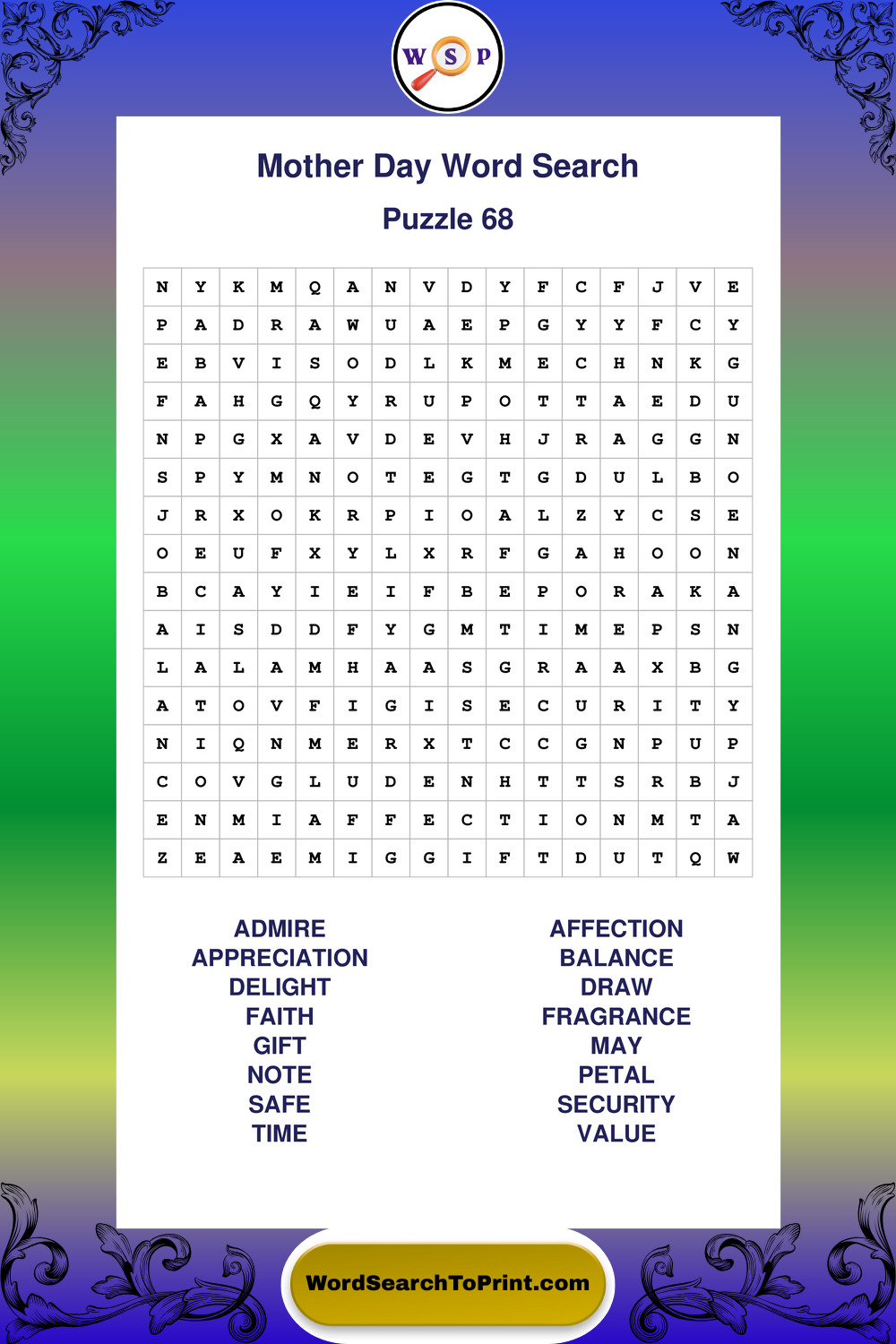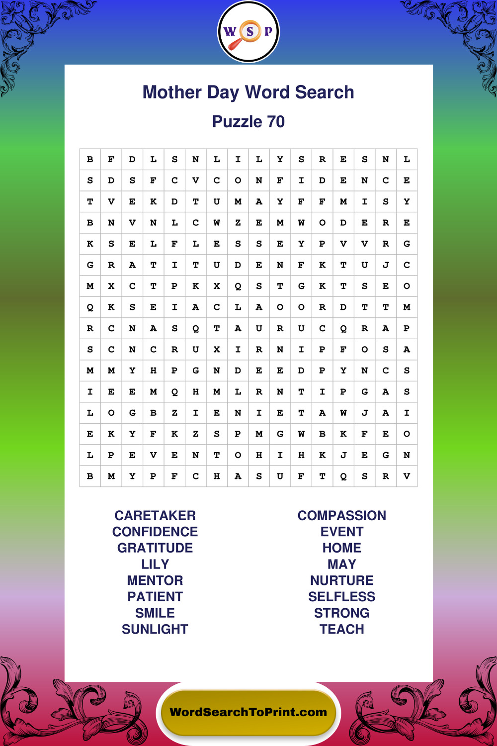 These large print Mother Day wordsearches are ideal for calm focus, light mental exercise, and easy readability.