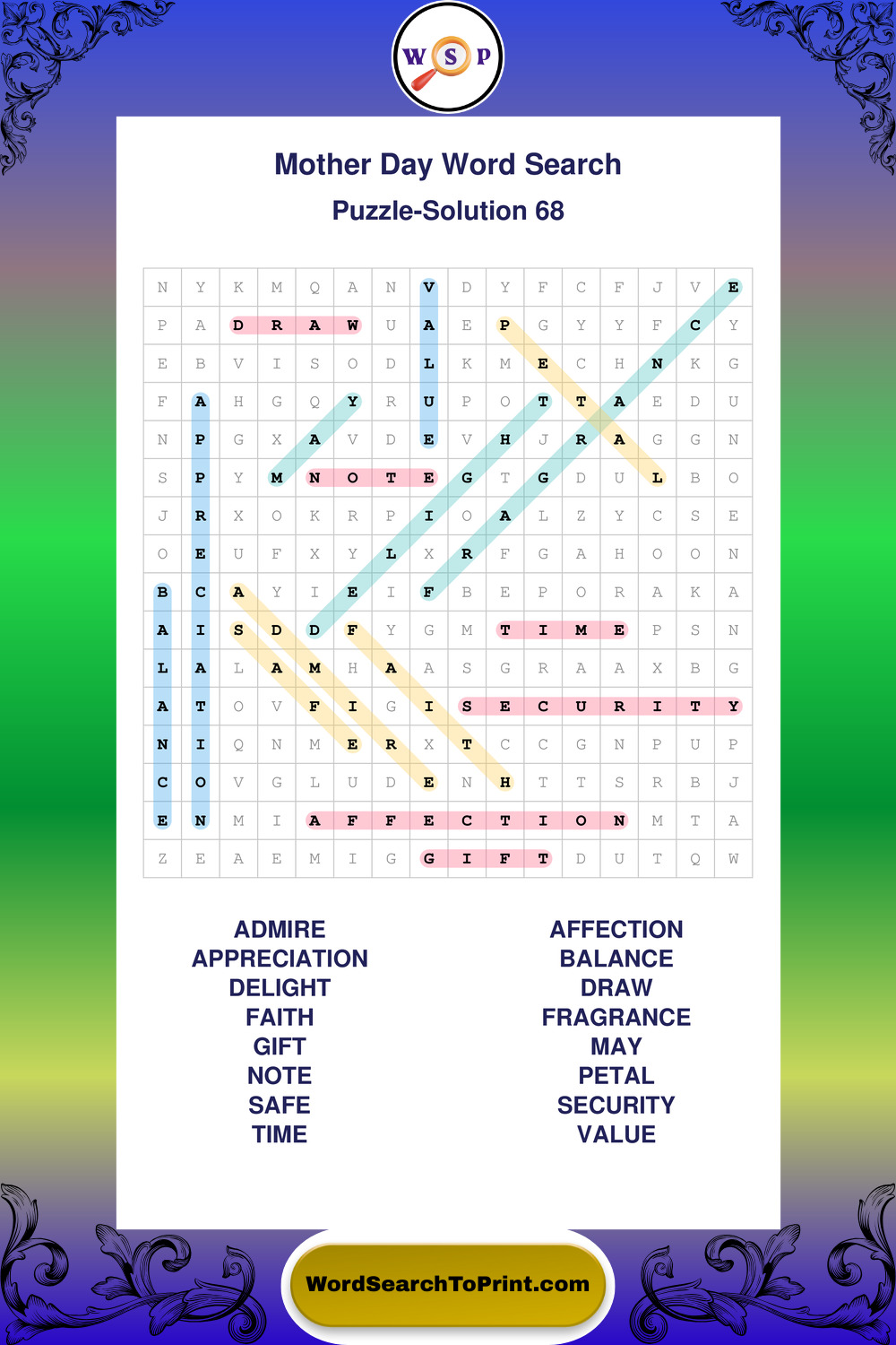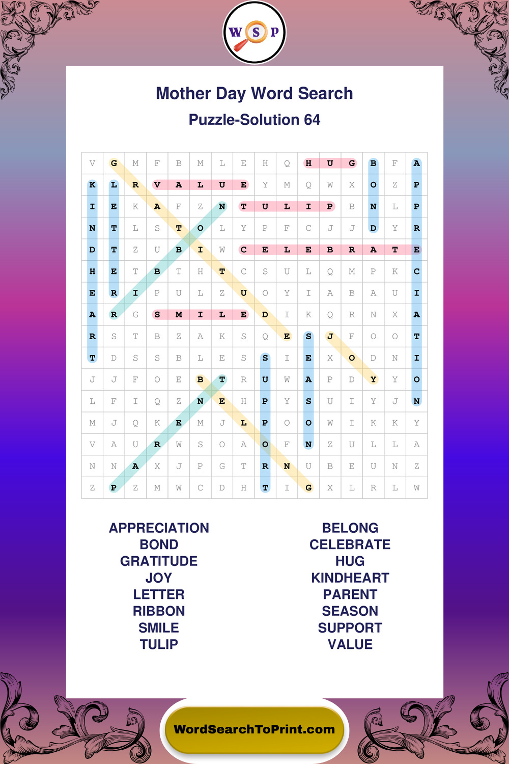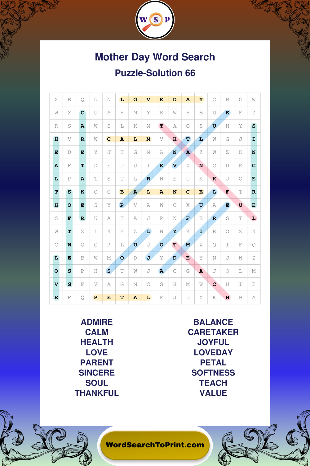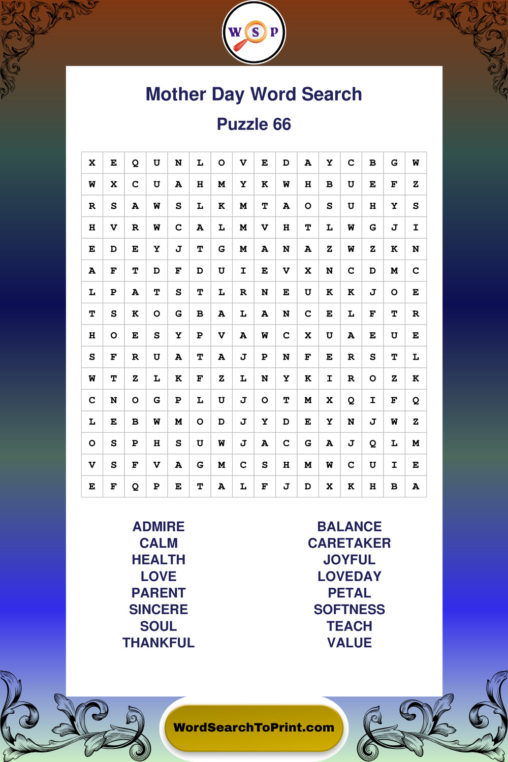 These large print Mother Day wordsearches are ideal for calm focus, light mental exercise, and easy readability.