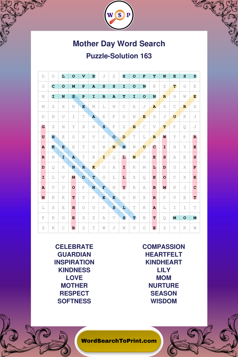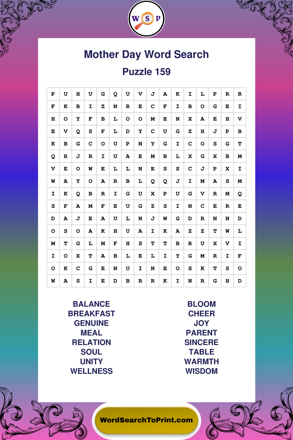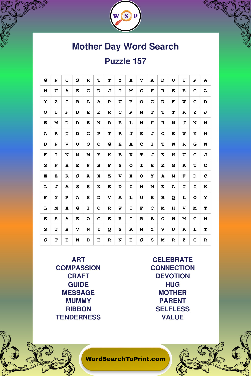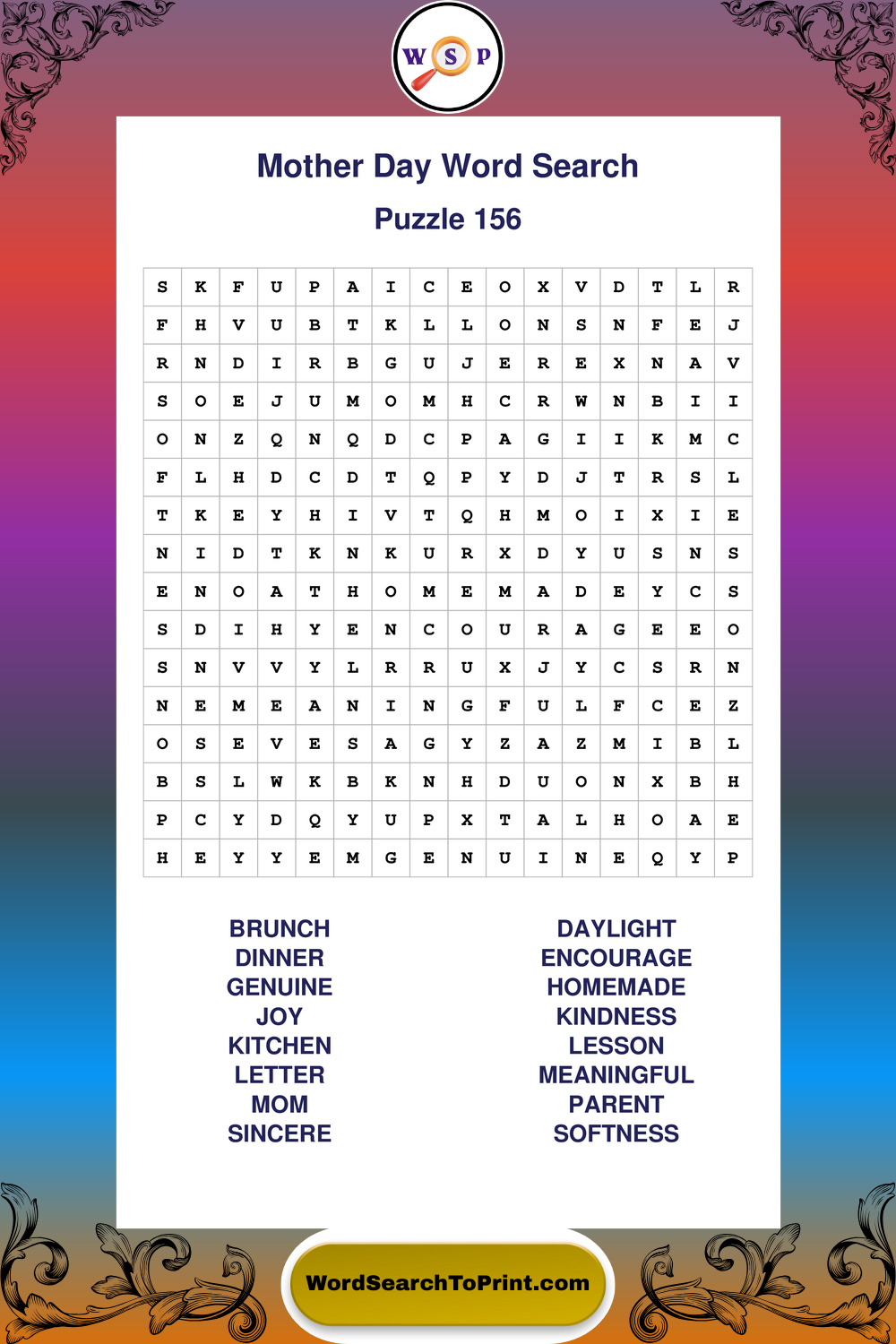 These large print Mother Day wordsearches are ideal for calm focus, light mental exercise, and easy readability.