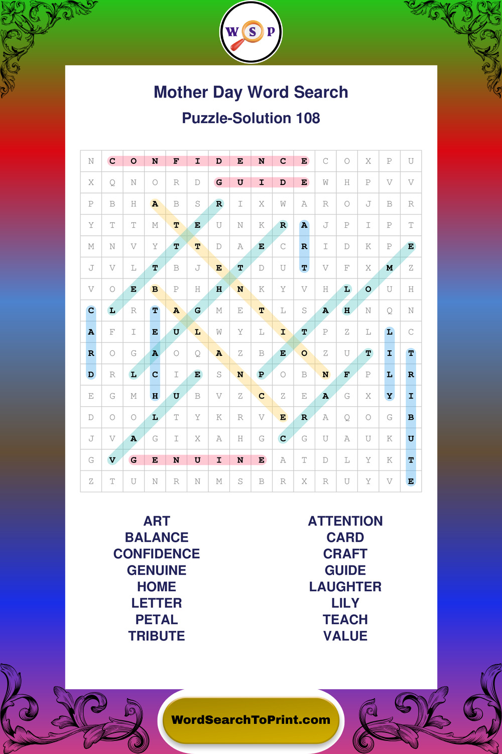 These large print Mother Day wordsearches are ideal for calm focus, light mental exercise, and easy readability.