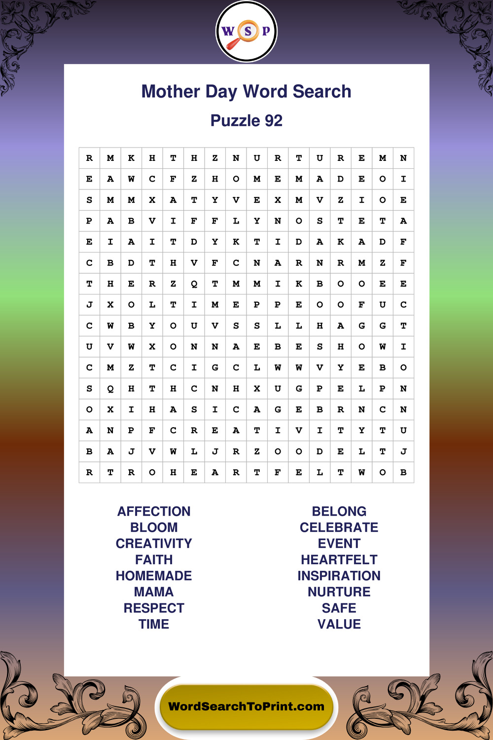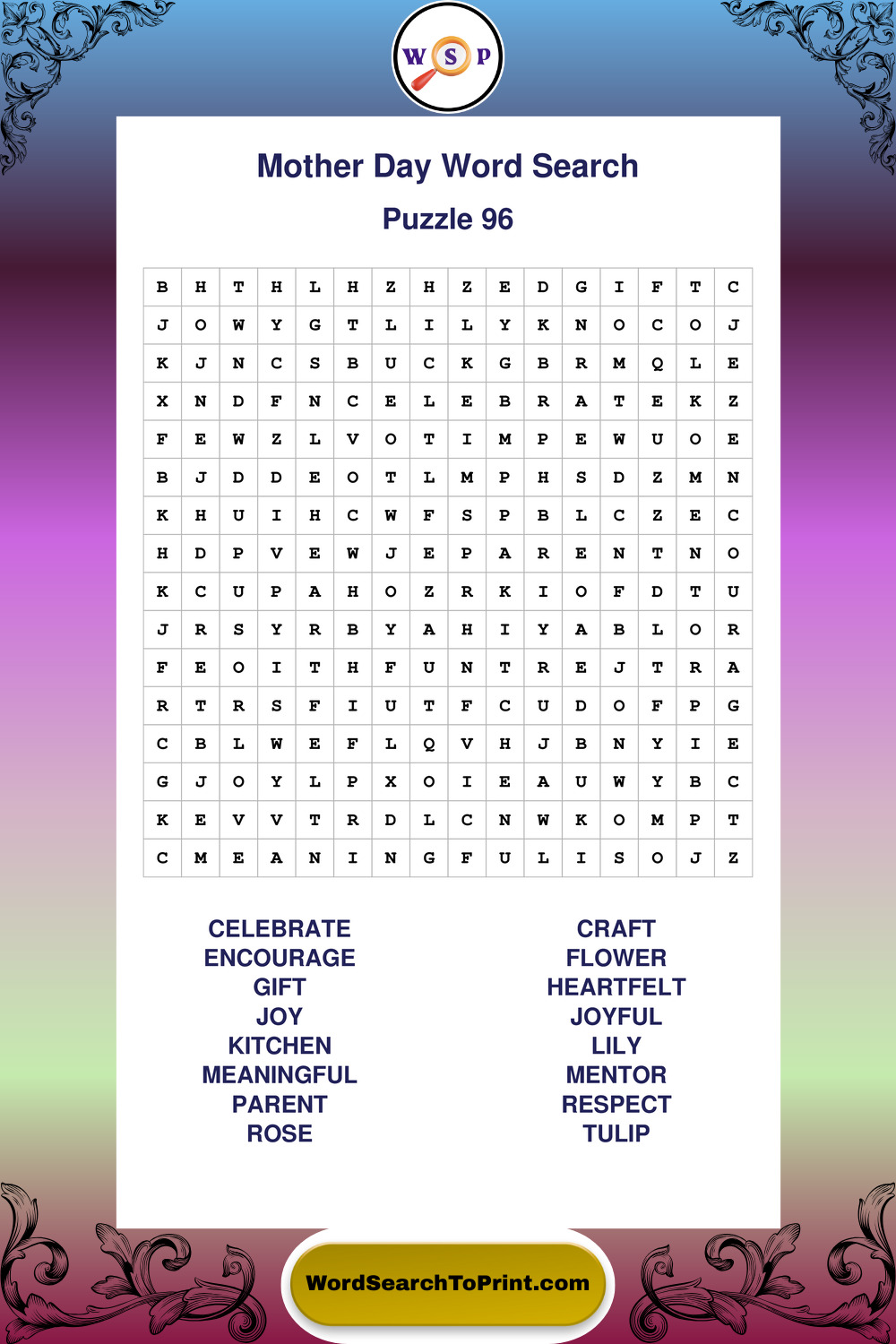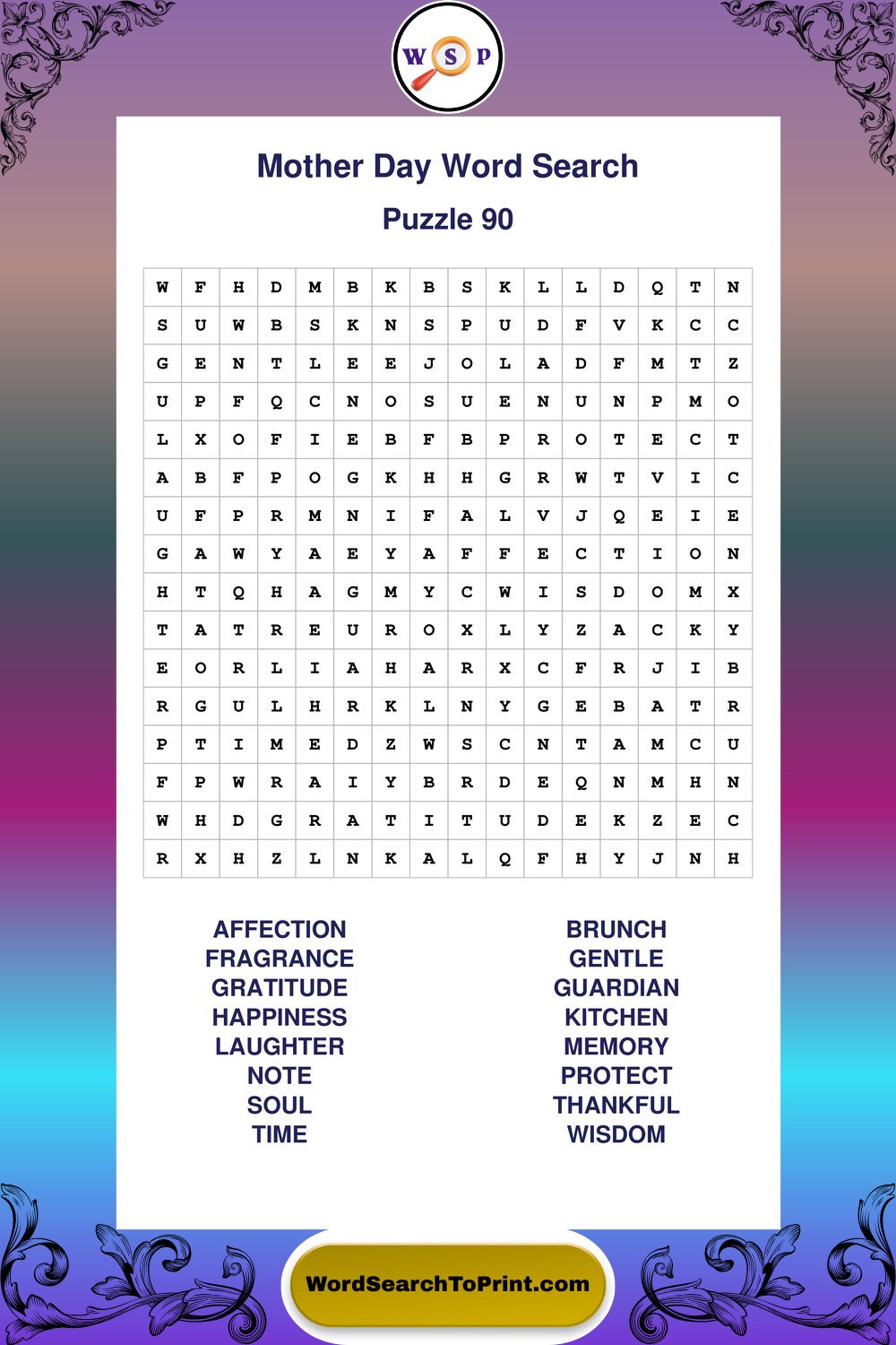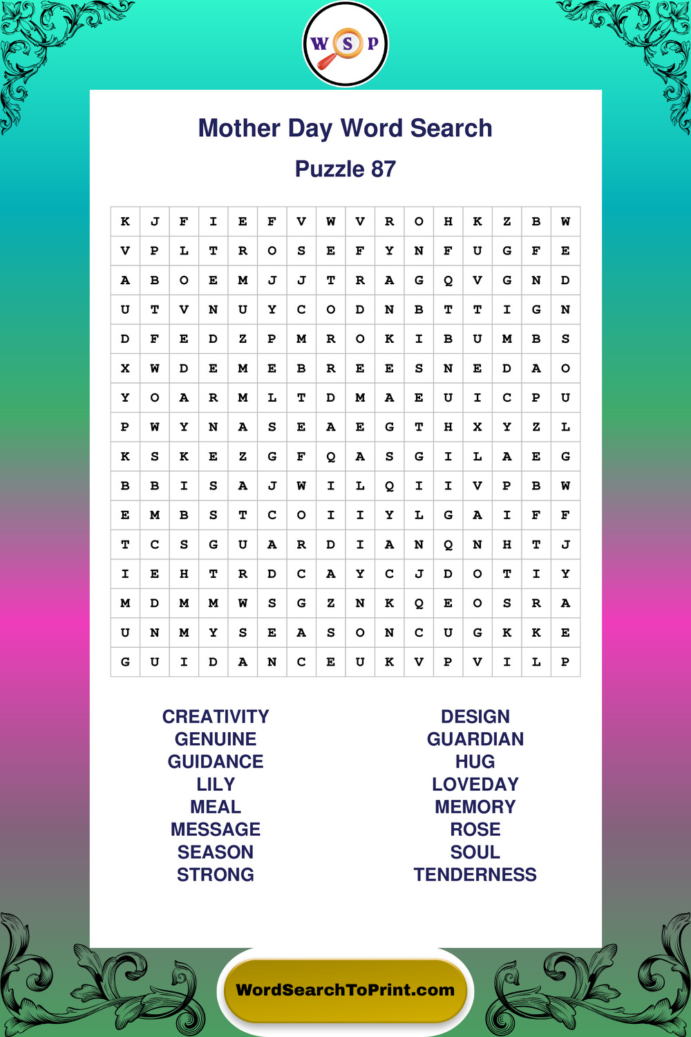 These large print Mother Day wordsearches are ideal for calm focus, light mental exercise, and easy readability.