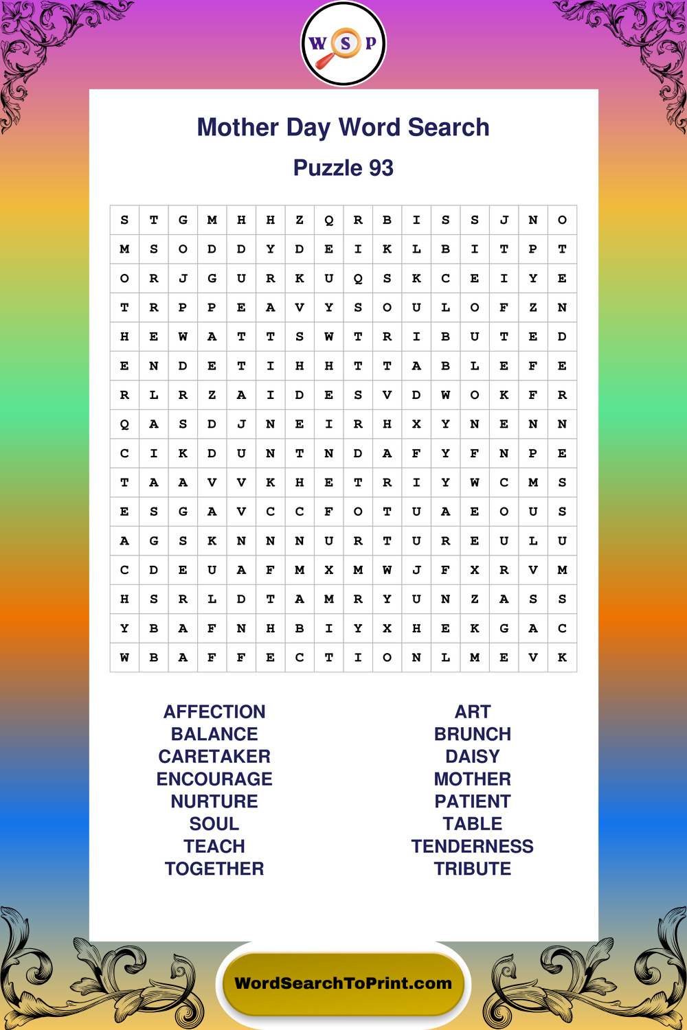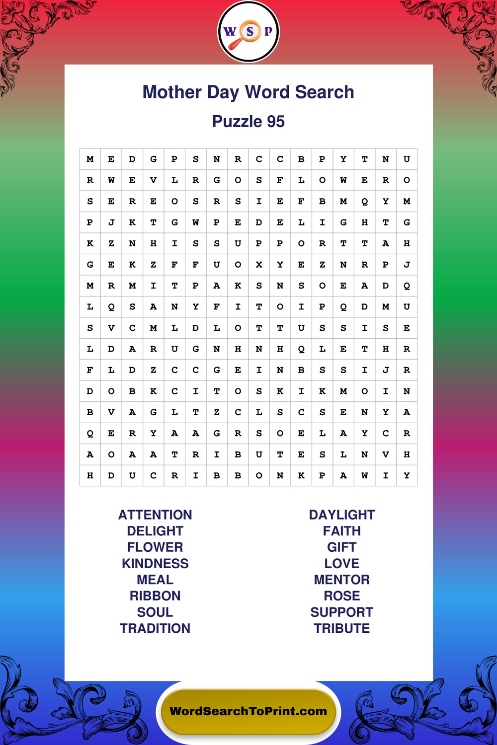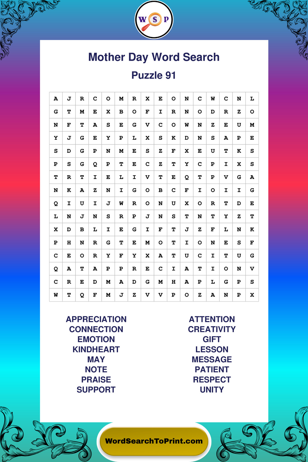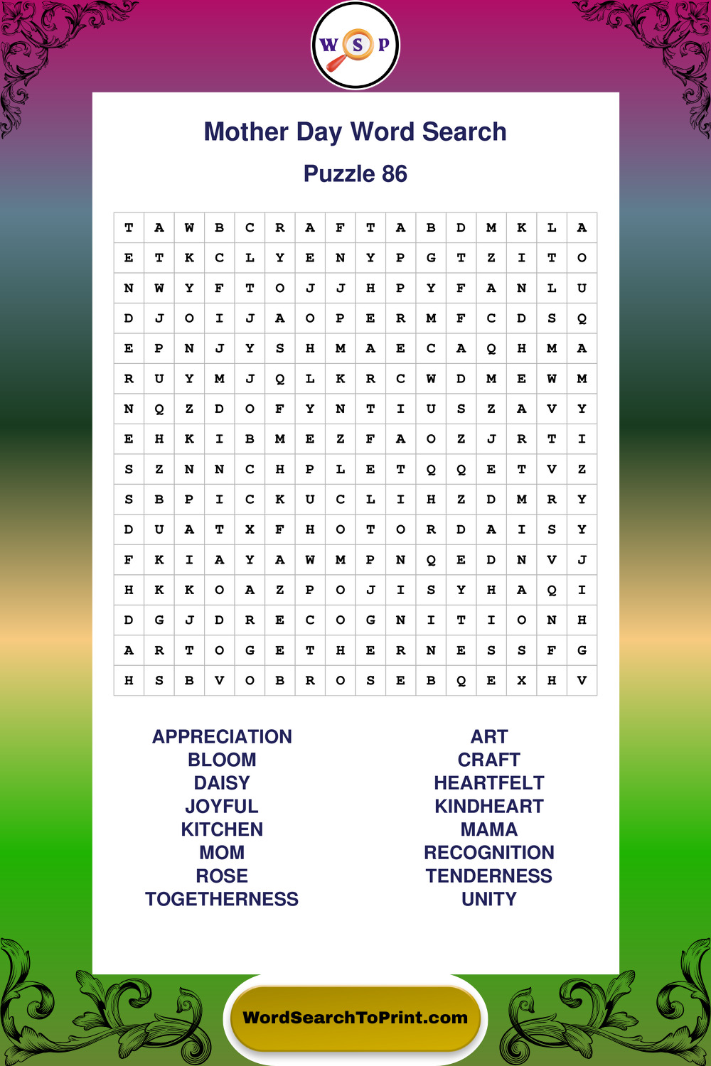 These large print Mother Day wordsearches are ideal for calm focus, light mental exercise, and easy readability.