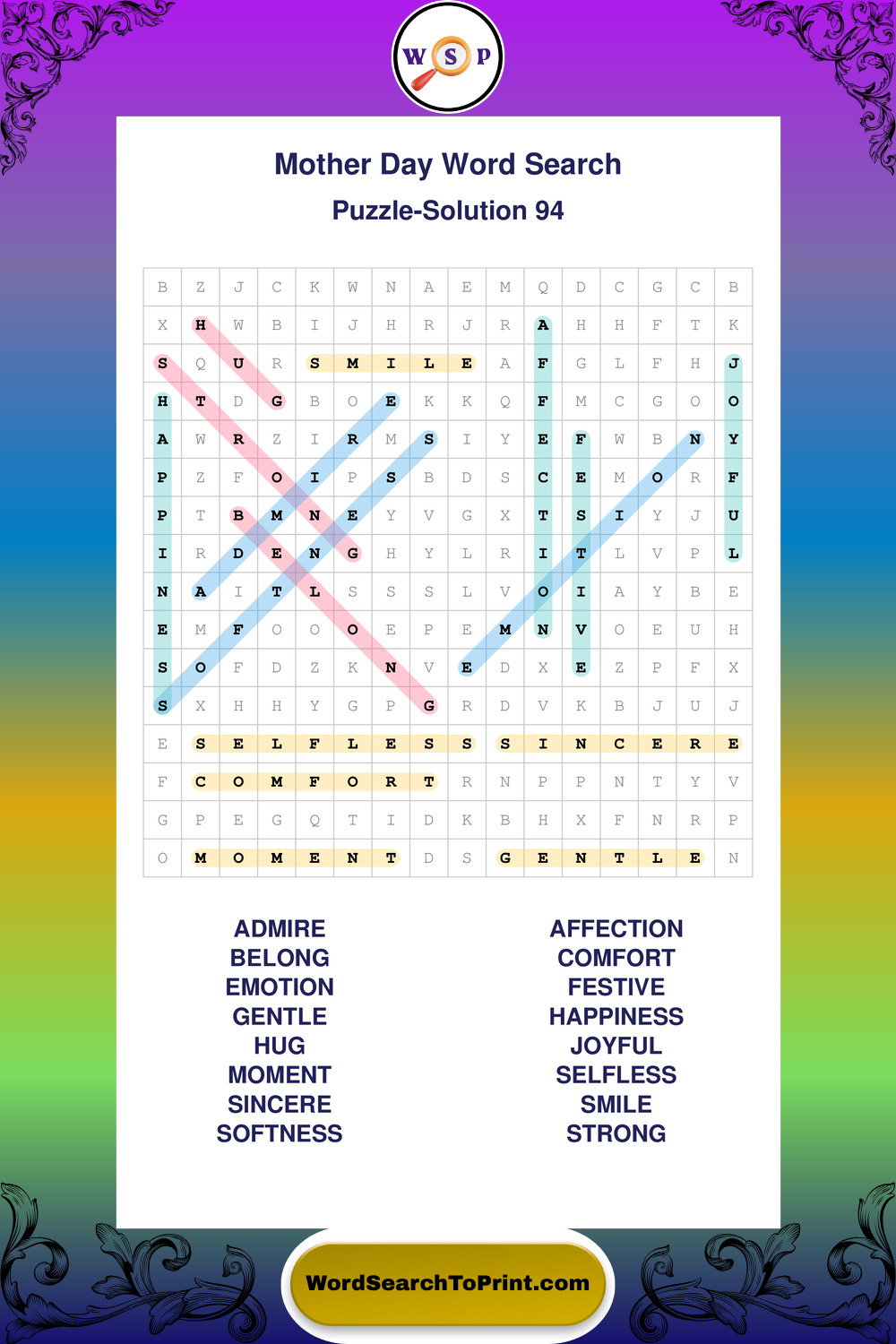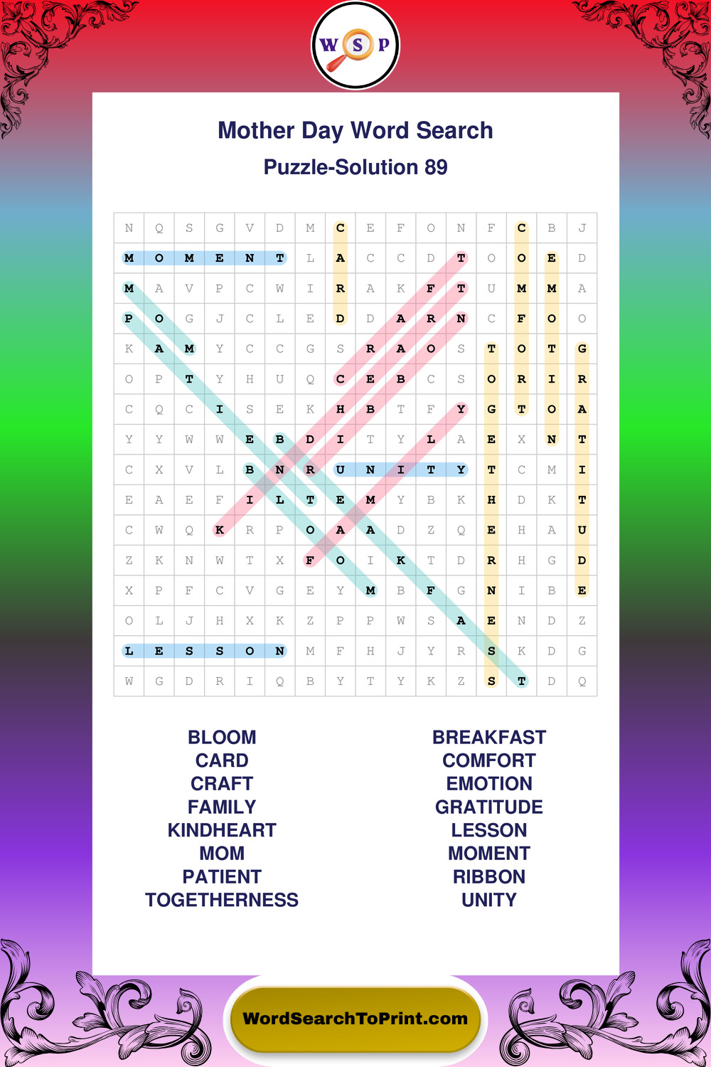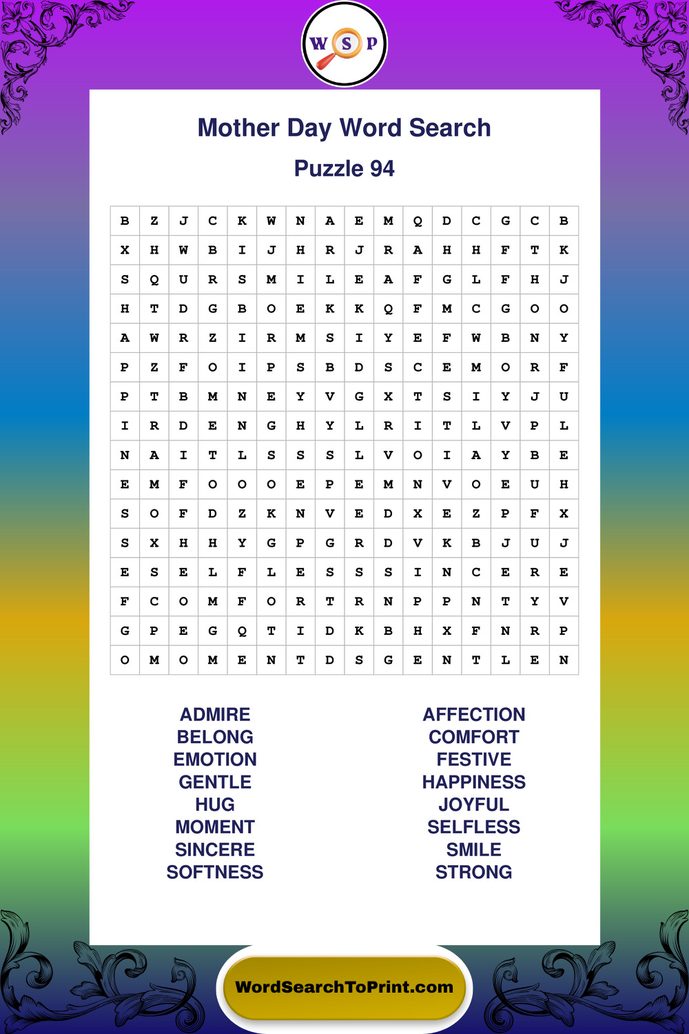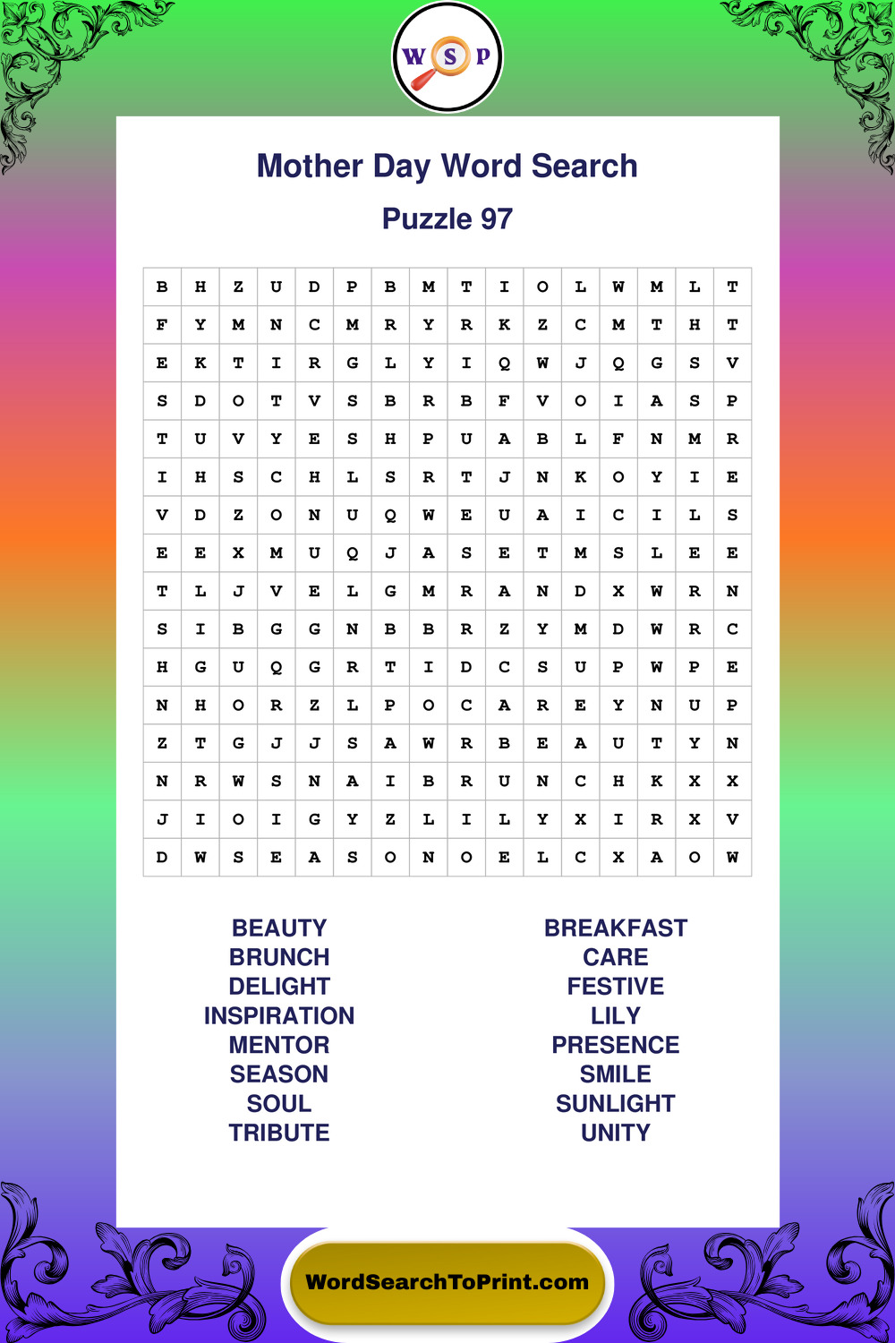These large print Mother Day wordsearches are ideal for calm focus, light mental exercise, and easy readability.