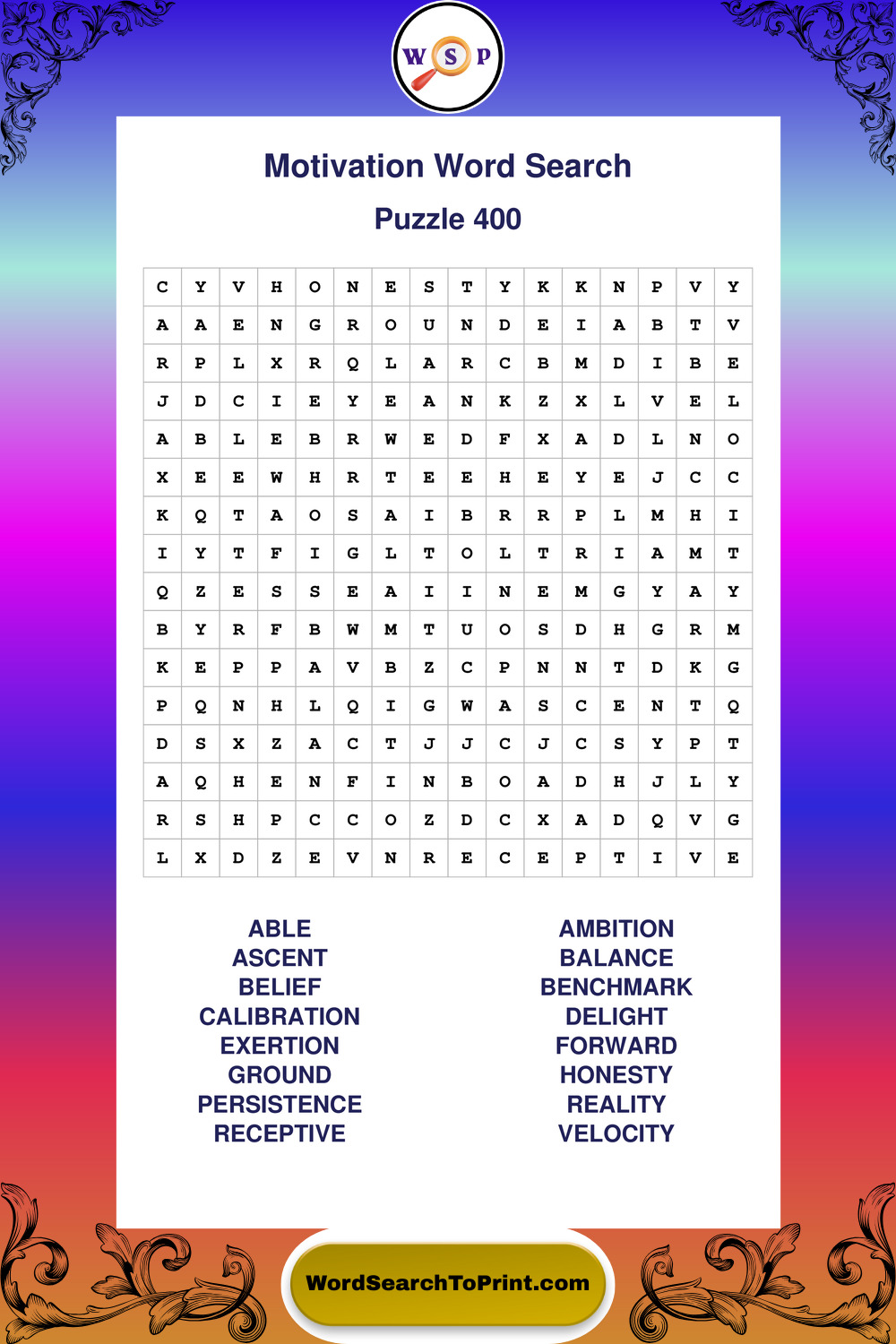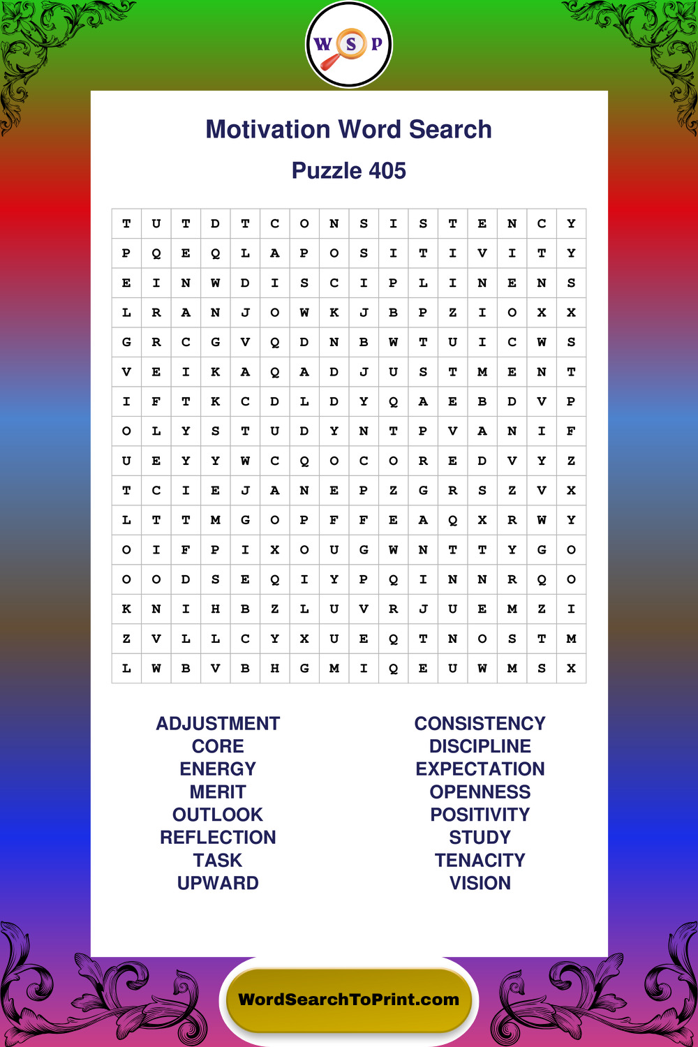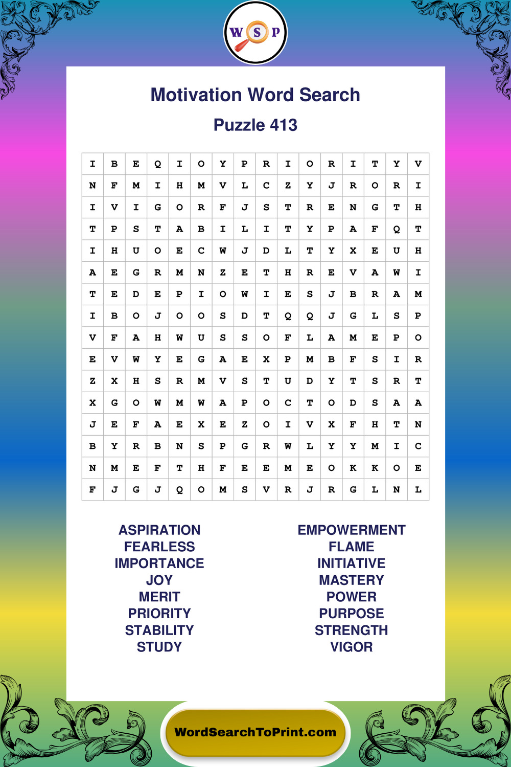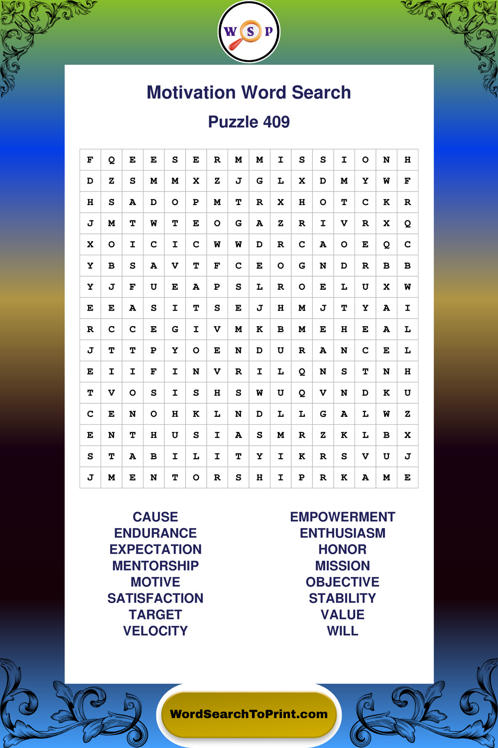 These puzzles focus on motivation, goal setting, life lessons, inspiration, and personal development concepts. They offer a structured and engaging way to explore this topic while strengthening concentration and vocabulary recognition. You may also enjoy our Inspiration word search puzzles and Wisdom word search puzzles.