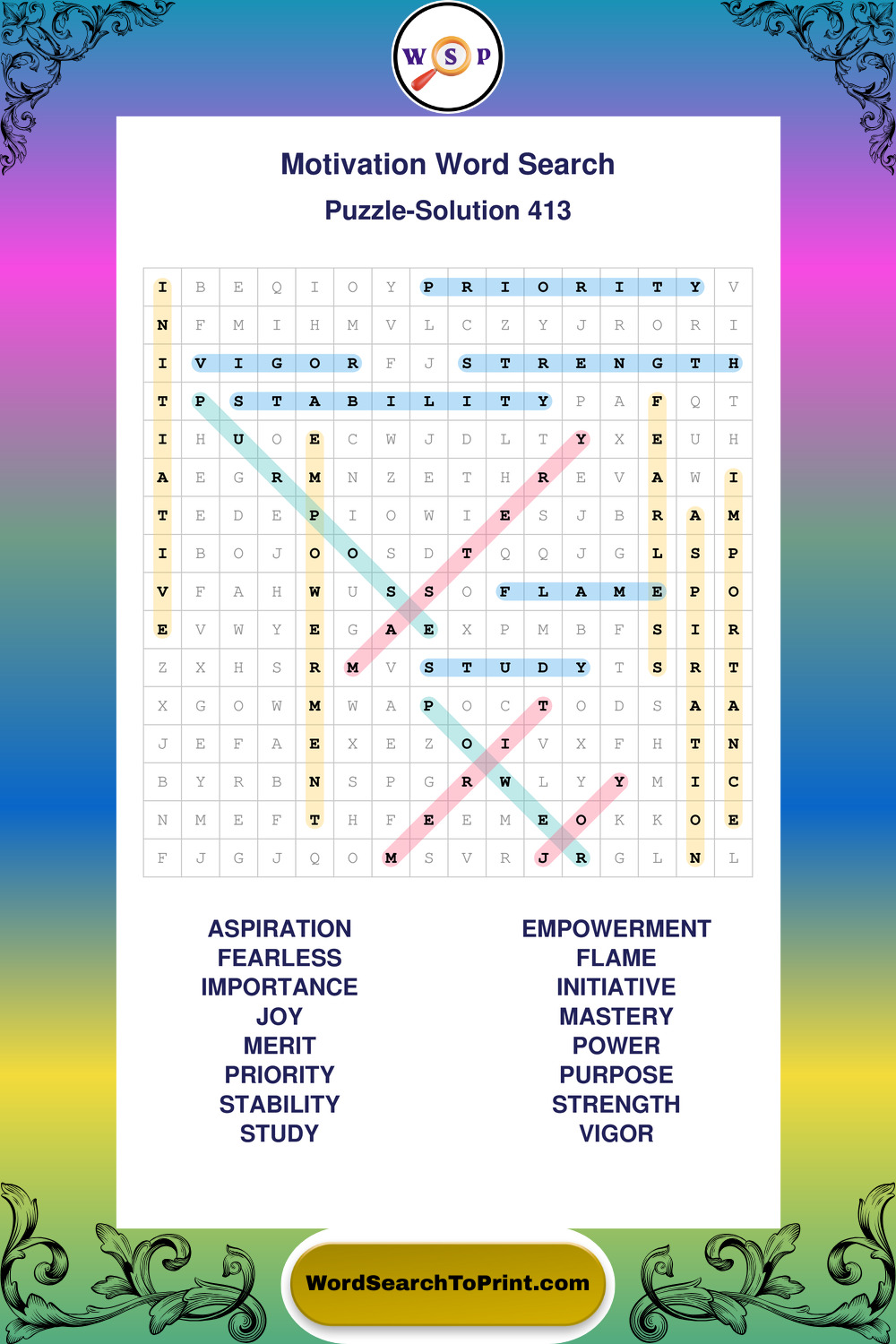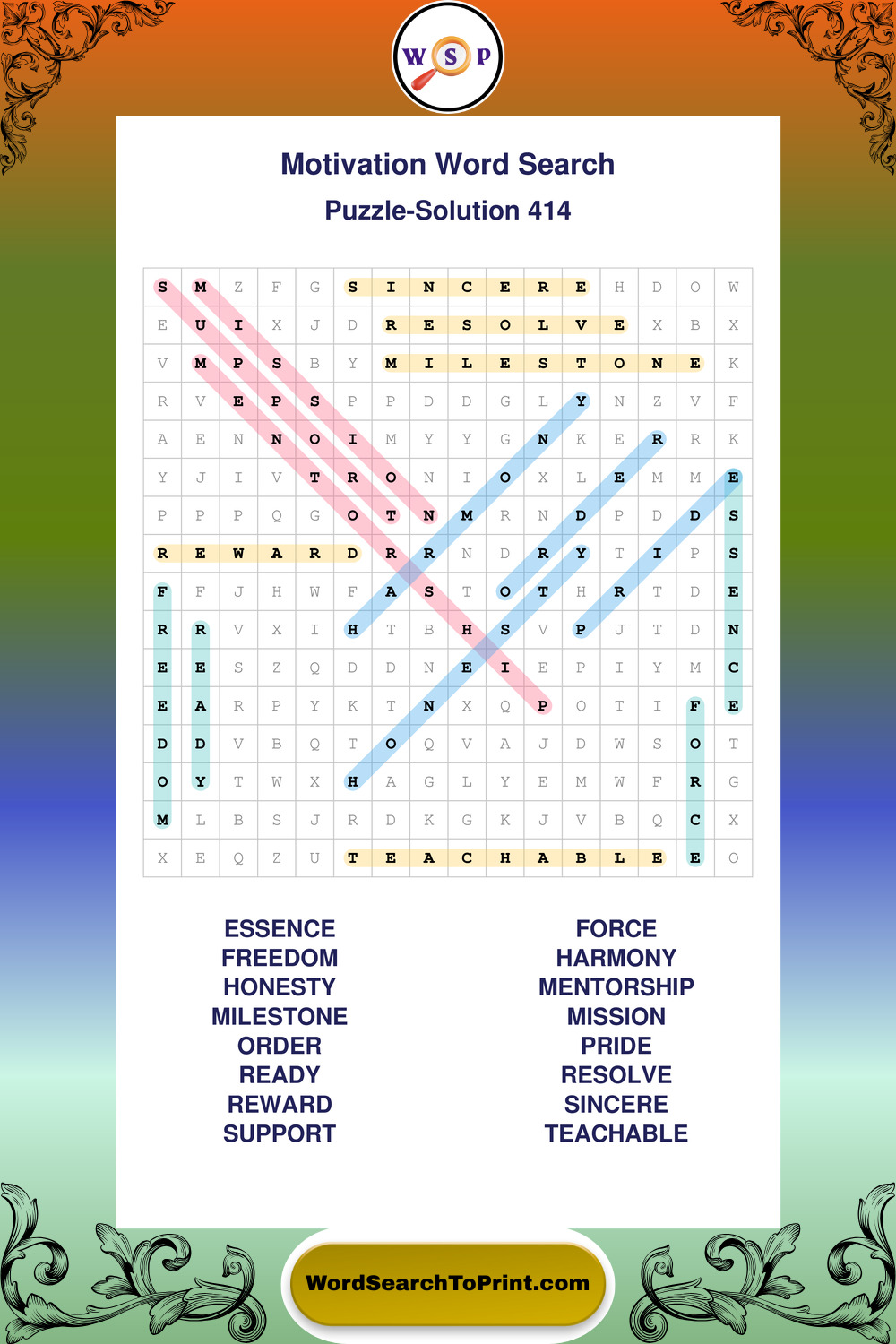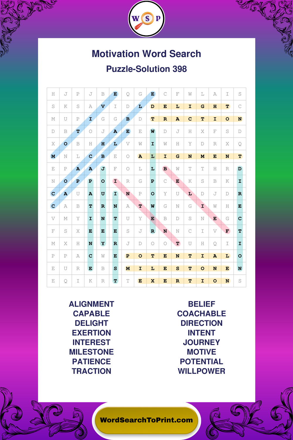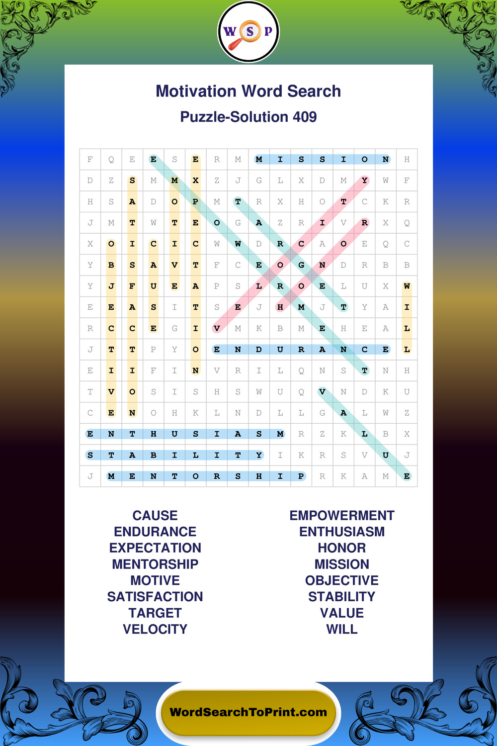 These puzzles focus on motivation, goal setting, life lessons, inspiration, and personal development concepts. They offer a structured and engaging way to explore this topic while strengthening concentration and vocabulary recognition. You may also enjoy our Inspiration word search puzzles and Wisdom word search puzzles.