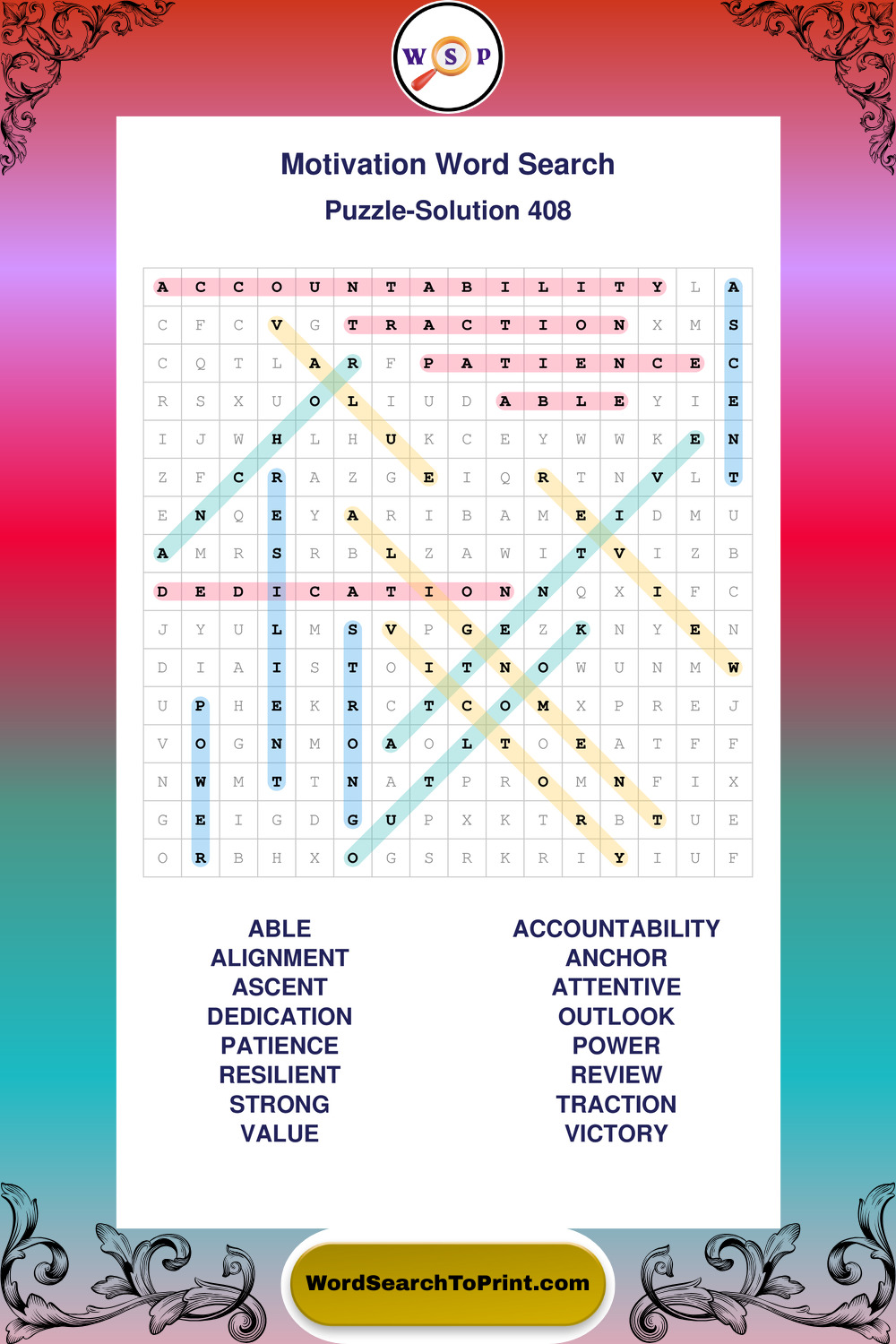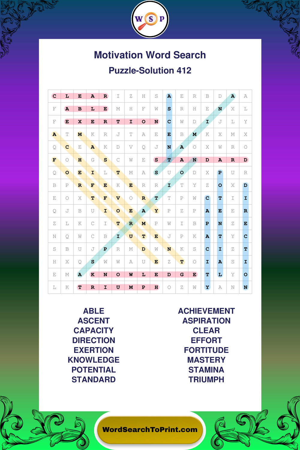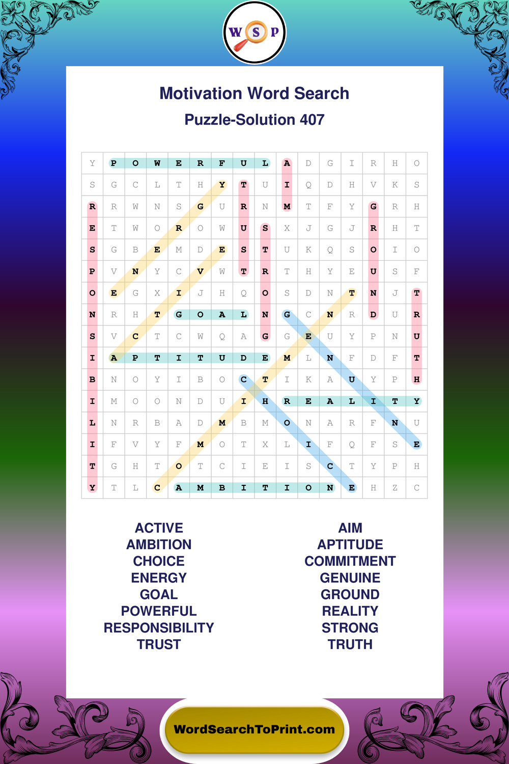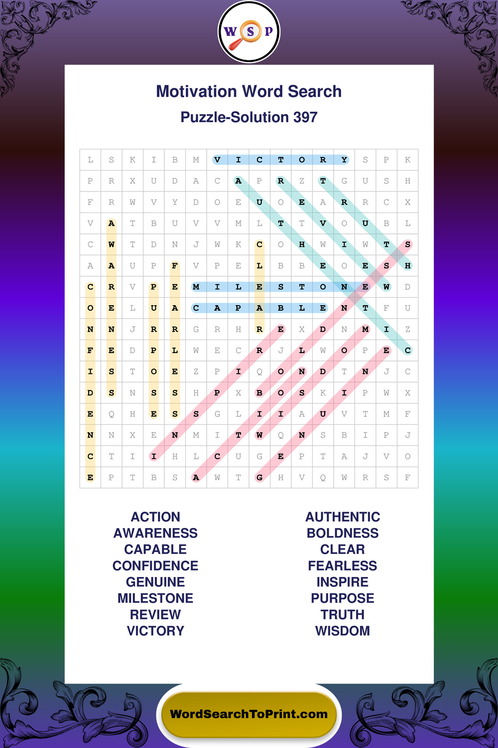 These puzzles focus on motivation, goal setting, life lessons, inspiration, and personal development concepts. They offer a structured and engaging way to explore this topic while strengthening concentration and vocabulary recognition. You may also enjoy our Inspiration word search puzzles and Wisdom word search puzzles.