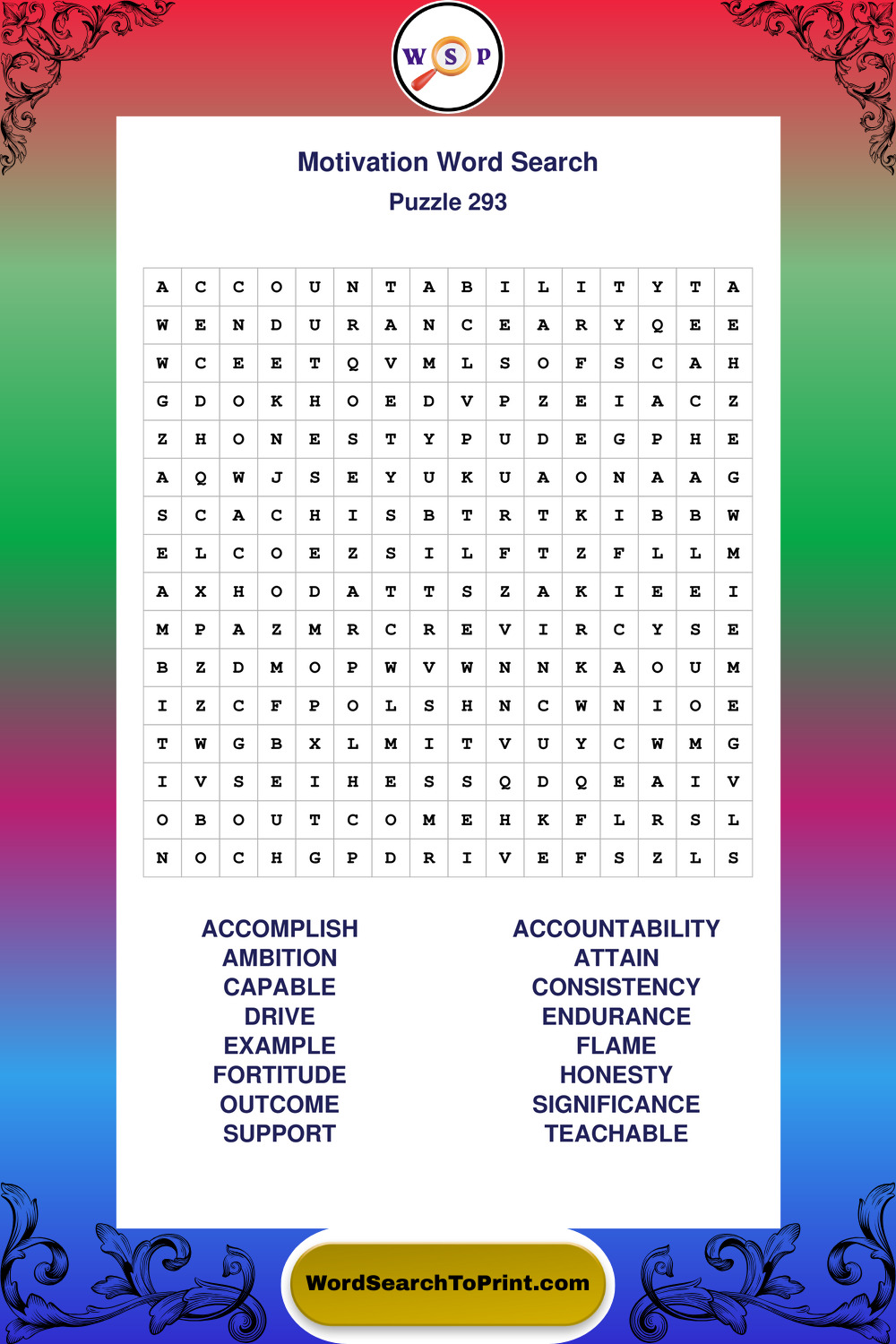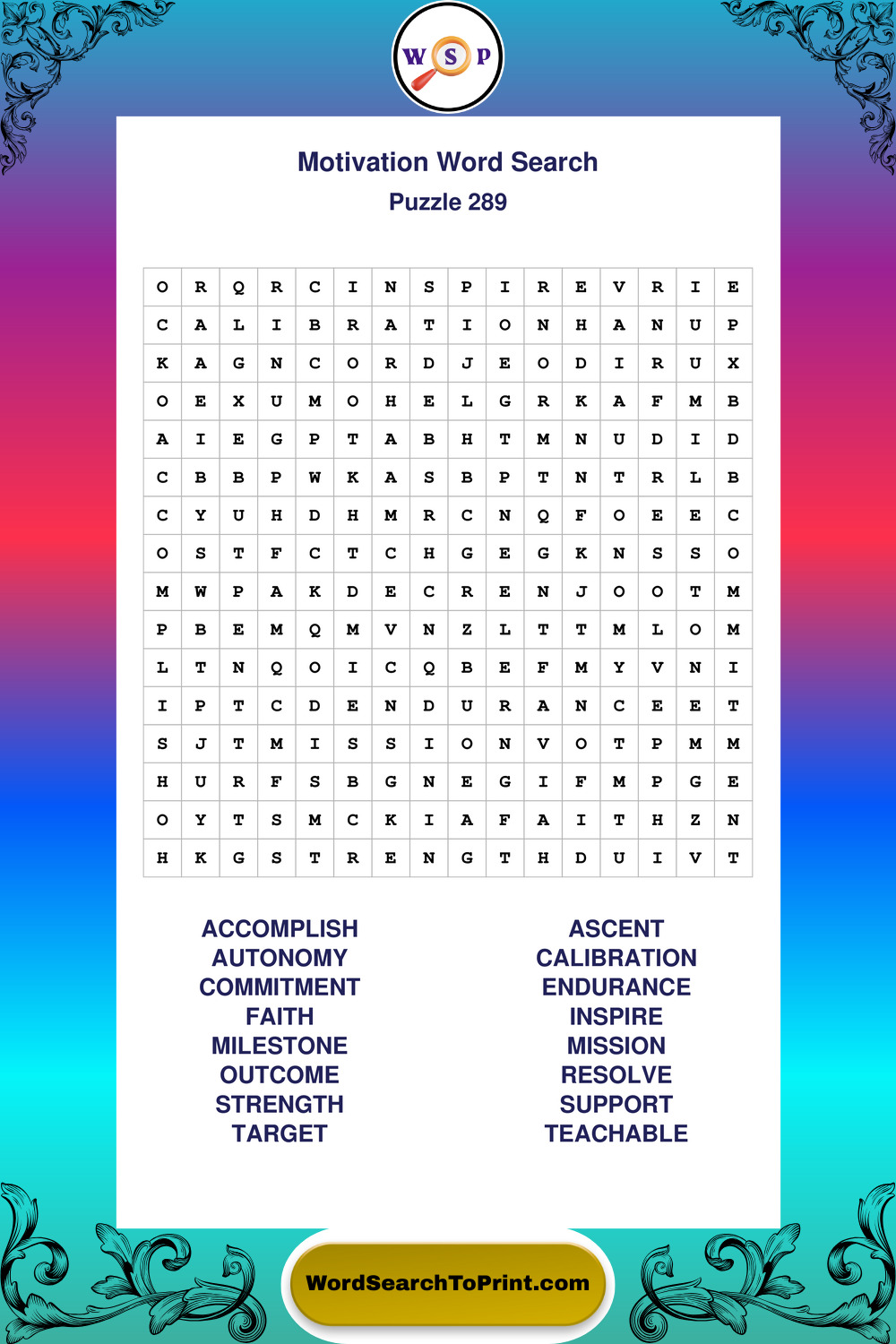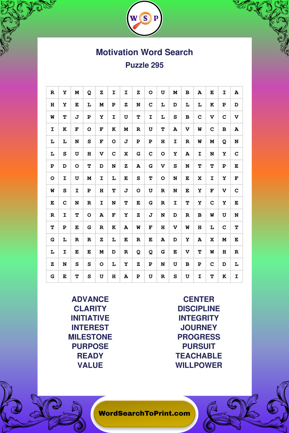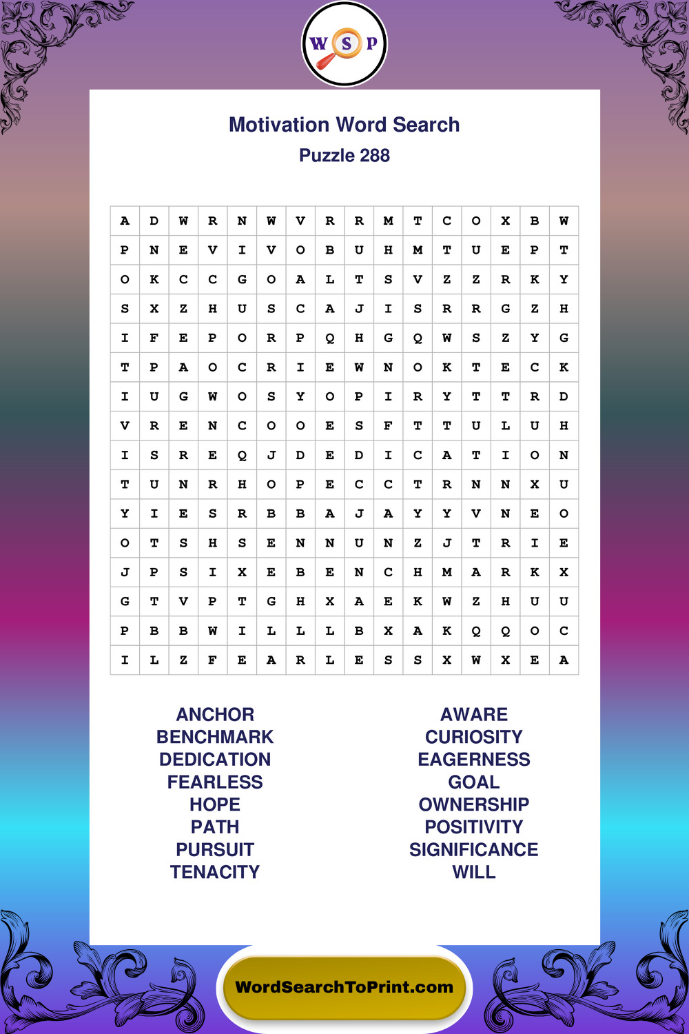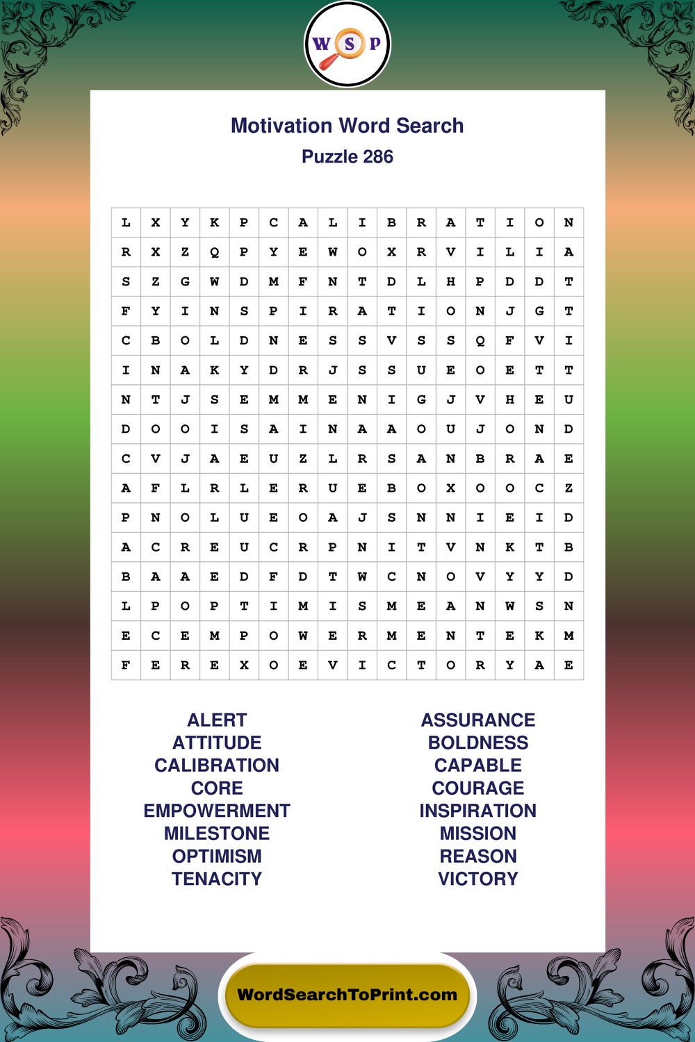 These puzzles focus on motivation, goal setting, life lessons, inspiration, and personal development concepts. They offer a structured and engaging way to explore this topic while strengthening concentration and vocabulary recognition. You may also enjoy our Inspiration word search puzzles and Wisdom word search puzzles.
