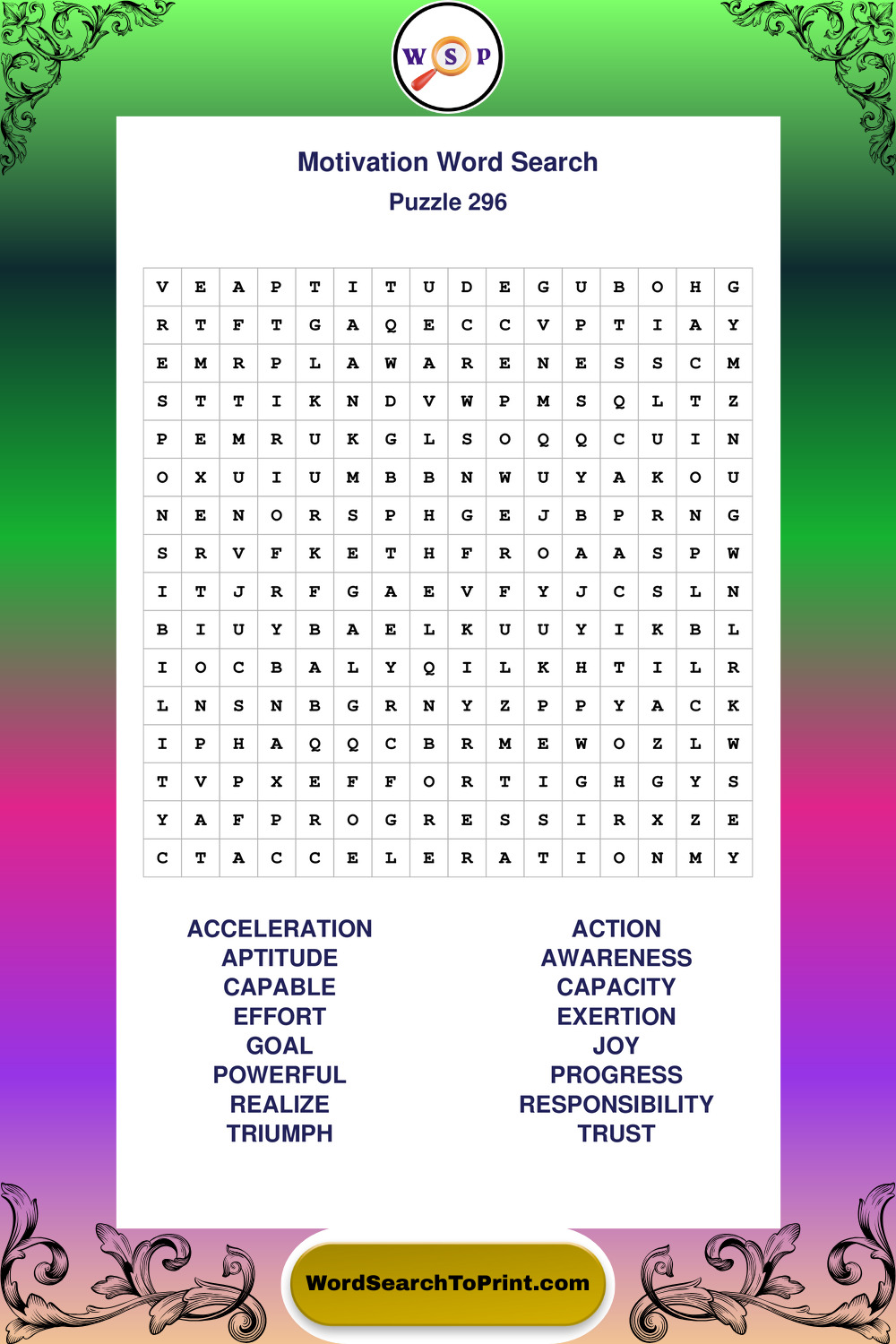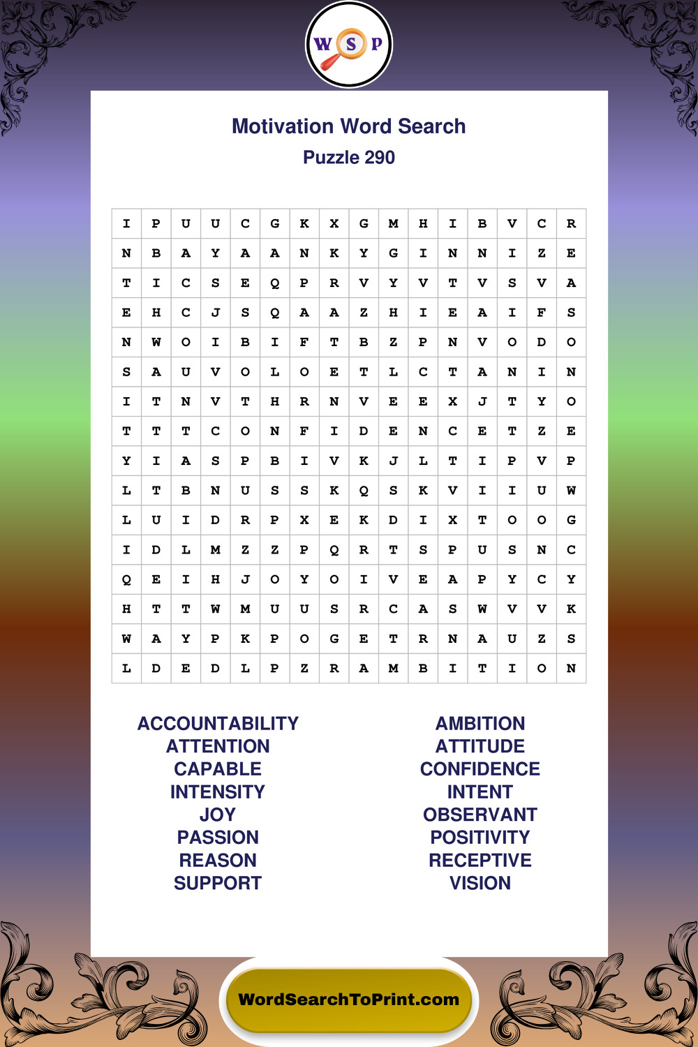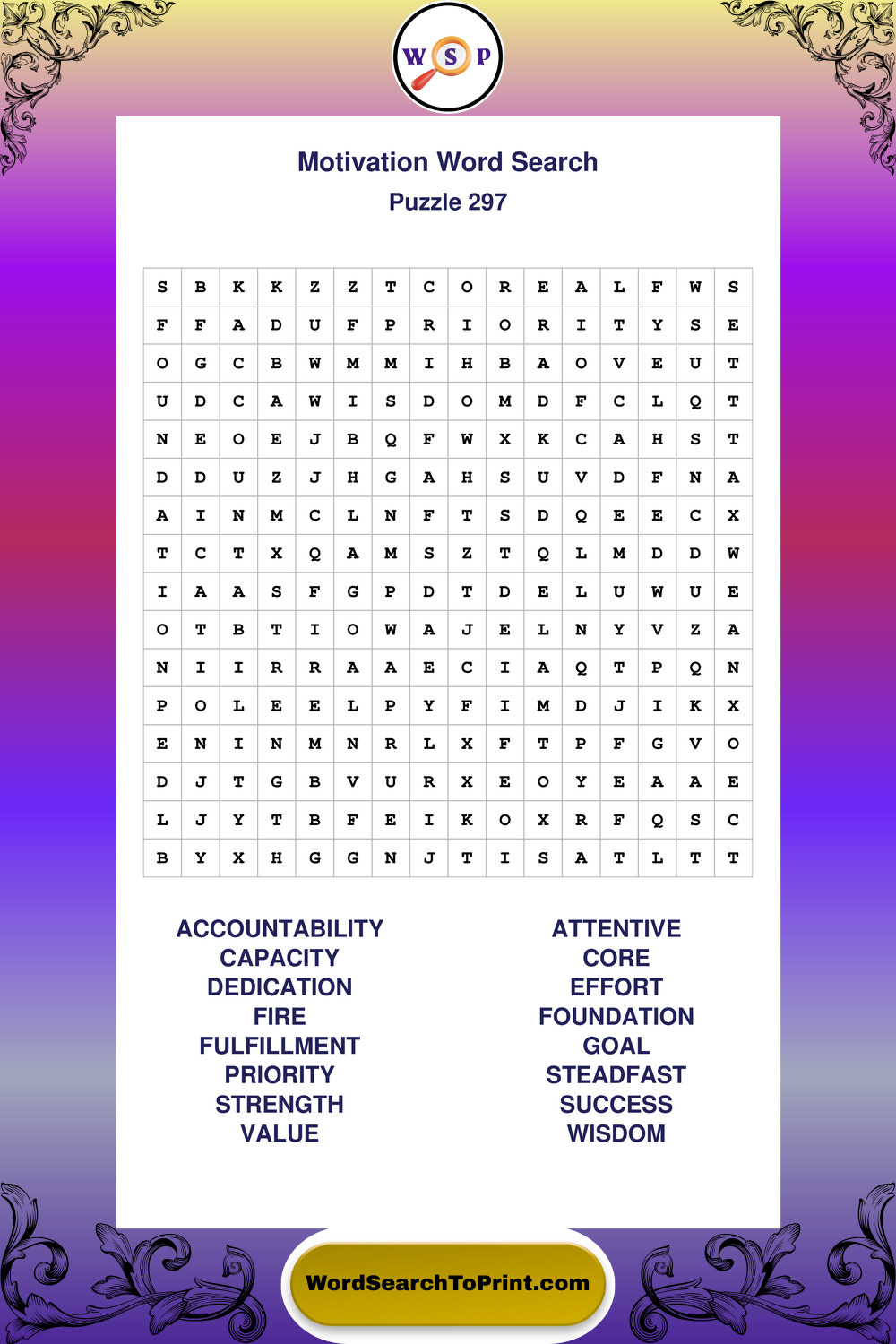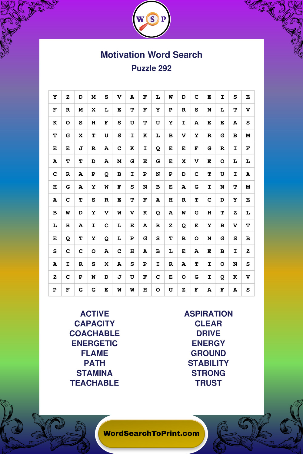 These puzzles focus on motivation, goal setting, life lessons, inspiration, and personal development concepts. They offer a structured and engaging way to explore this topic while strengthening concentration and vocabulary recognition. You may also enjoy our Inspiration word search puzzles and Wisdom word search puzzles.