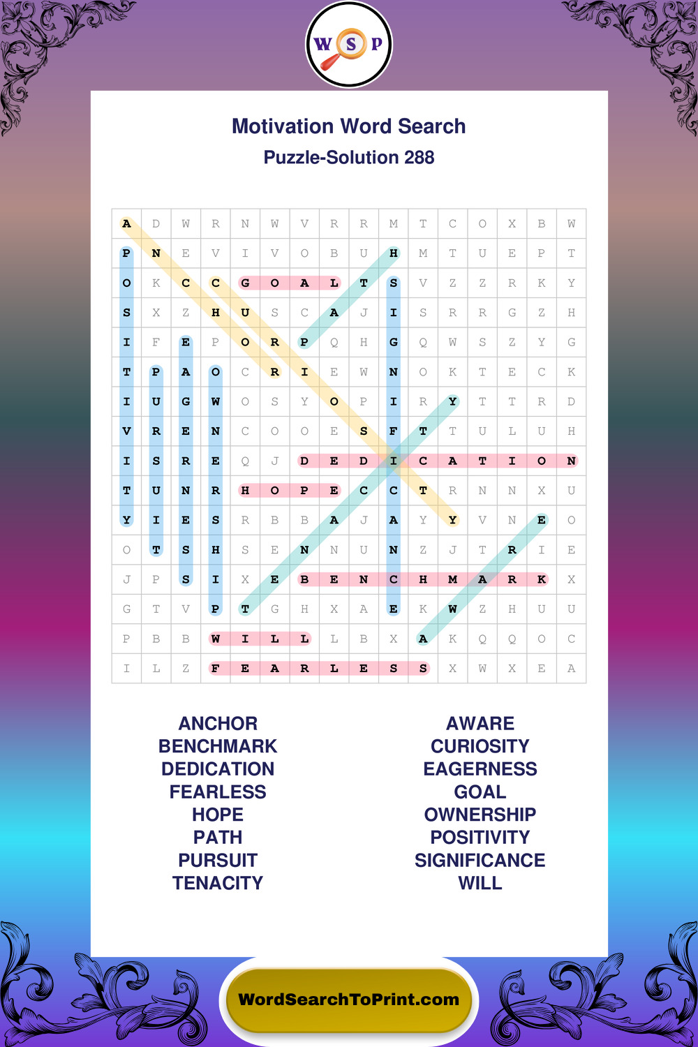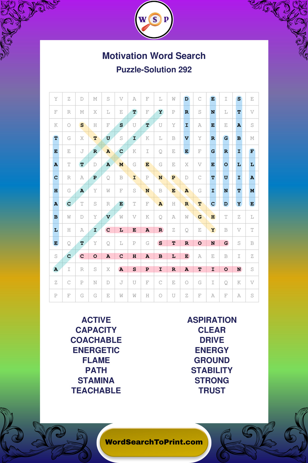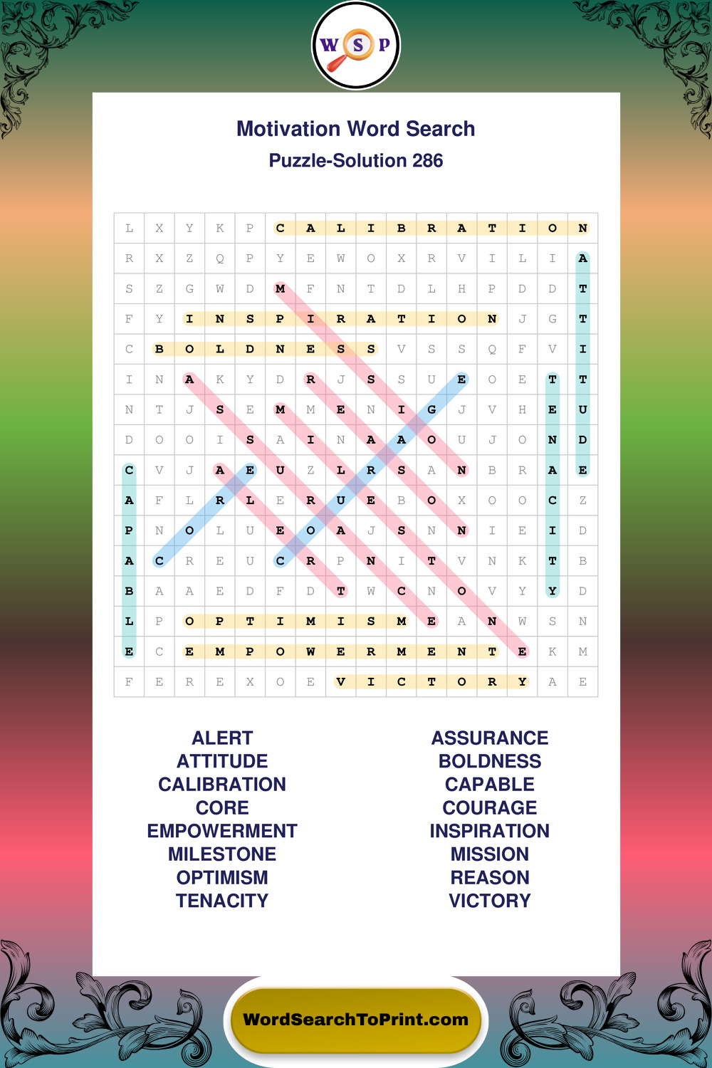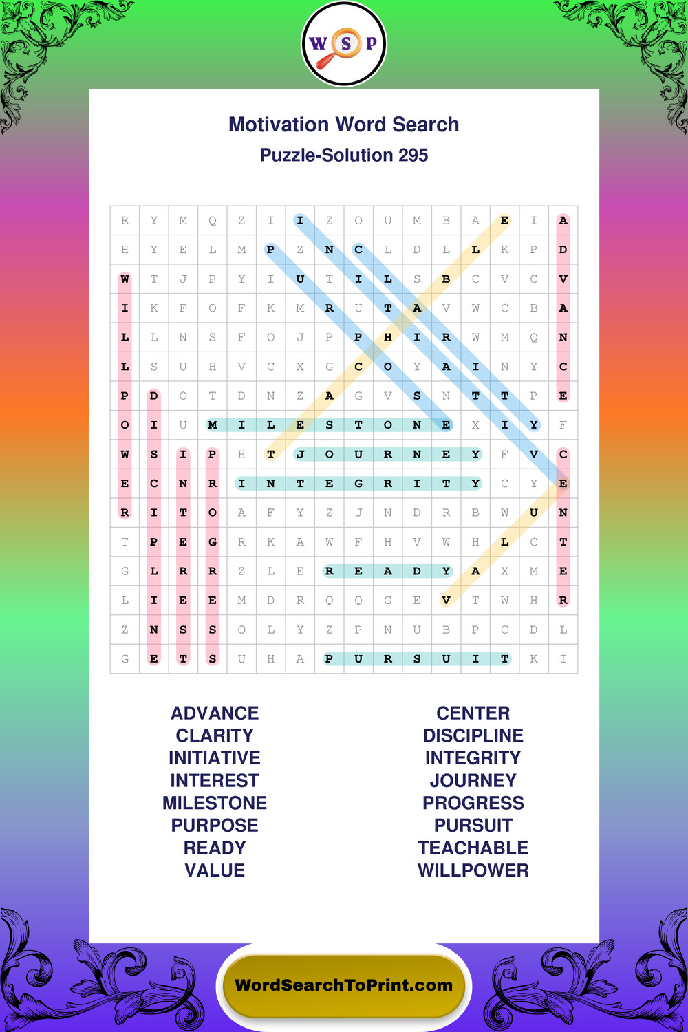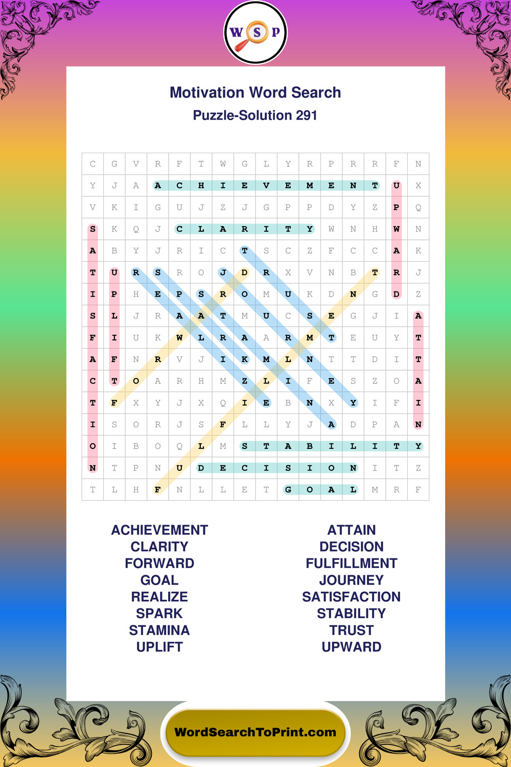 These puzzles focus on motivation, goal setting, life lessons, inspiration, and personal development concepts. They offer a structured and engaging way to explore this topic while strengthening concentration and vocabulary recognition. You may also enjoy our Inspiration word search puzzles and Wisdom word search puzzles.
