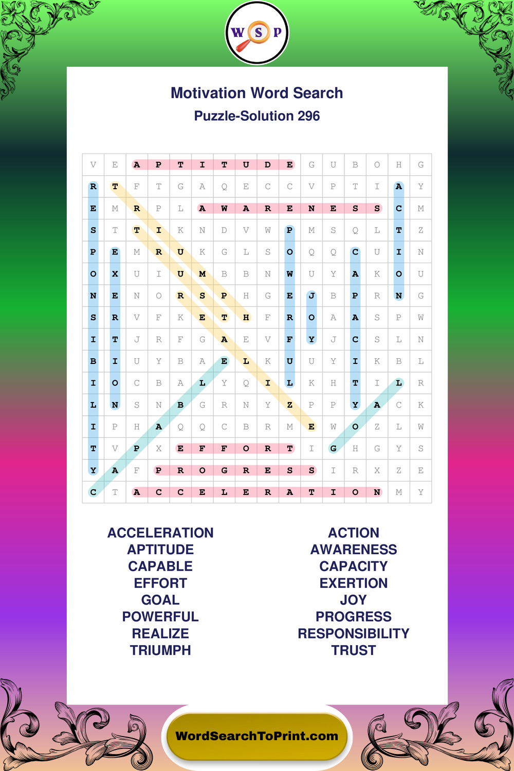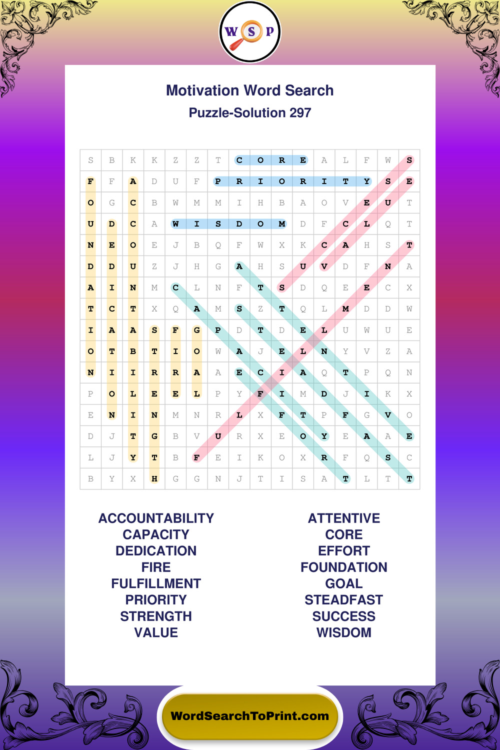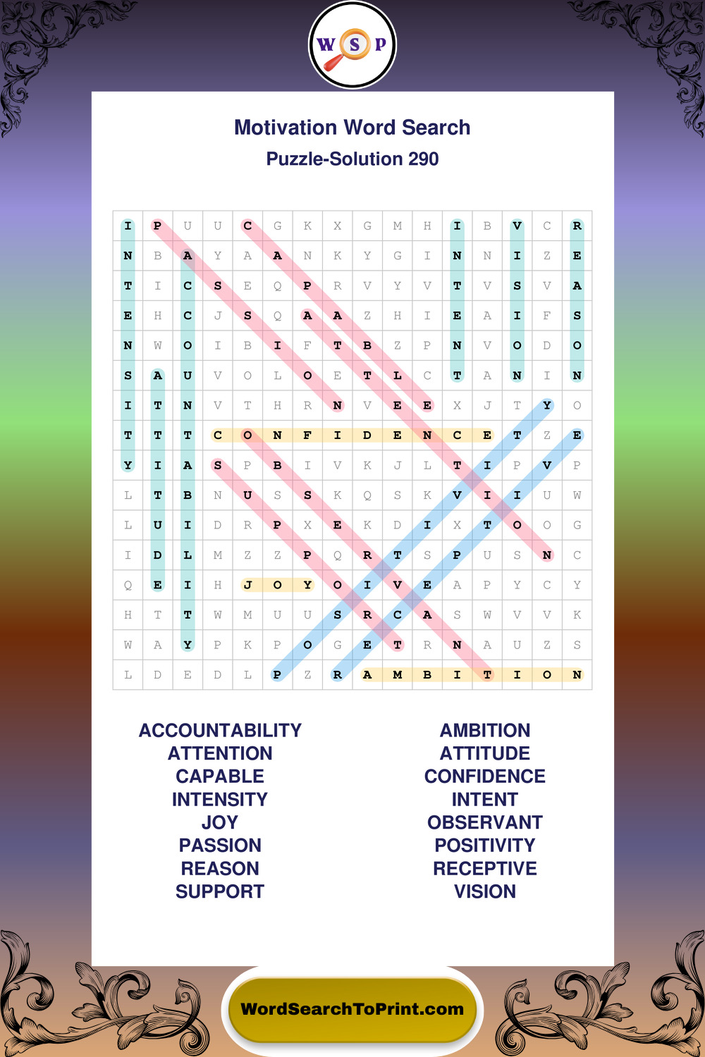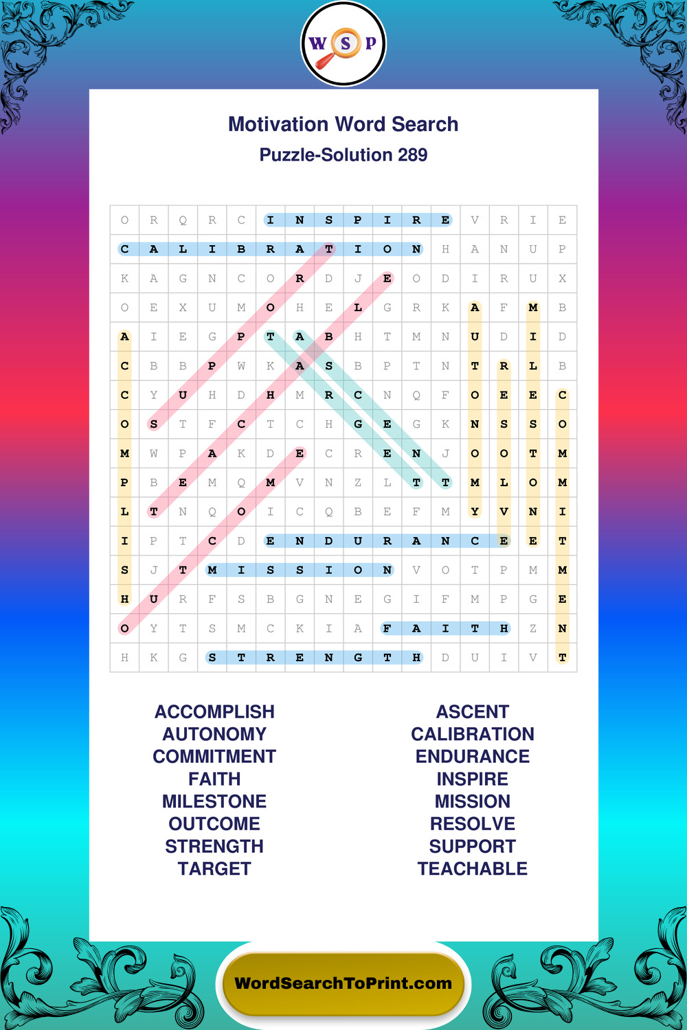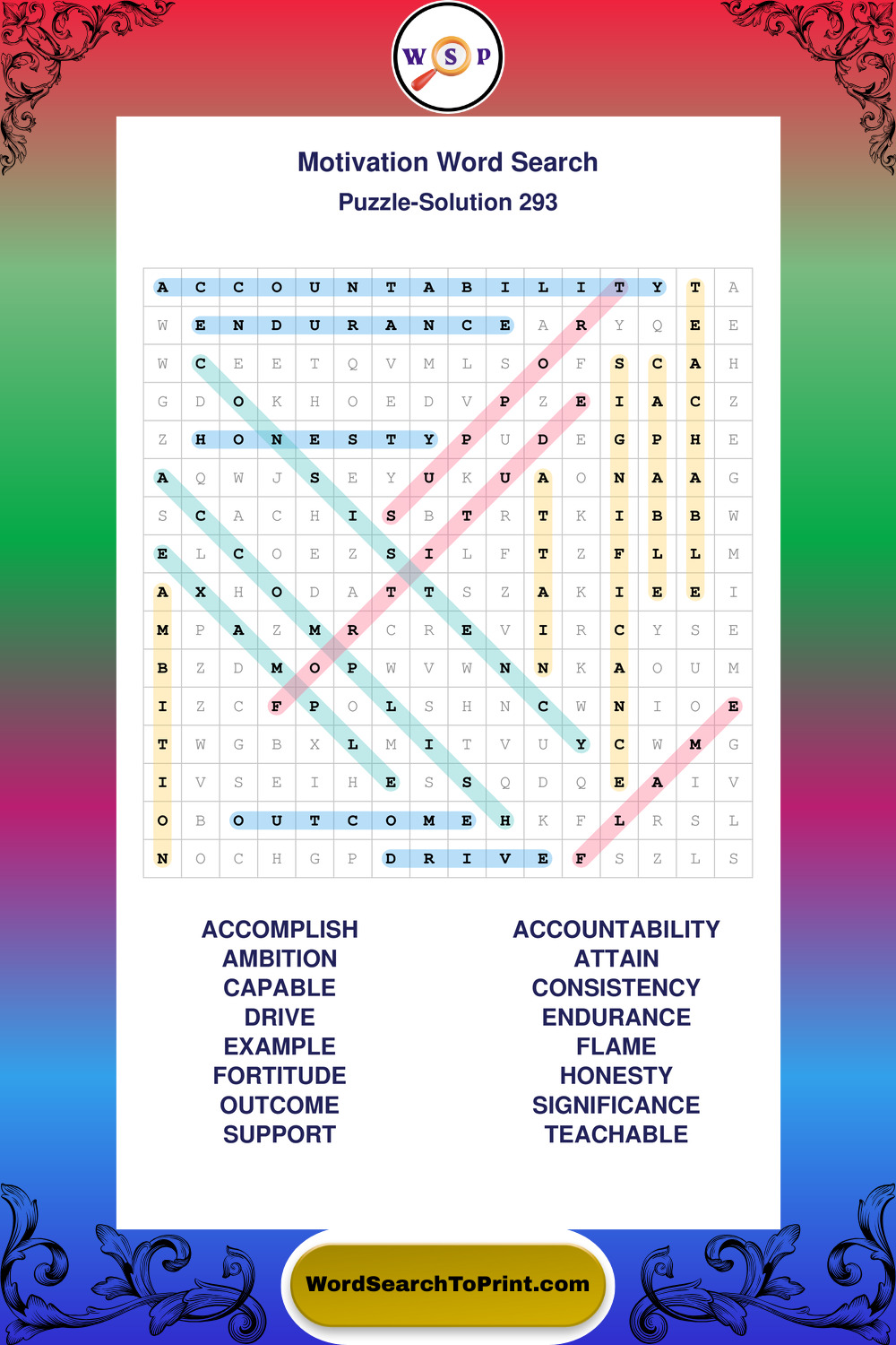 These puzzles focus on motivation, goal setting, life lessons, inspiration, and personal development concepts. They offer a structured and engaging way to explore this topic while strengthening concentration and vocabulary recognition. You may also enjoy our Inspiration word search puzzles and Wisdom word search puzzles.