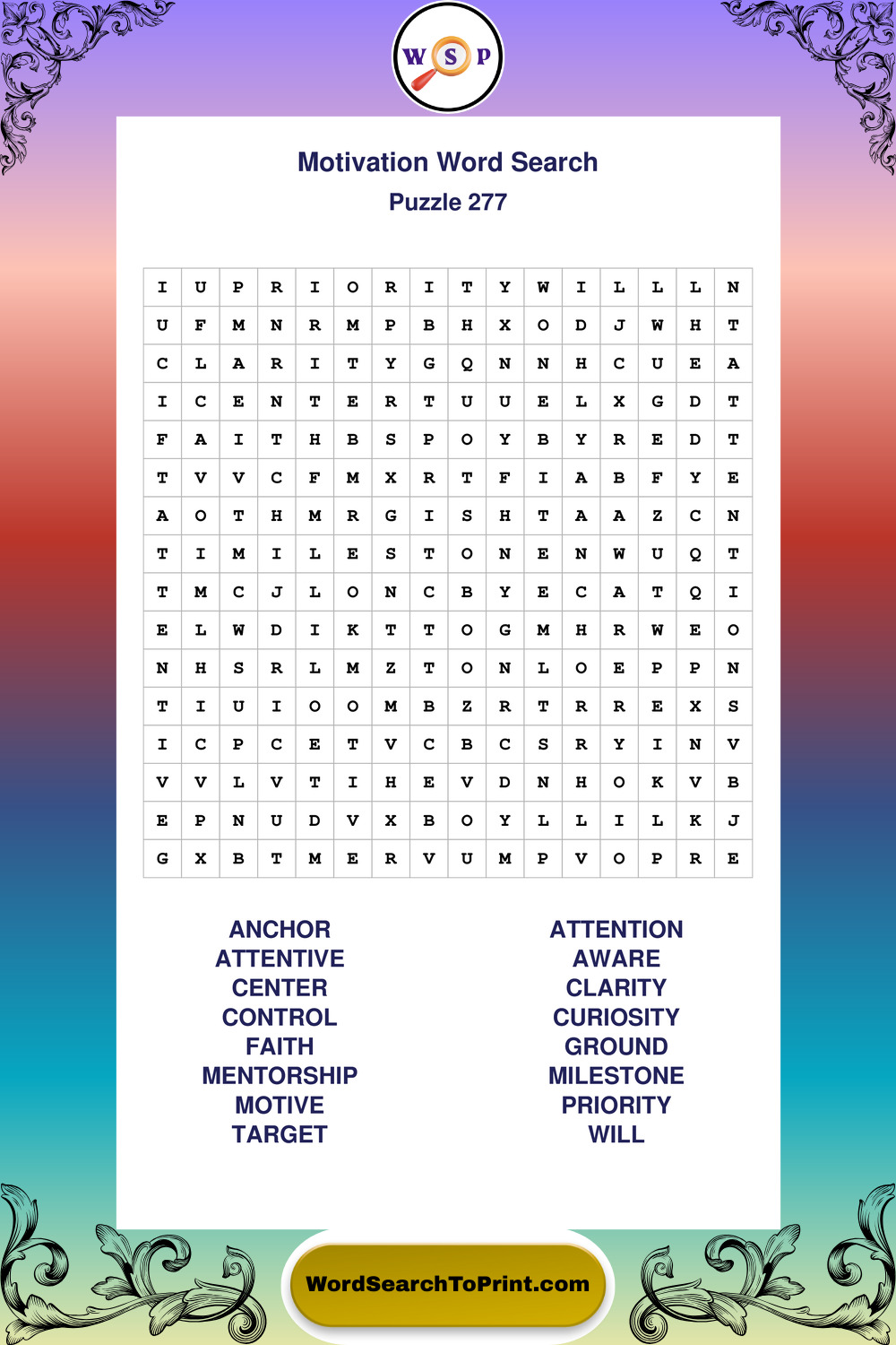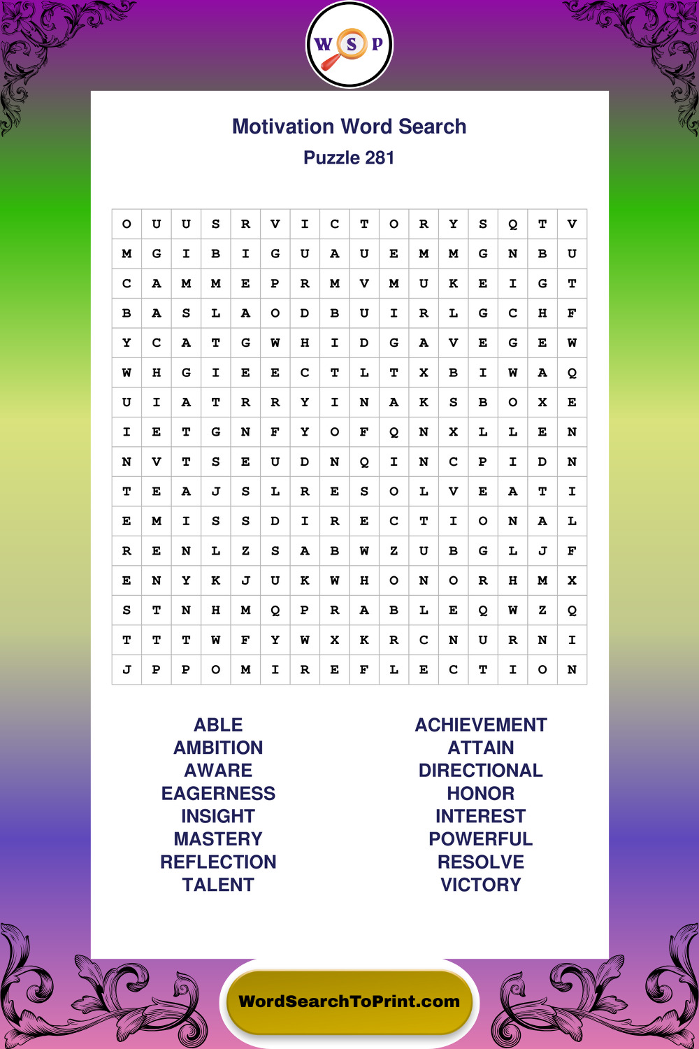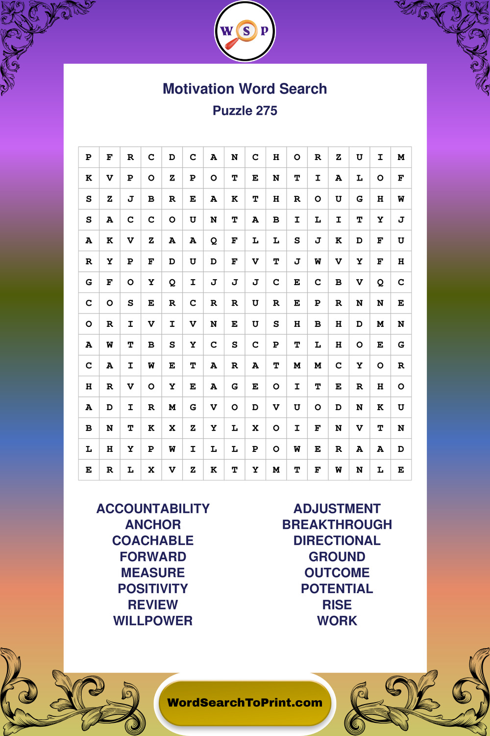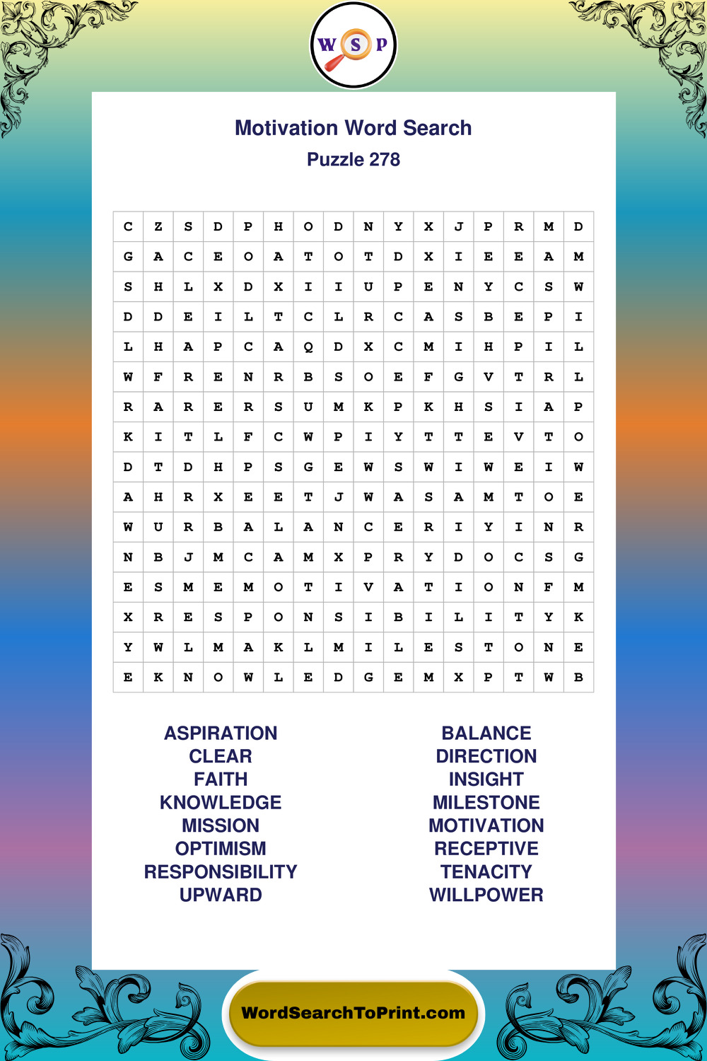 Printable Motivation Wordsearch Puzzles