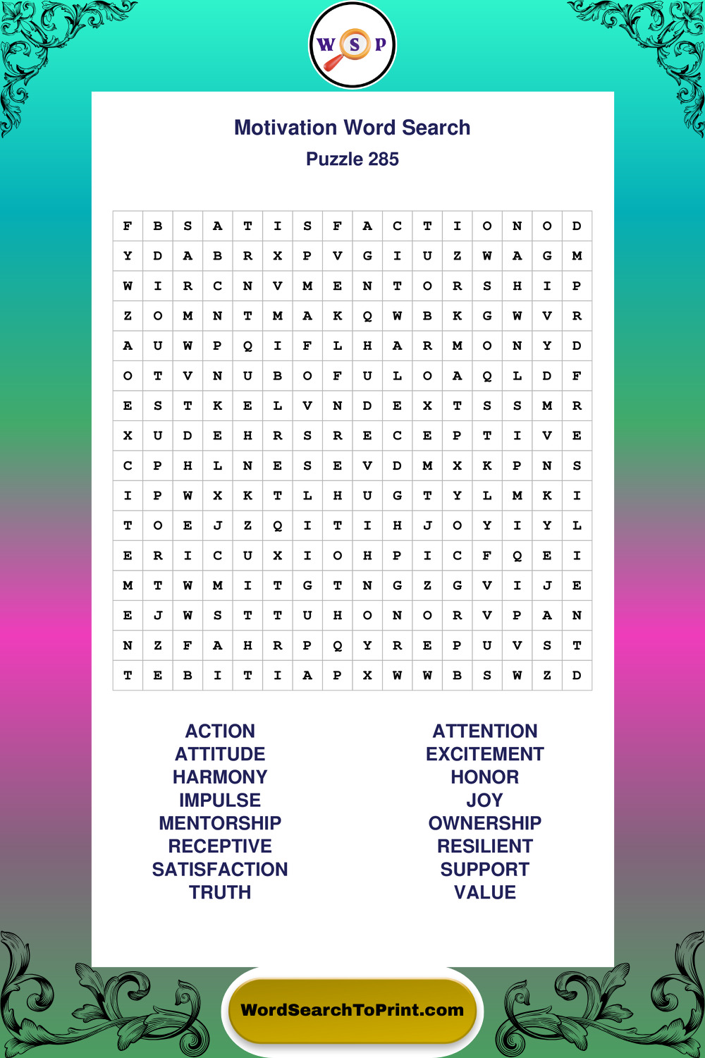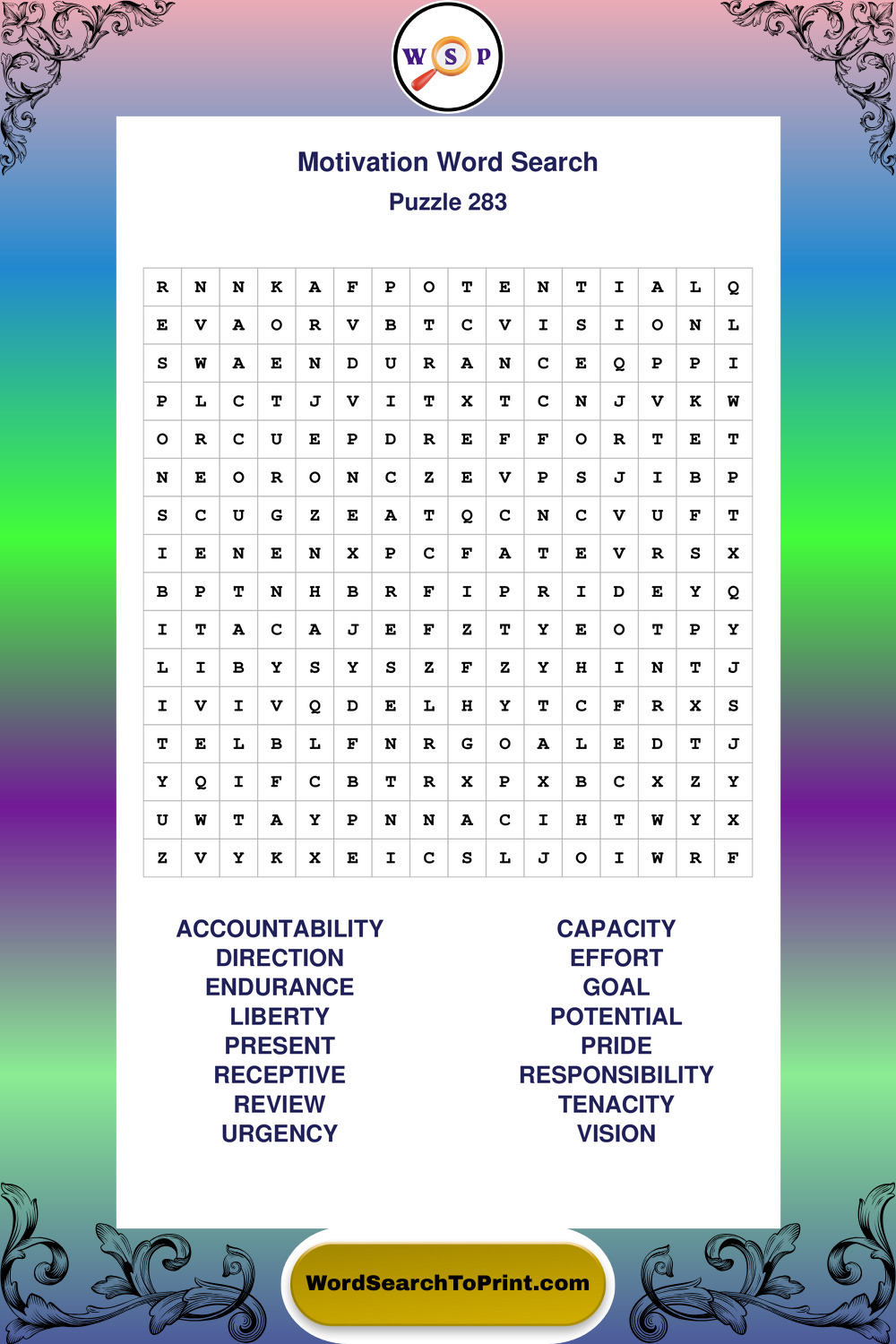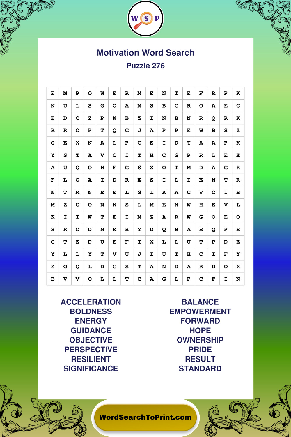 Printable Motivation Wordsearch Puzzles
