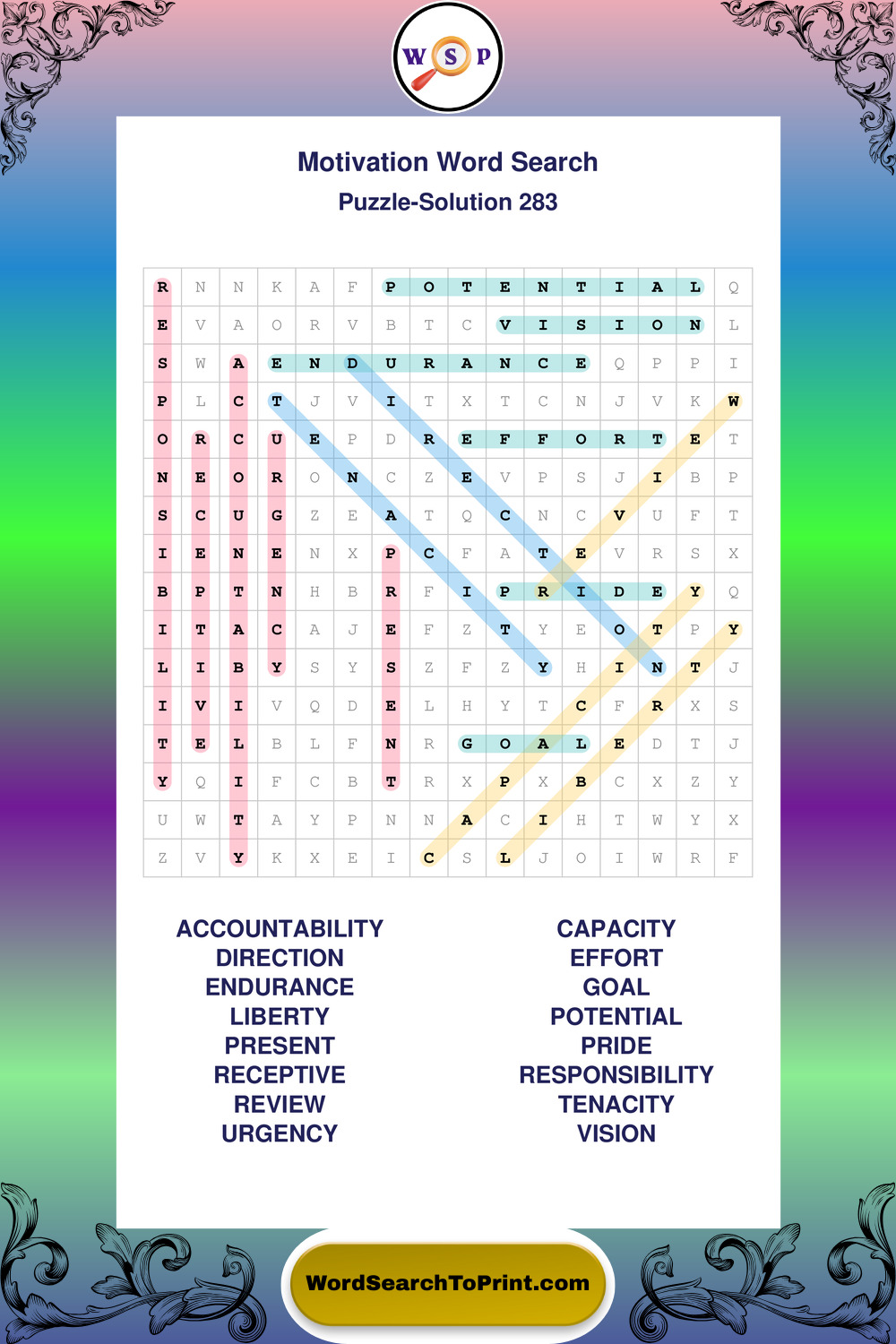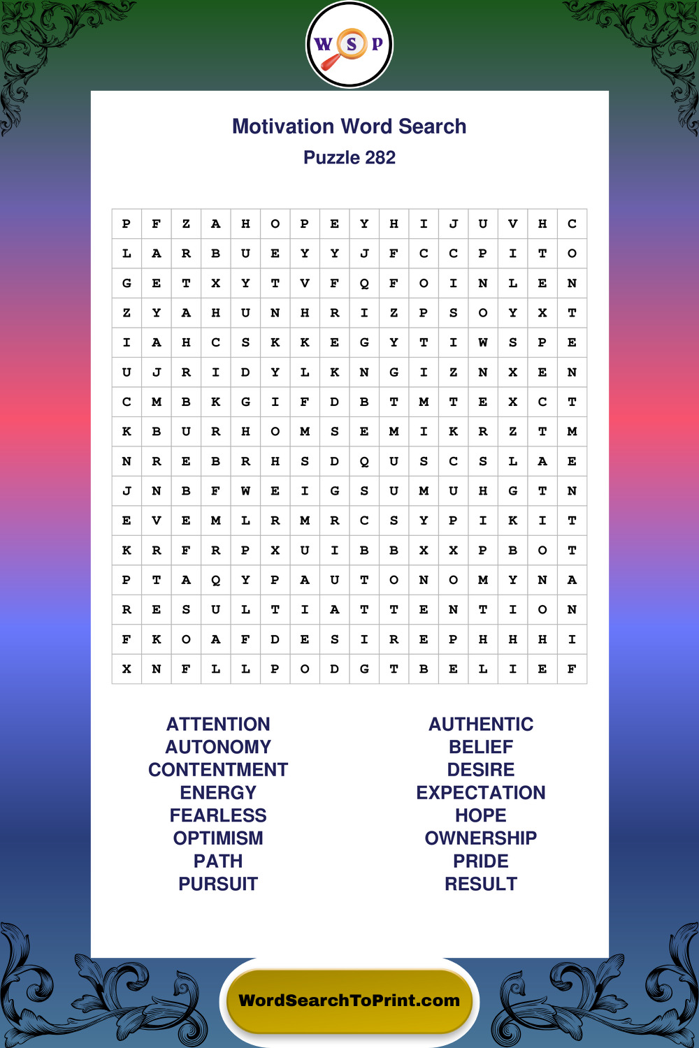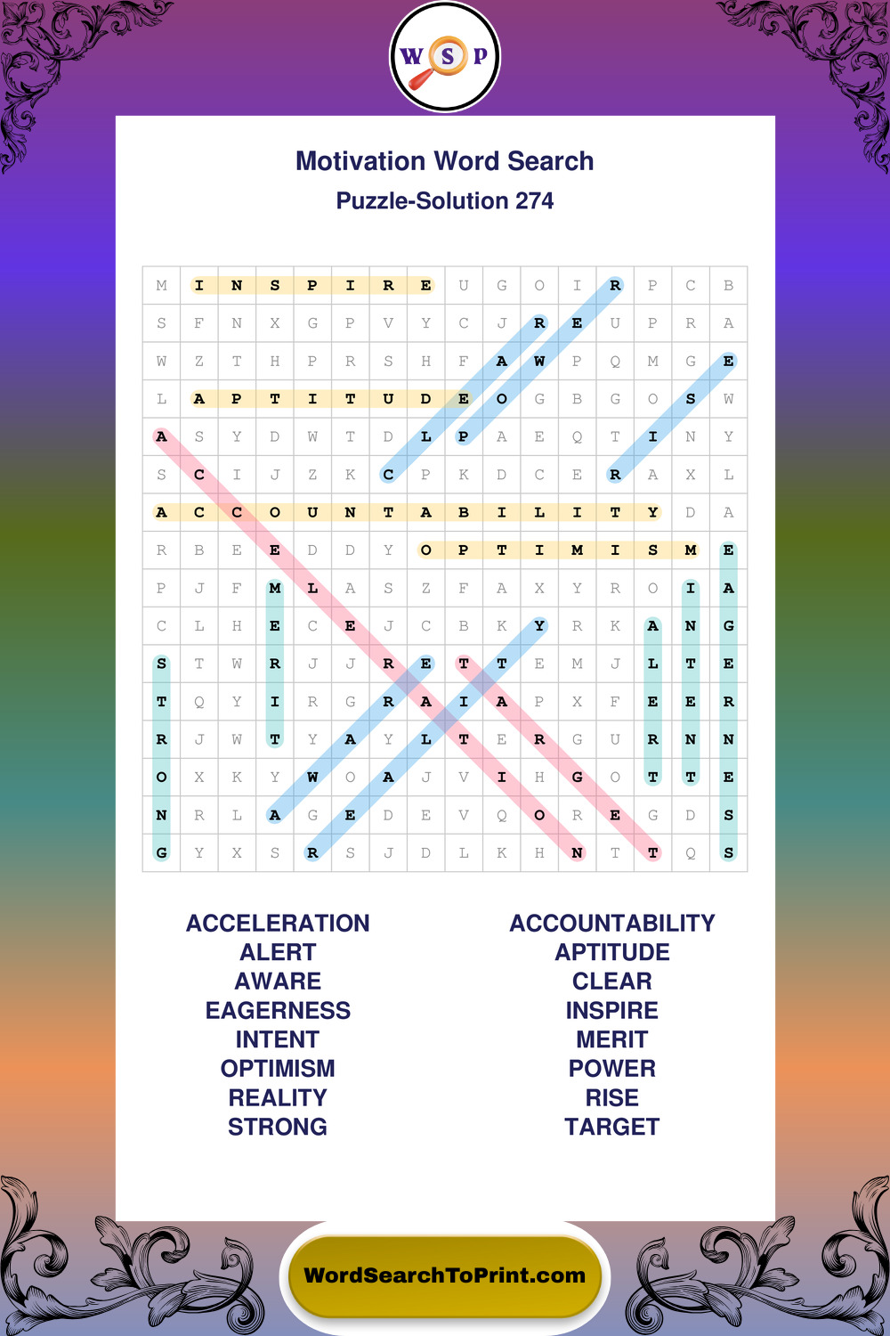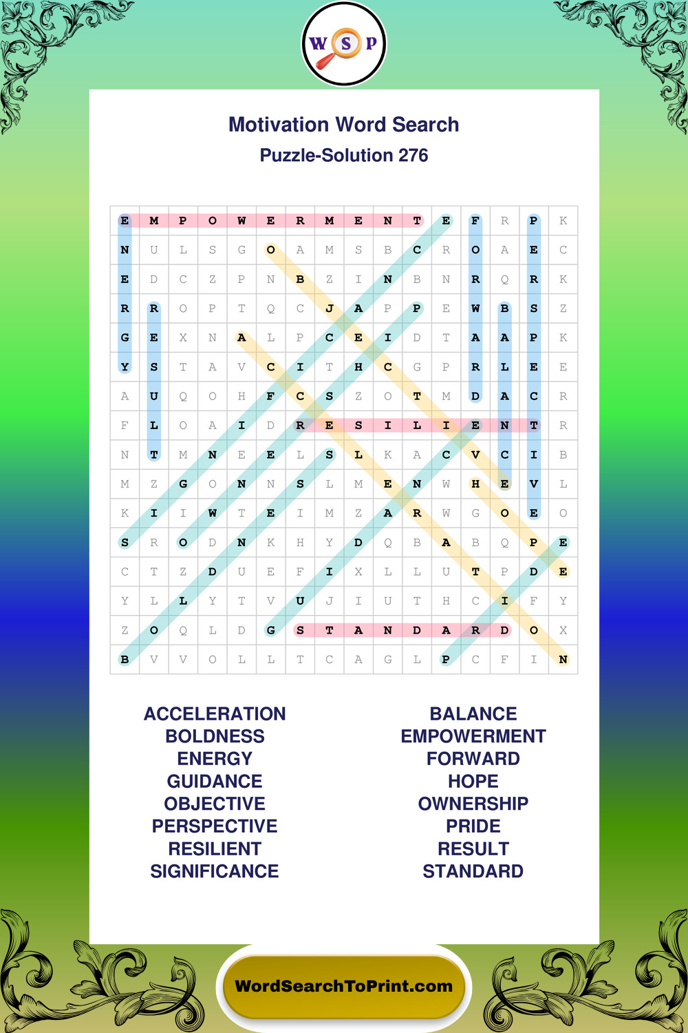 Printable Motivation Wordsearch Puzzles