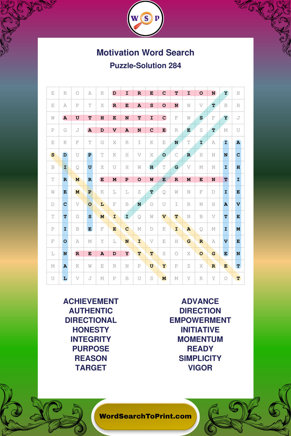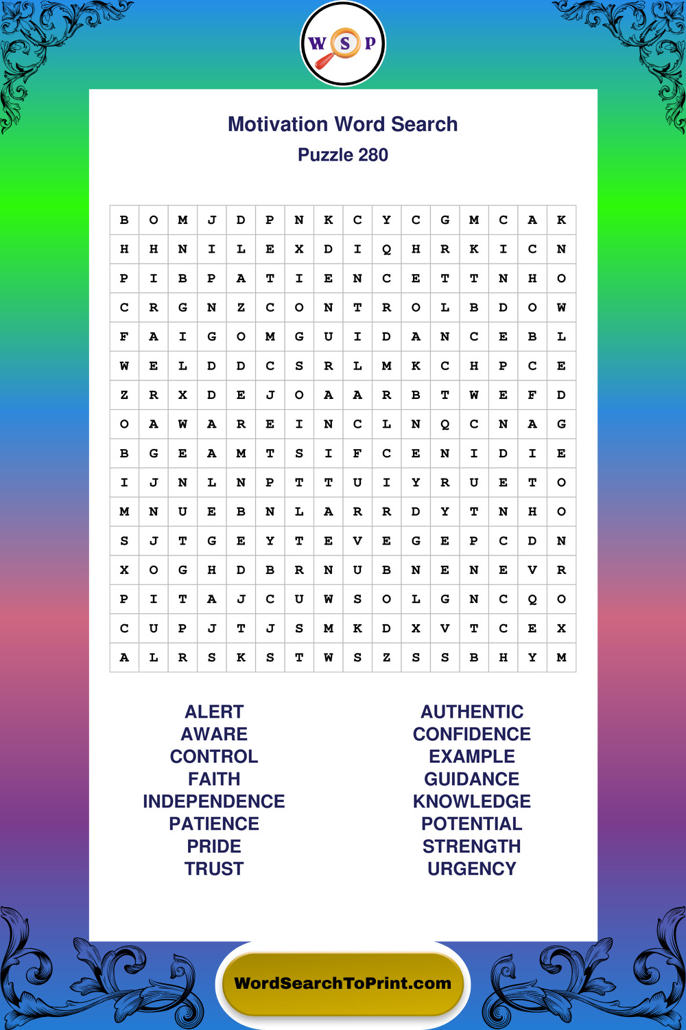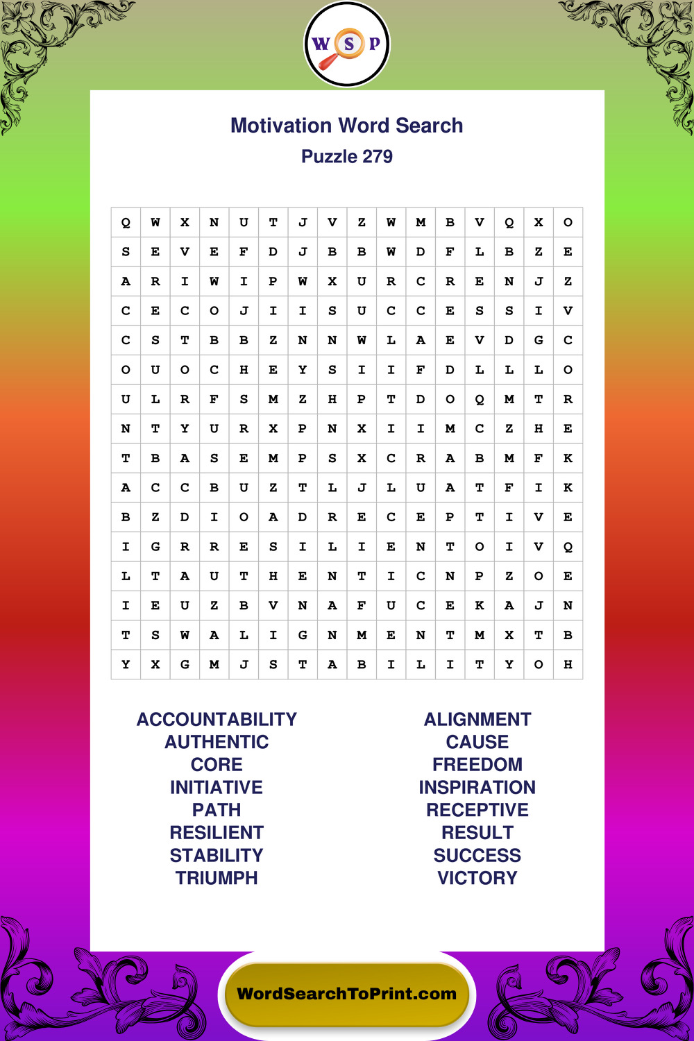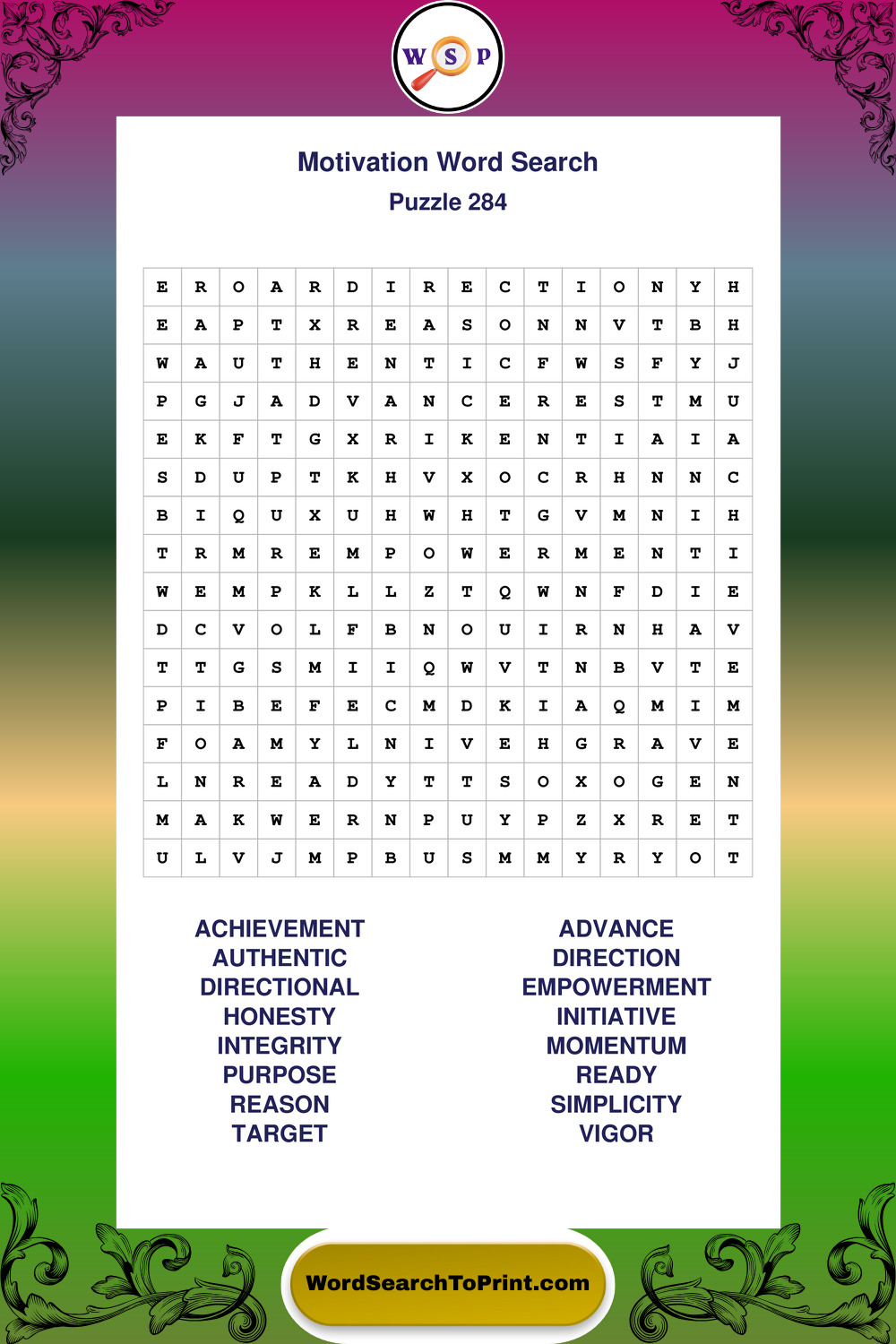 These puzzles focus on motivation, goal setting, life lessons, inspiration, and personal development concepts. They offer a structured and engaging way to explore this topic while strengthening concentration and vocabulary recognition. You may also enjoy our Inspiration word search puzzles and Wisdom word search puzzles.