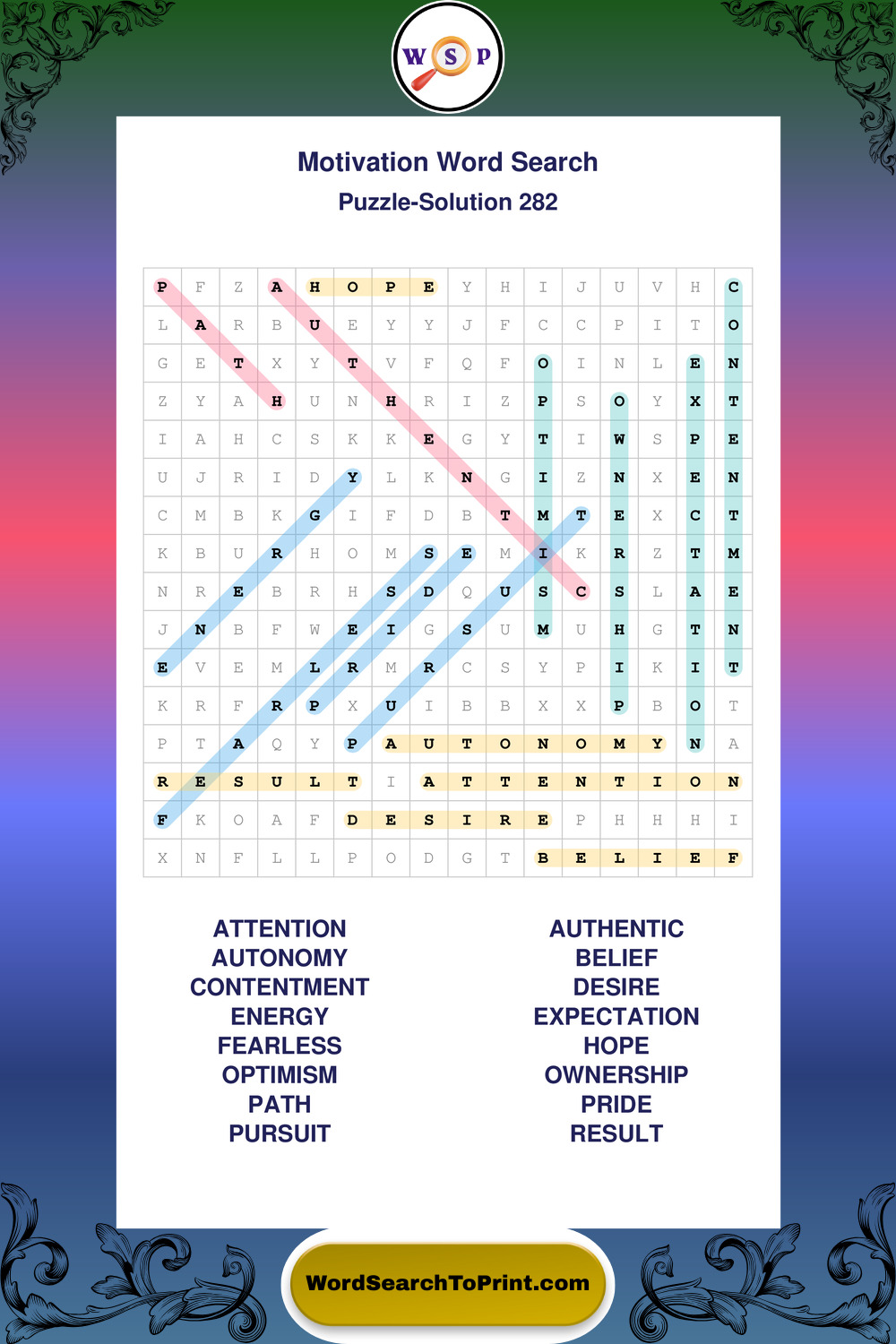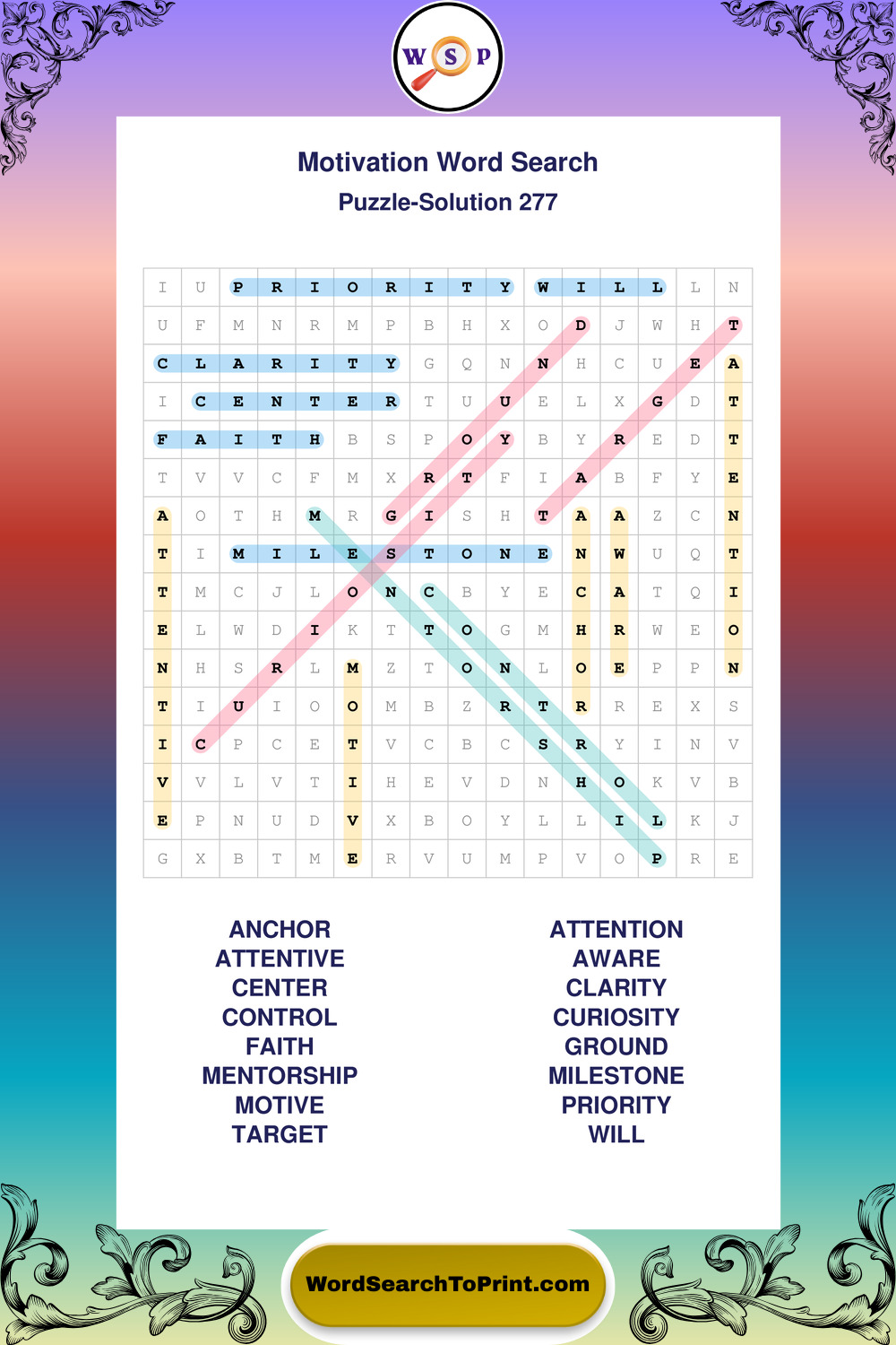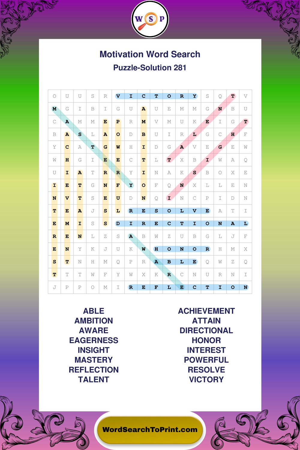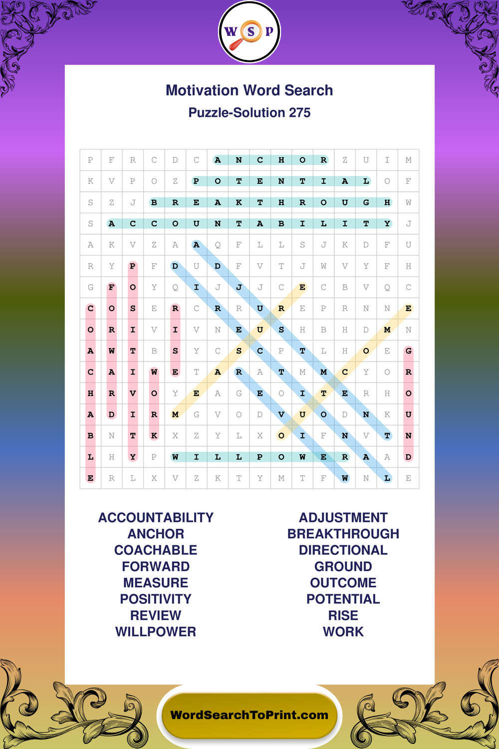 These puzzles focus on motivation, goal setting, life lessons, inspiration, and personal development concepts. They offer a structured and engaging way to explore this topic while strengthening concentration and vocabulary recognition. You may also enjoy our Inspiration word search puzzles and Wisdom word search puzzles.