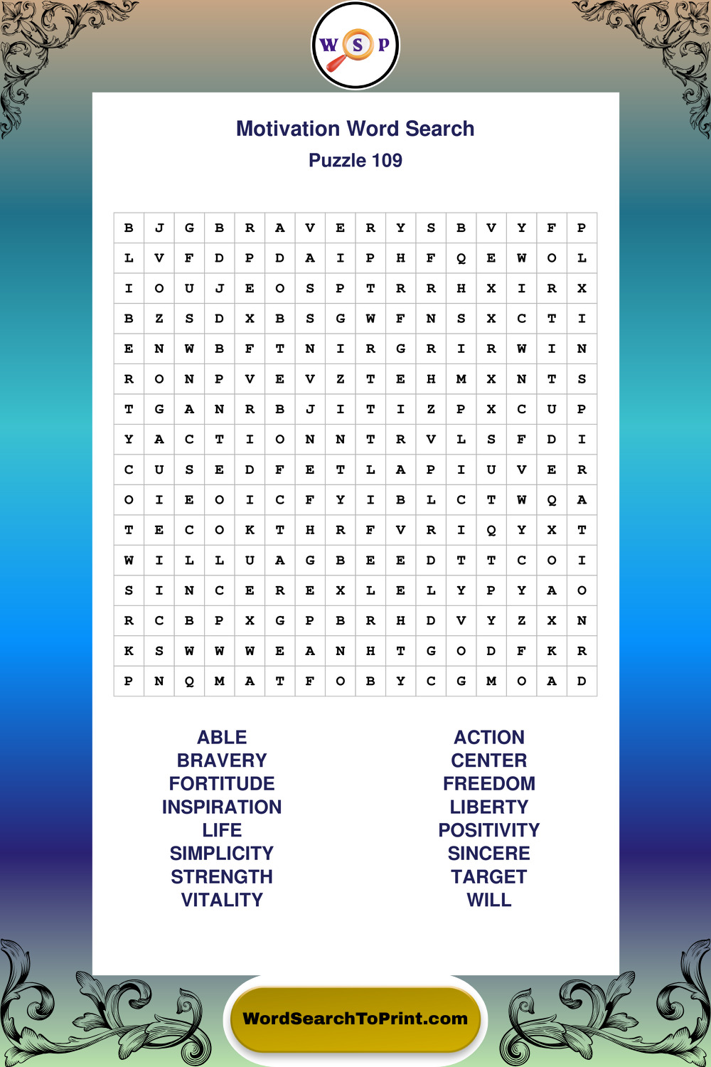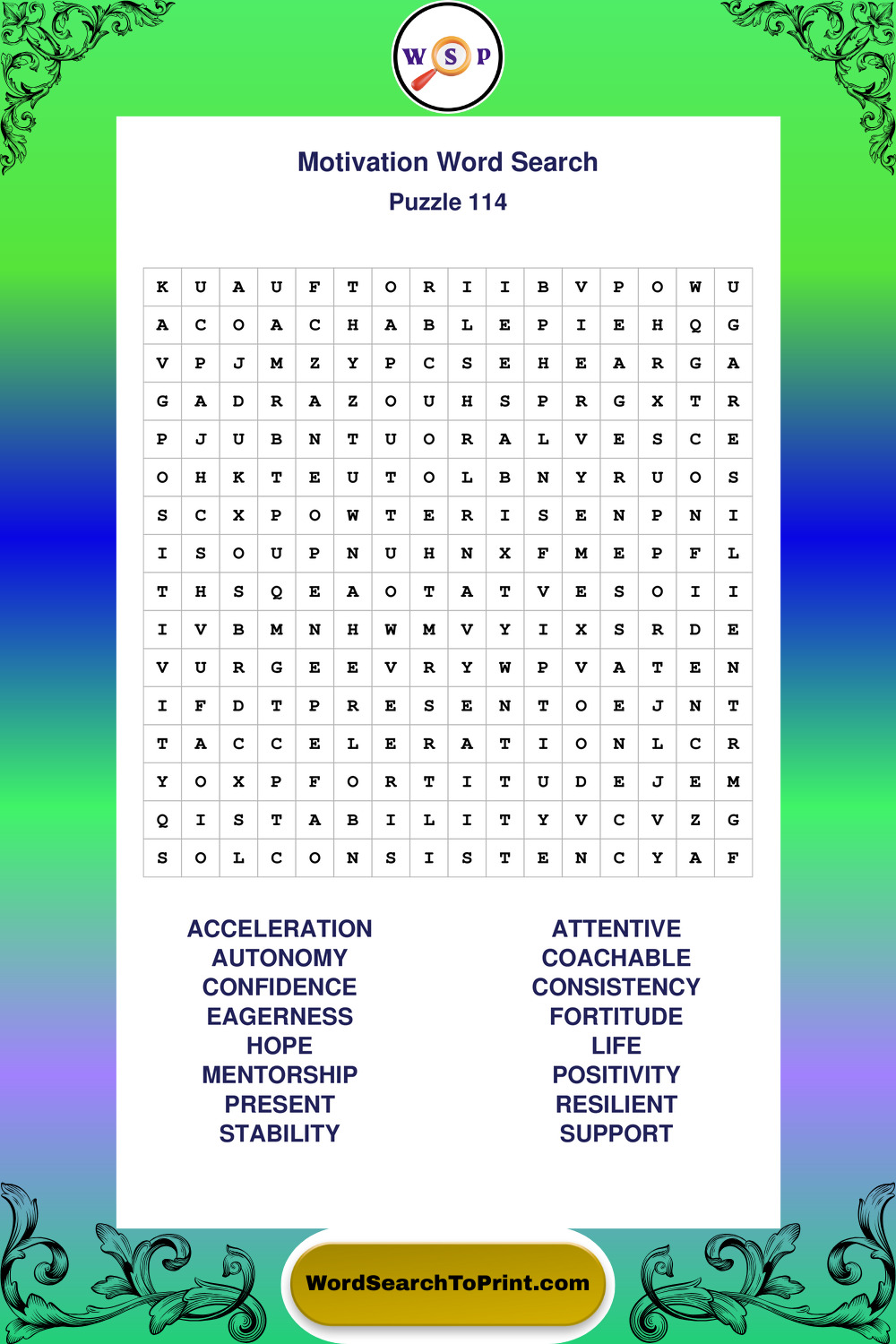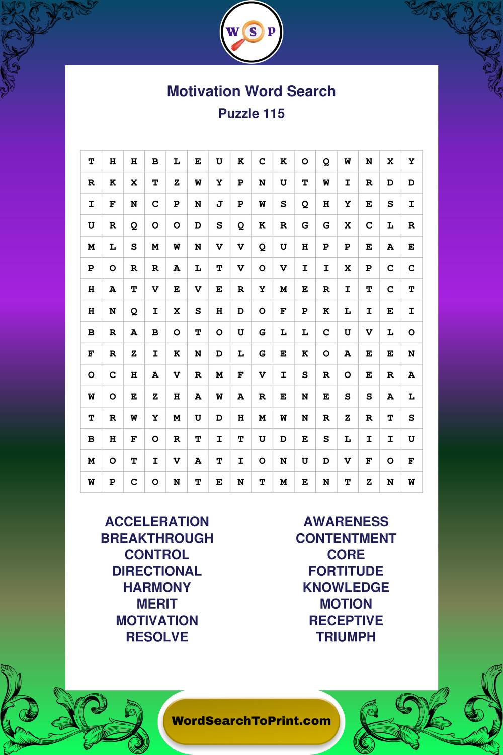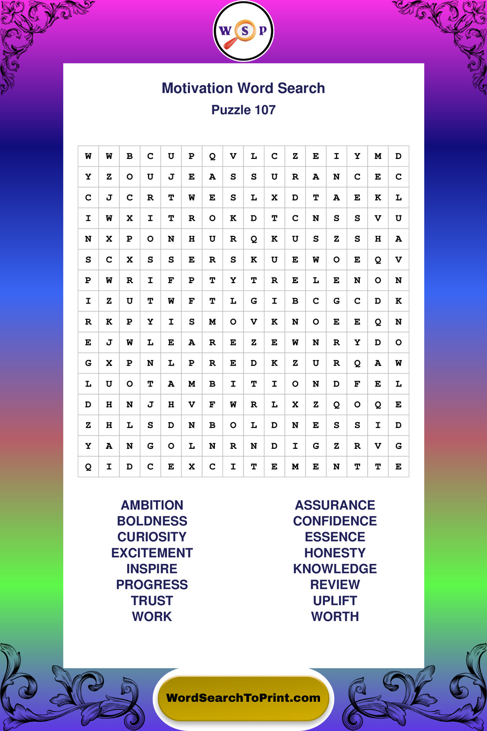 Printable Motivation Wordsearch Puzzles