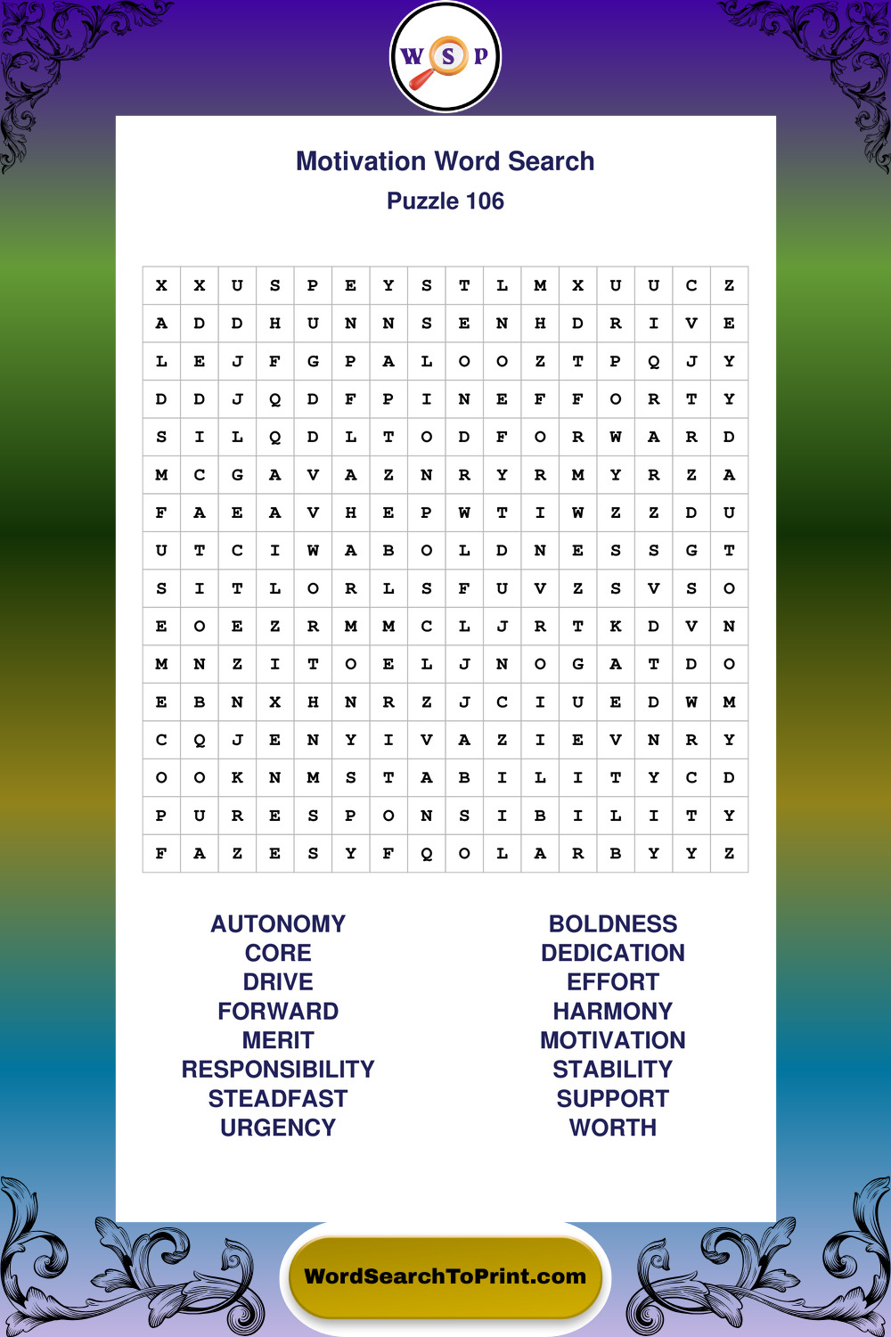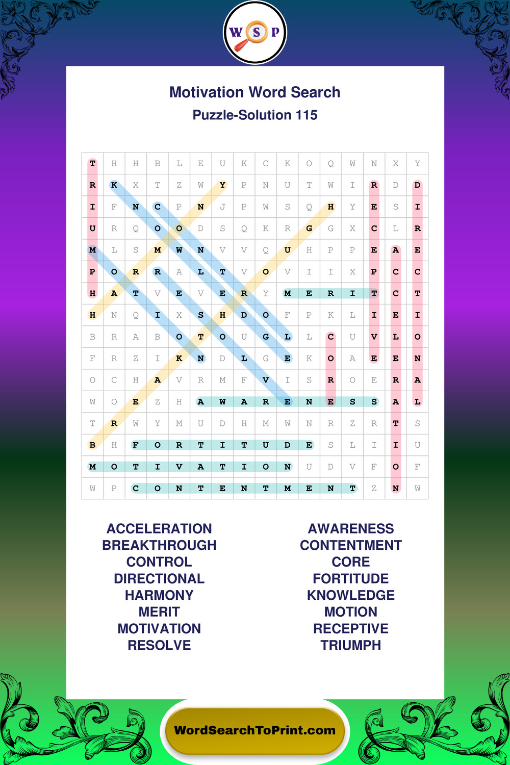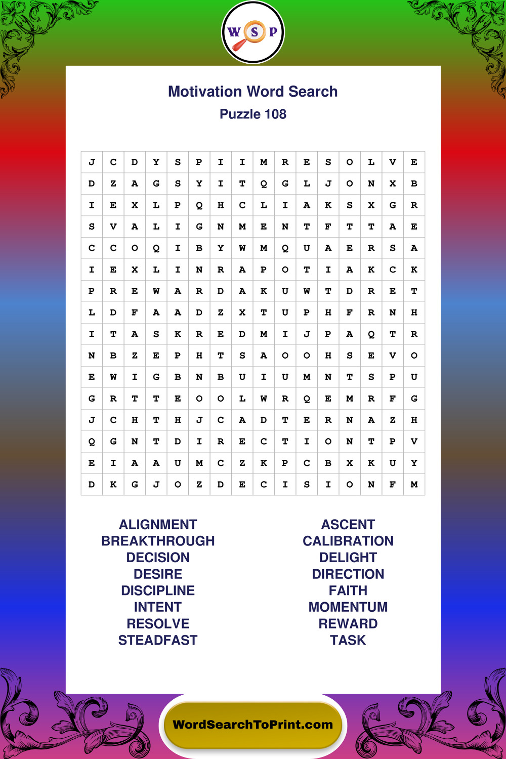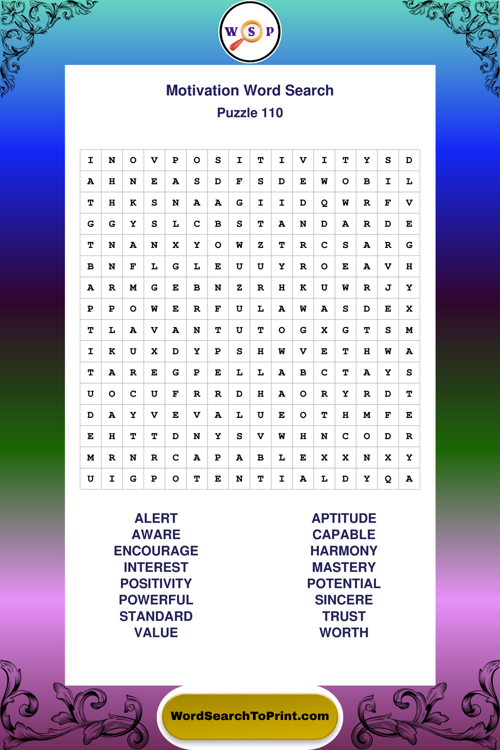 Printable Motivation Wordsearch Puzzles