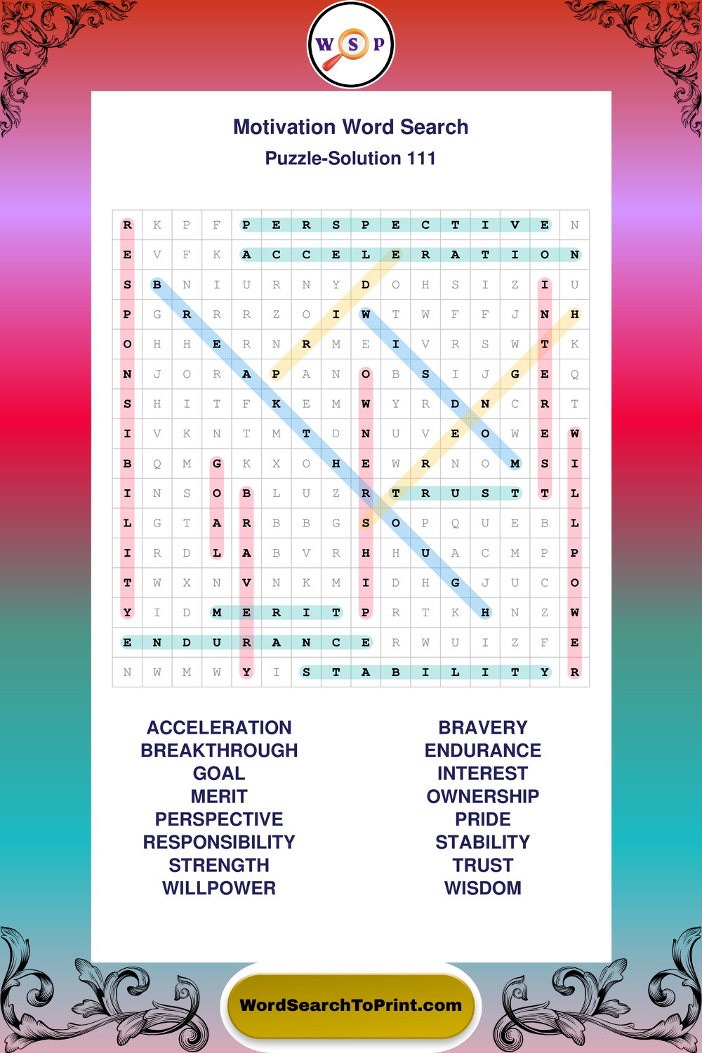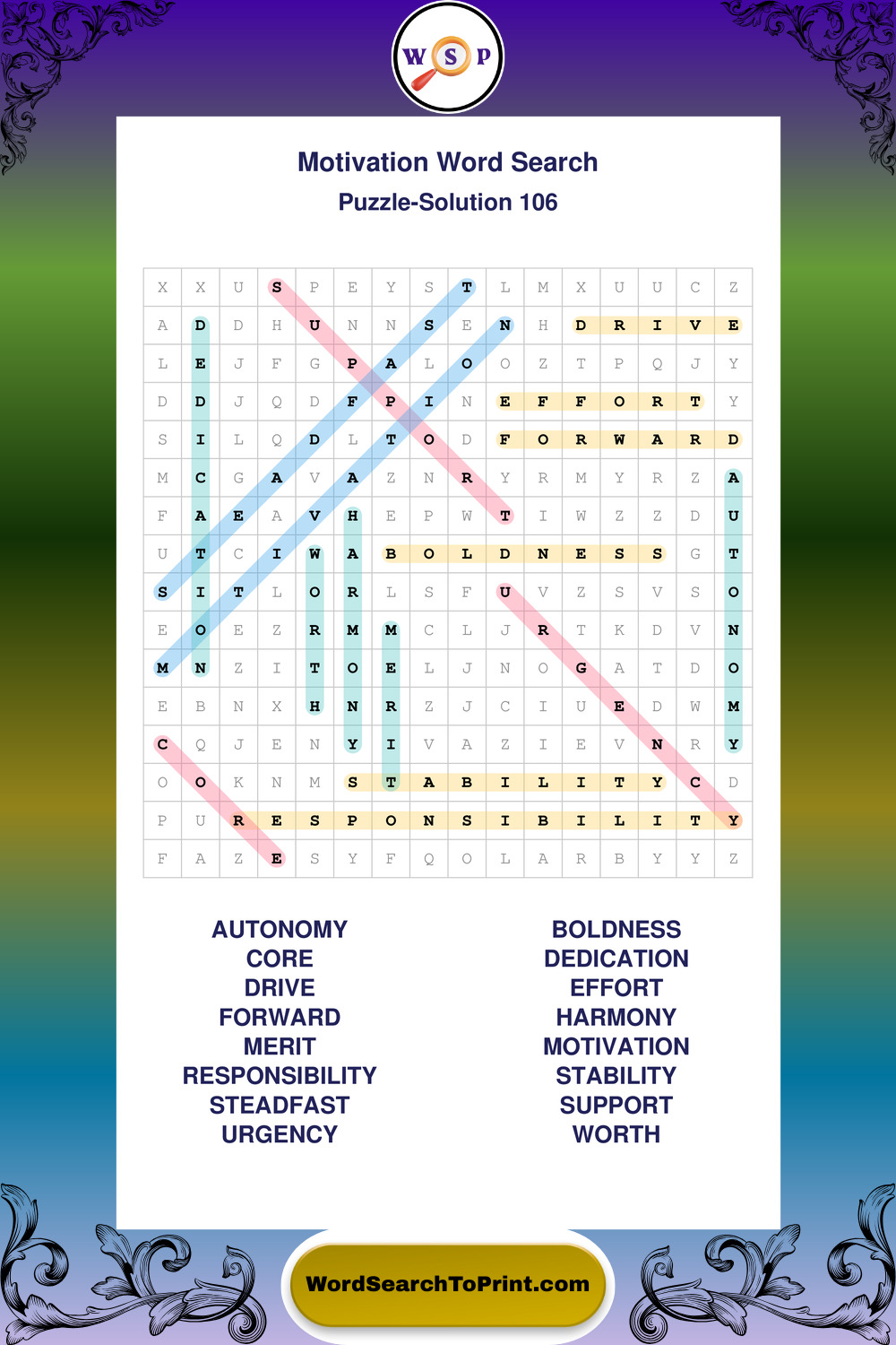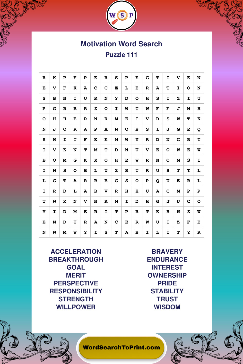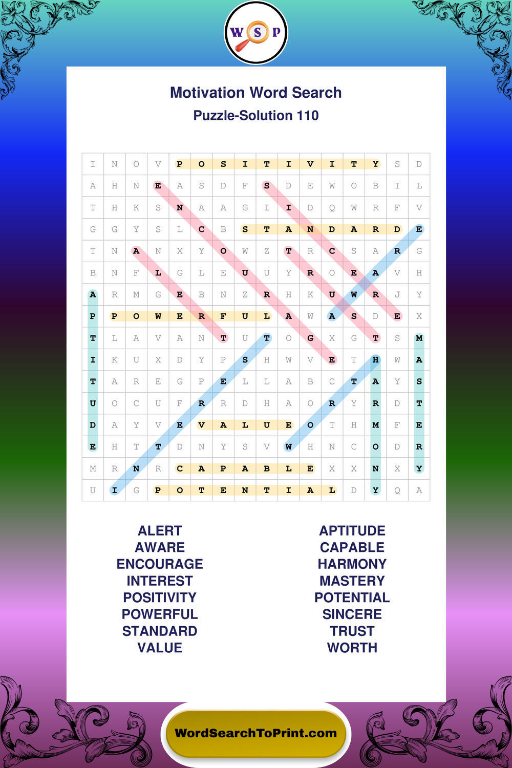 Printable Motivation Wordsearch Puzzles