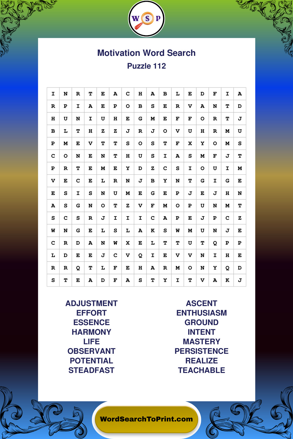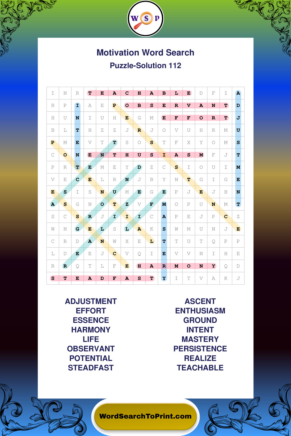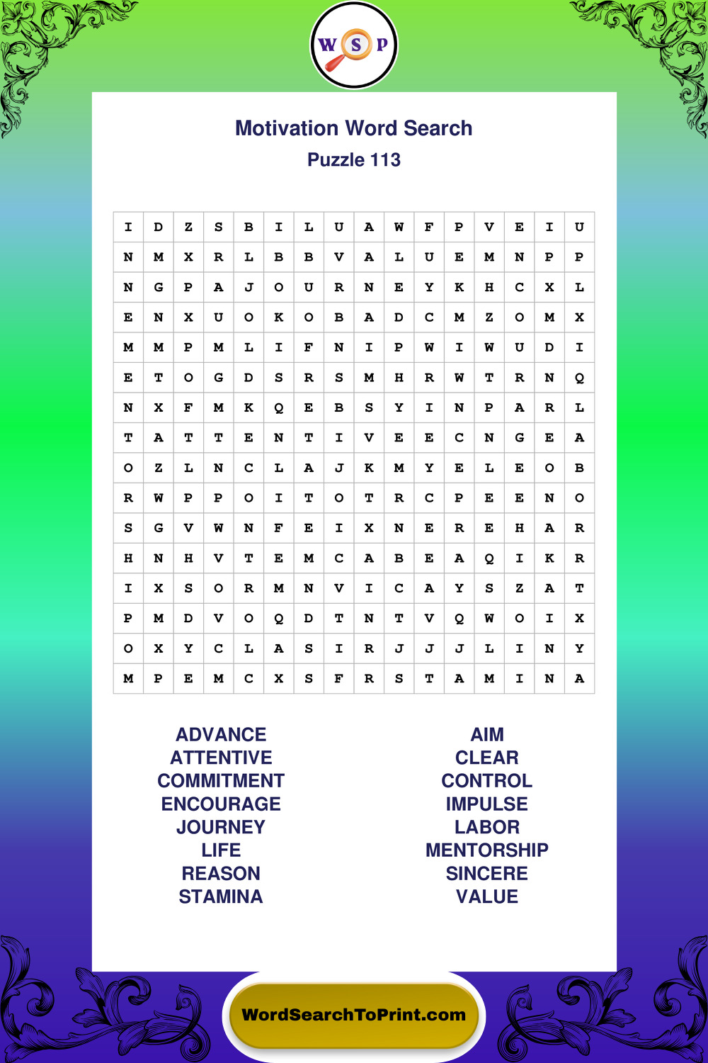 These puzzles focus on motivation, goal setting, life lessons, inspiration, and personal development concepts. They offer a structured and engaging way to explore this topic while strengthening concentration and vocabulary recognition. You may also enjoy our Inspiration word search puzzles and Wisdom word search puzzles.