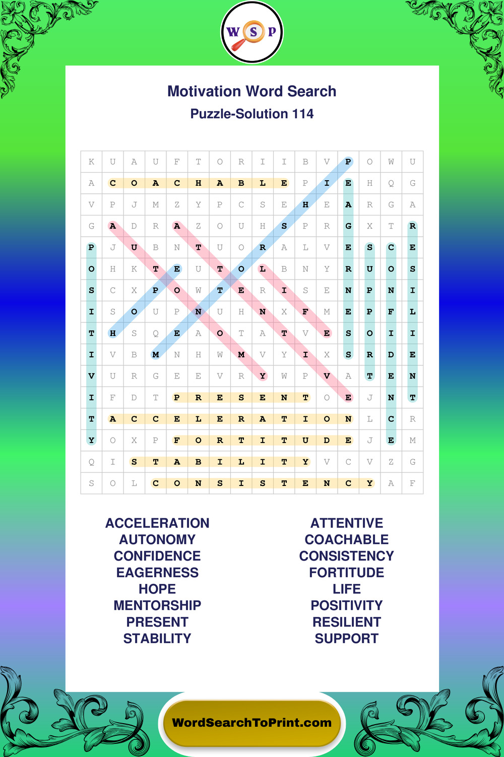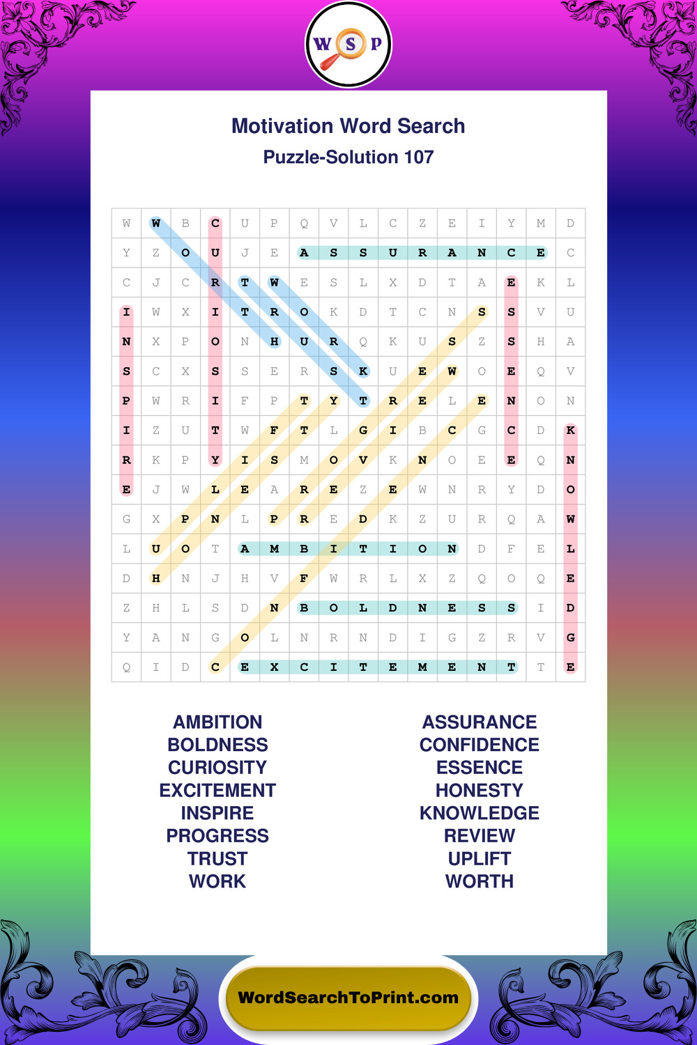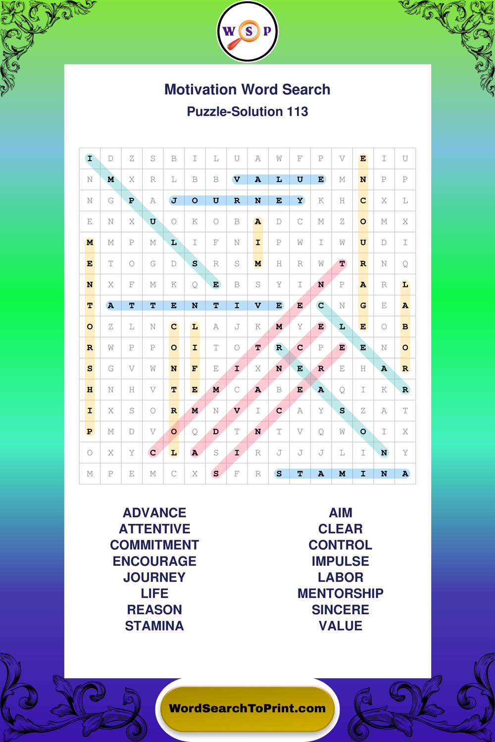 These puzzles focus on motivation, goal setting, life lessons, inspiration, and personal development concepts. They offer a structured and engaging way to explore this topic while strengthening concentration and vocabulary recognition. You may also enjoy our Inspiration word search puzzles and Wisdom word search puzzles.