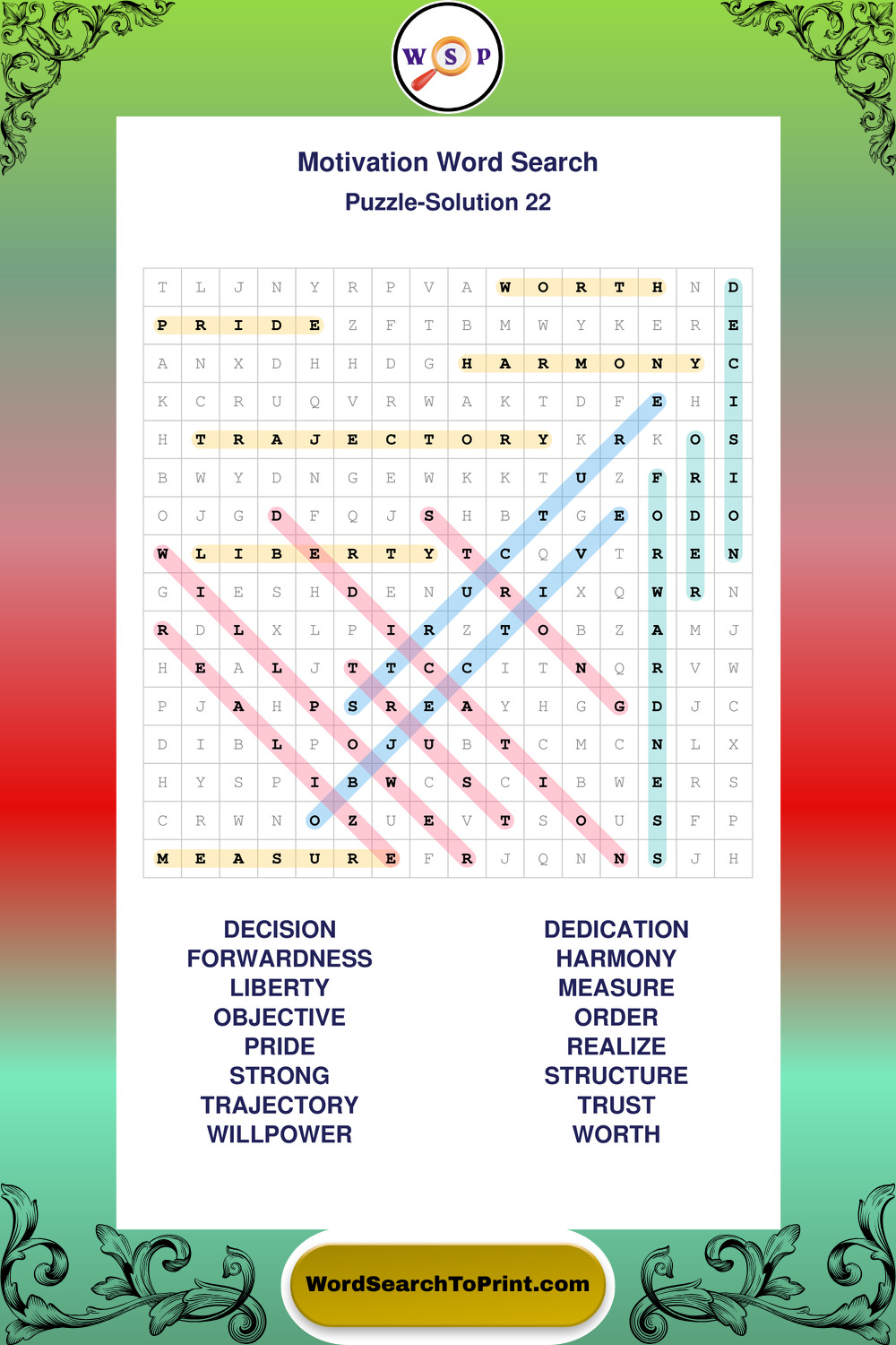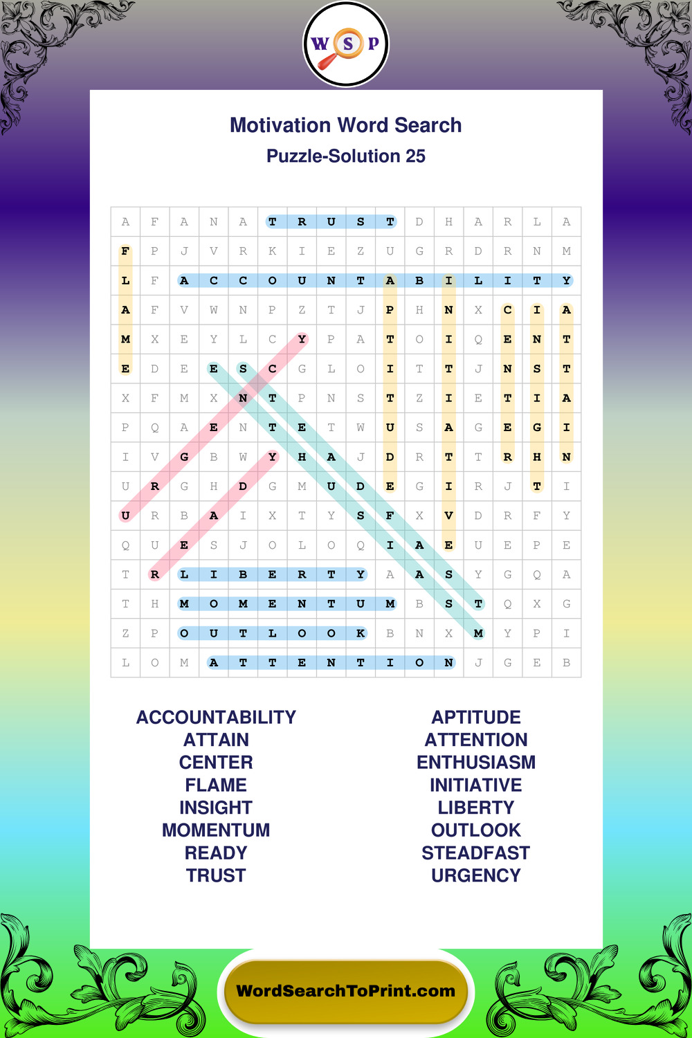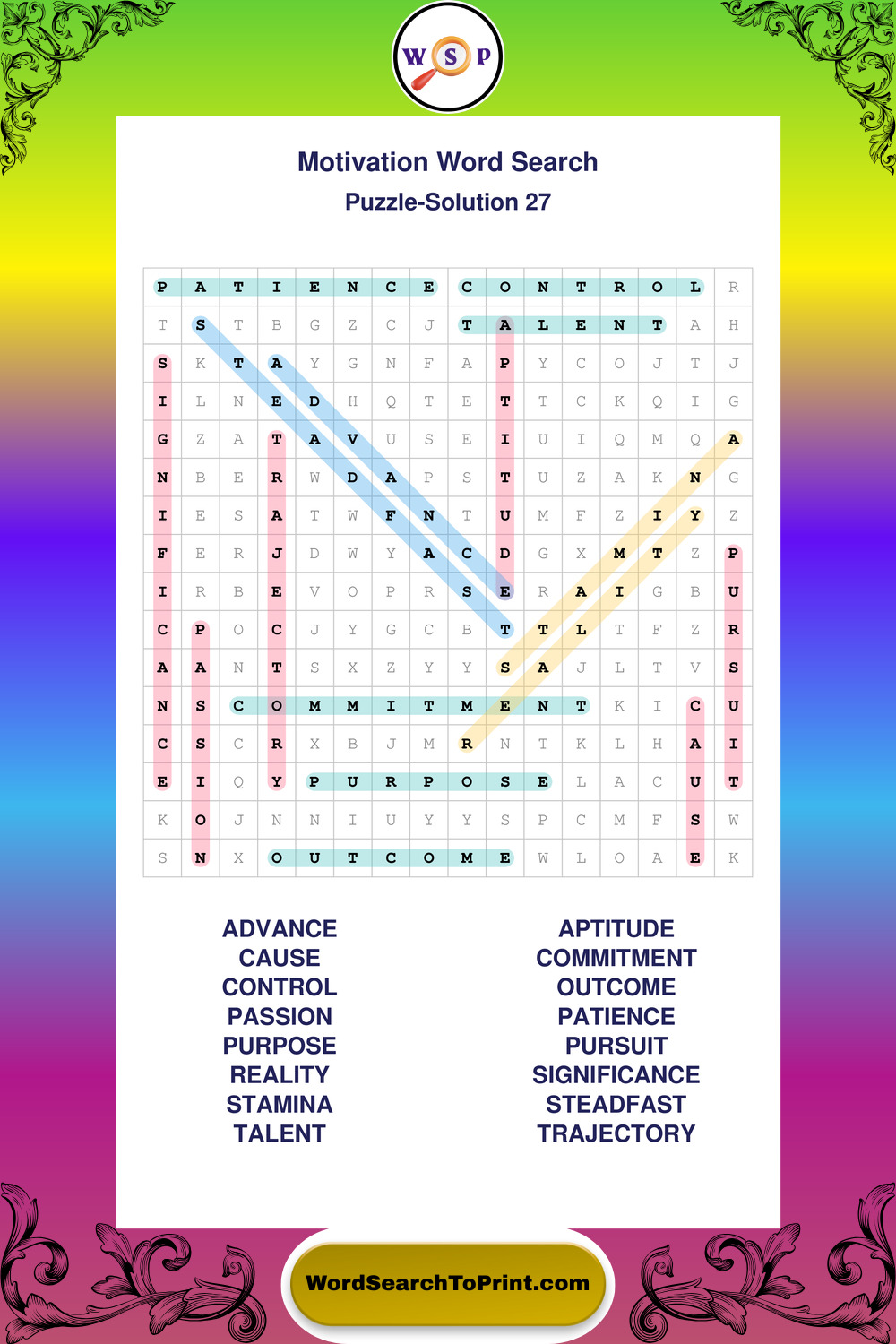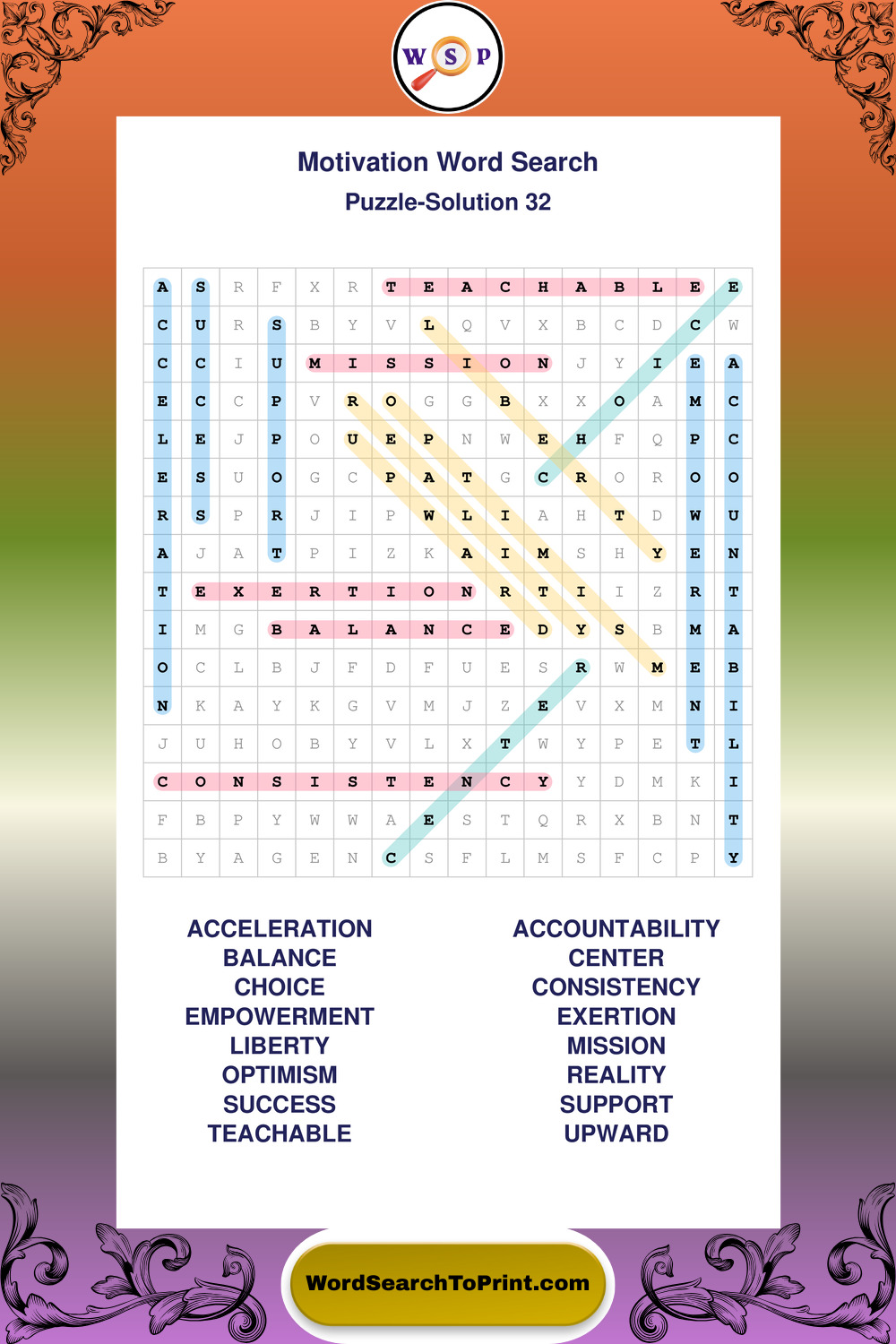 These puzzles focus on motivation, goal setting, life lessons, inspiration, and personal development concepts. They offer a structured and engaging way to explore this topic while strengthening concentration and vocabulary recognition. You may also enjoy our Inspiration word search puzzles and Wisdom word search puzzles.