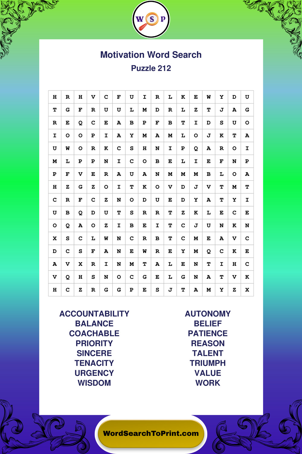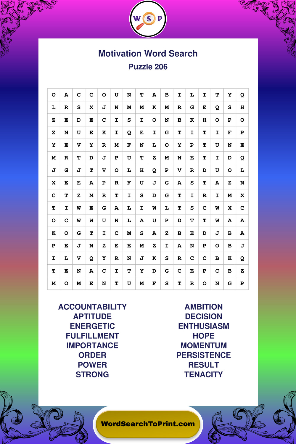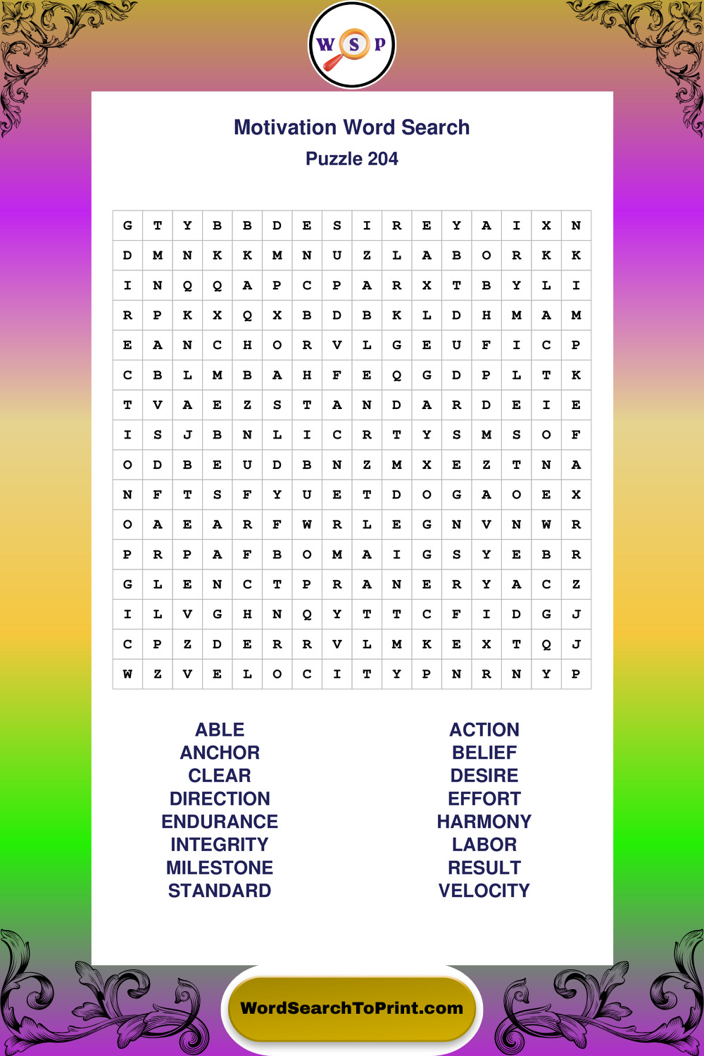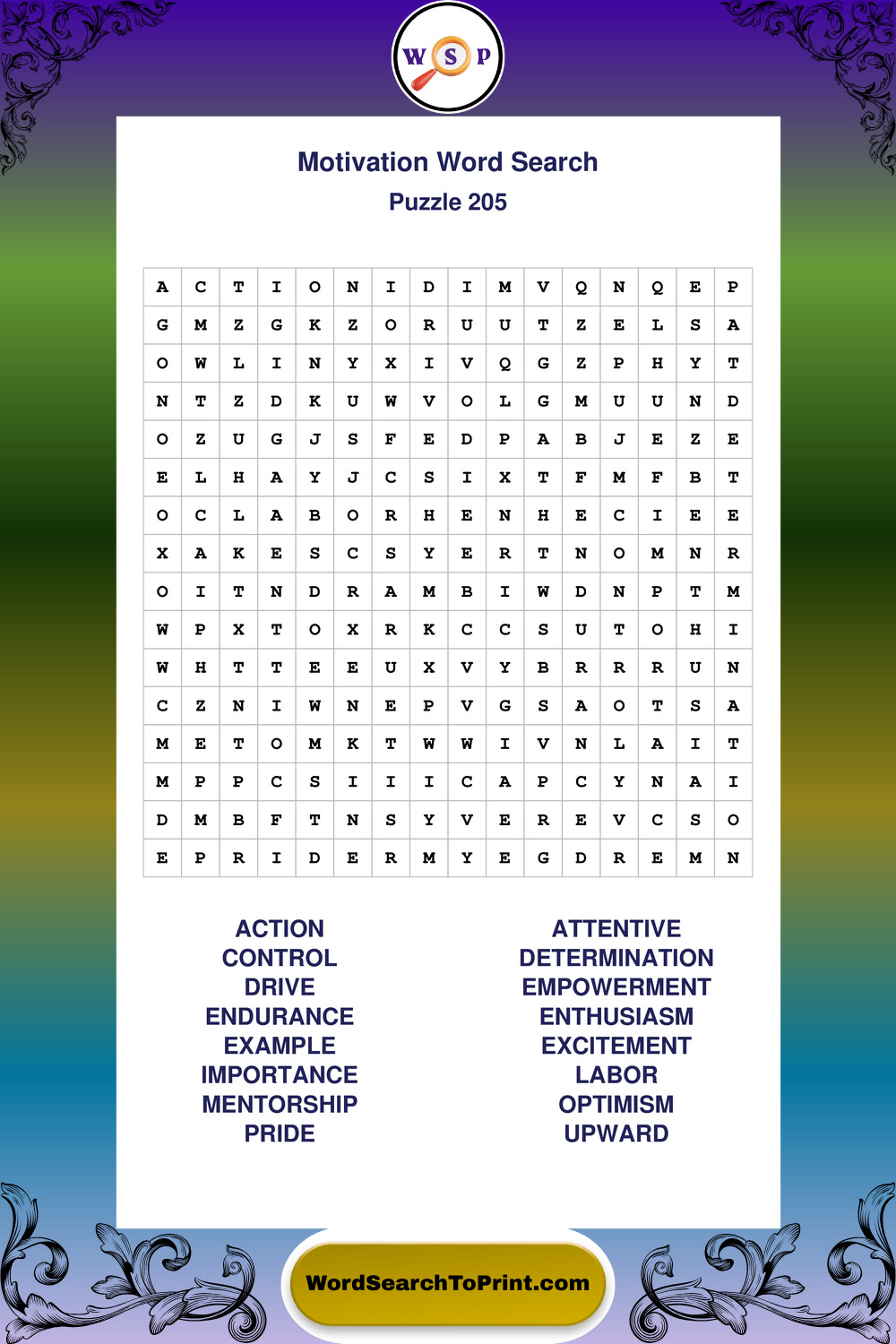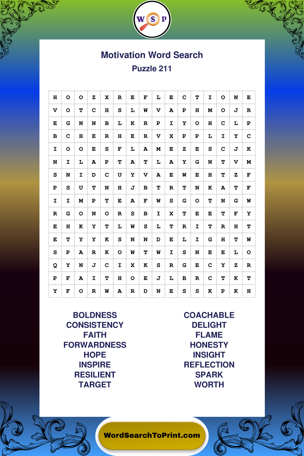 These puzzles focus on motivation, goal setting, life lessons, inspiration, and personal development concepts. They offer a structured and engaging way to explore this topic while strengthening concentration and vocabulary recognition. You may also enjoy our Inspiration word search puzzles and Wisdom word search puzzles.