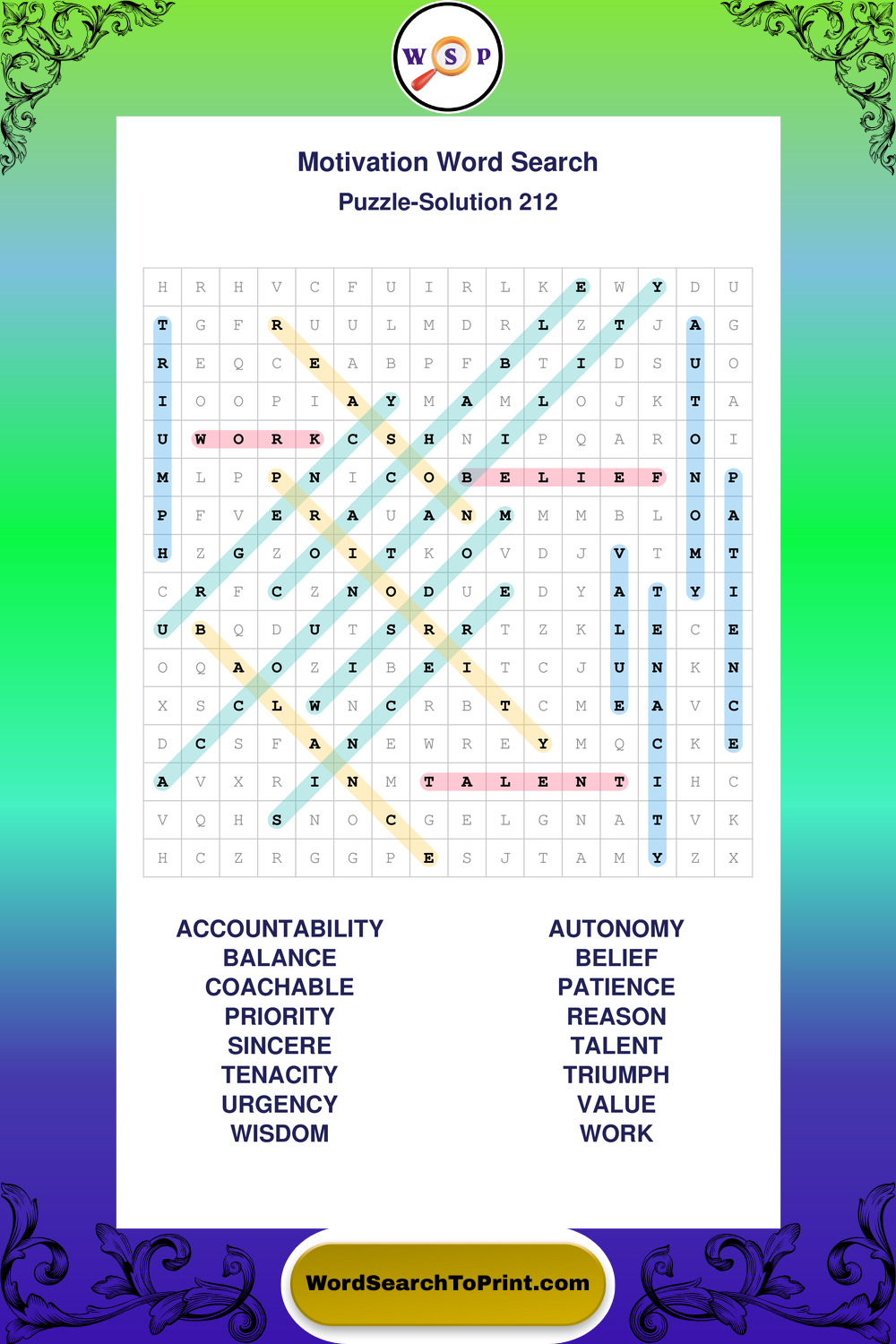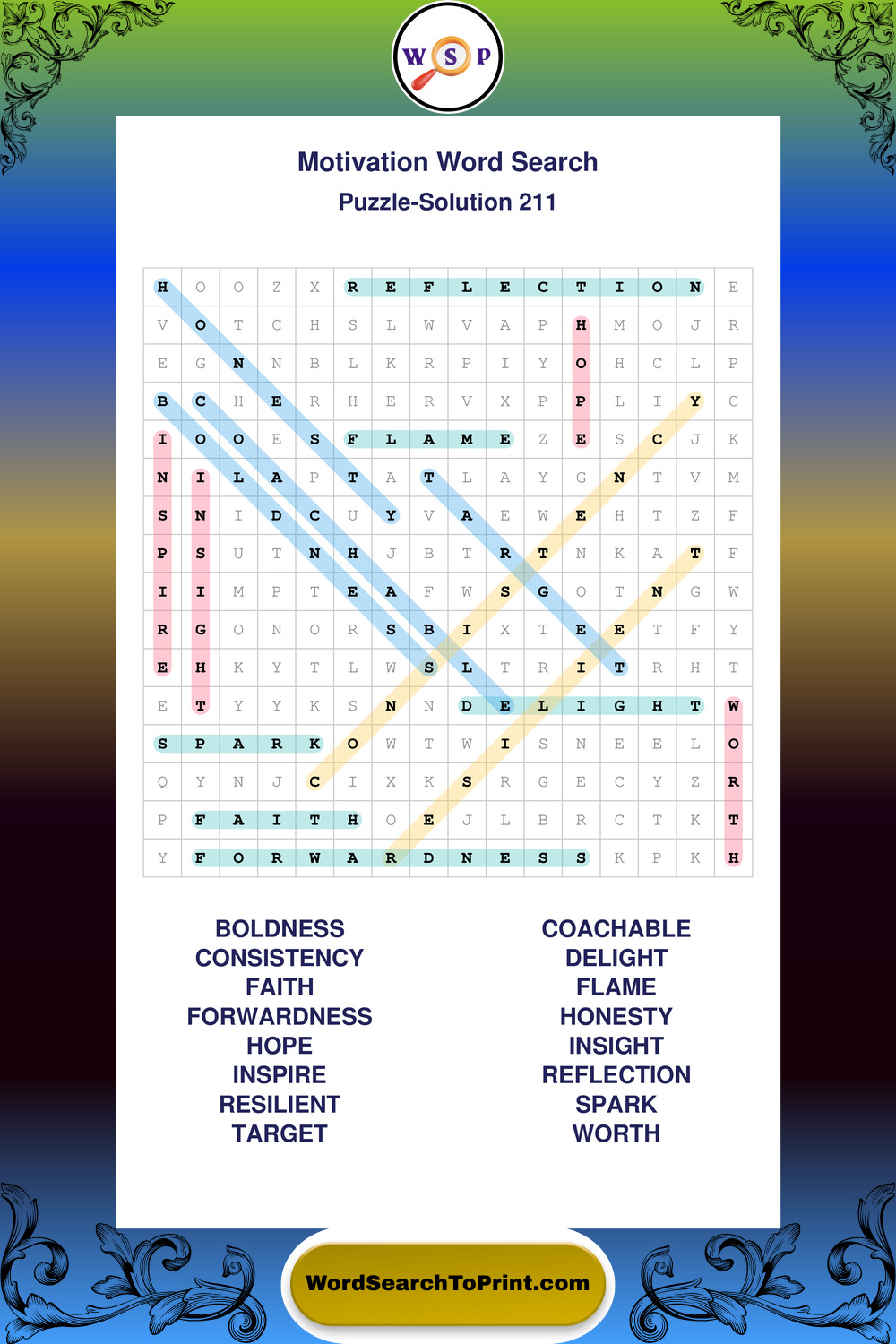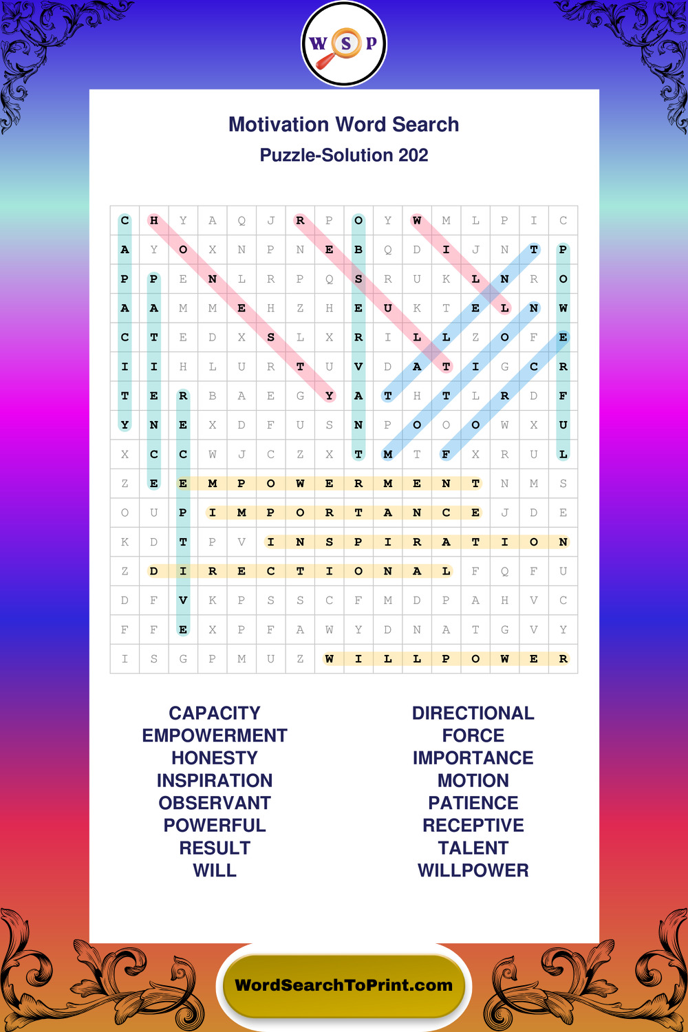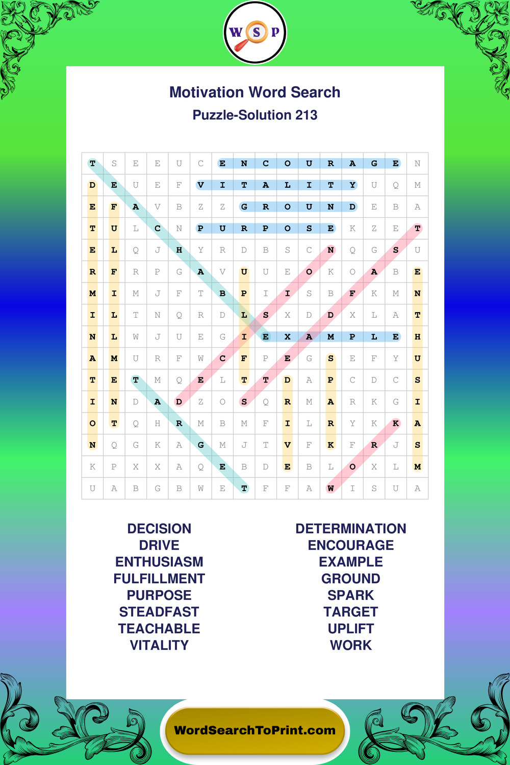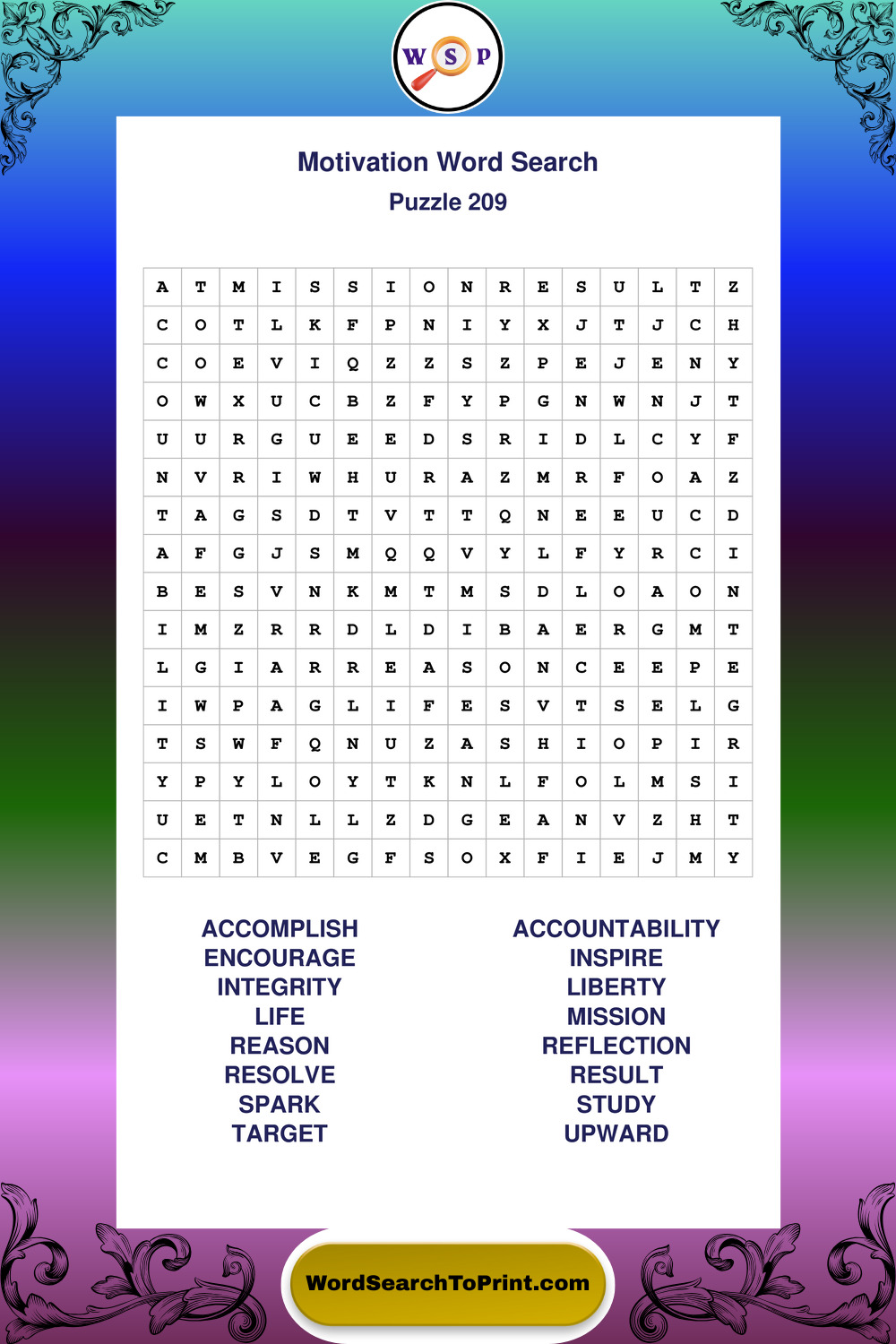 These puzzles focus on motivation, goal setting, life lessons, inspiration, and personal development concepts. They offer a structured and engaging way to explore this topic while strengthening concentration and vocabulary recognition. You may also enjoy our Inspiration word search puzzles and Wisdom word search puzzles.