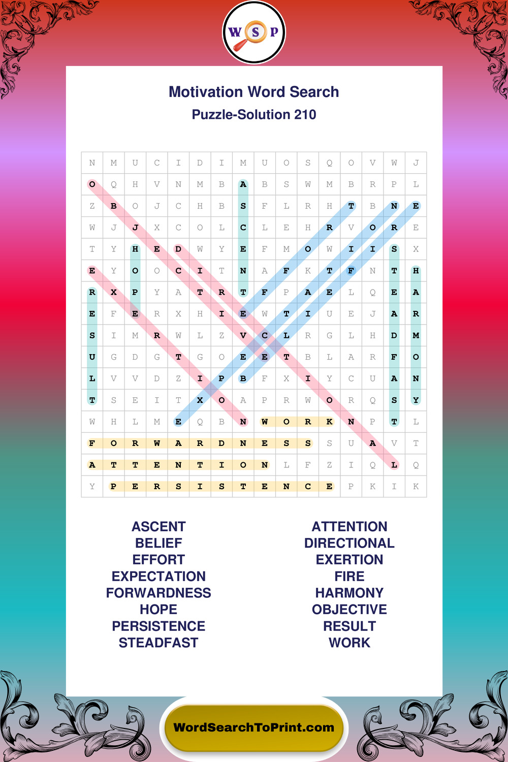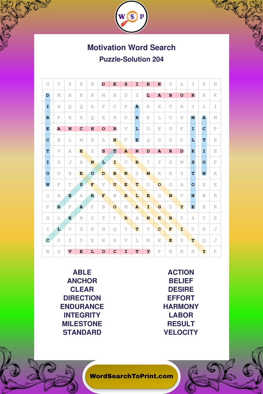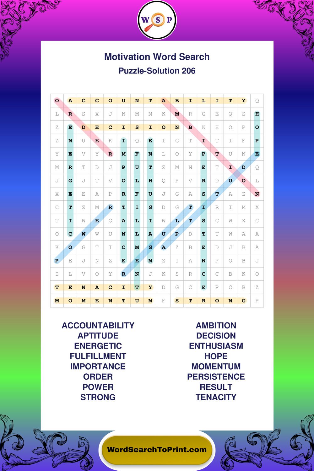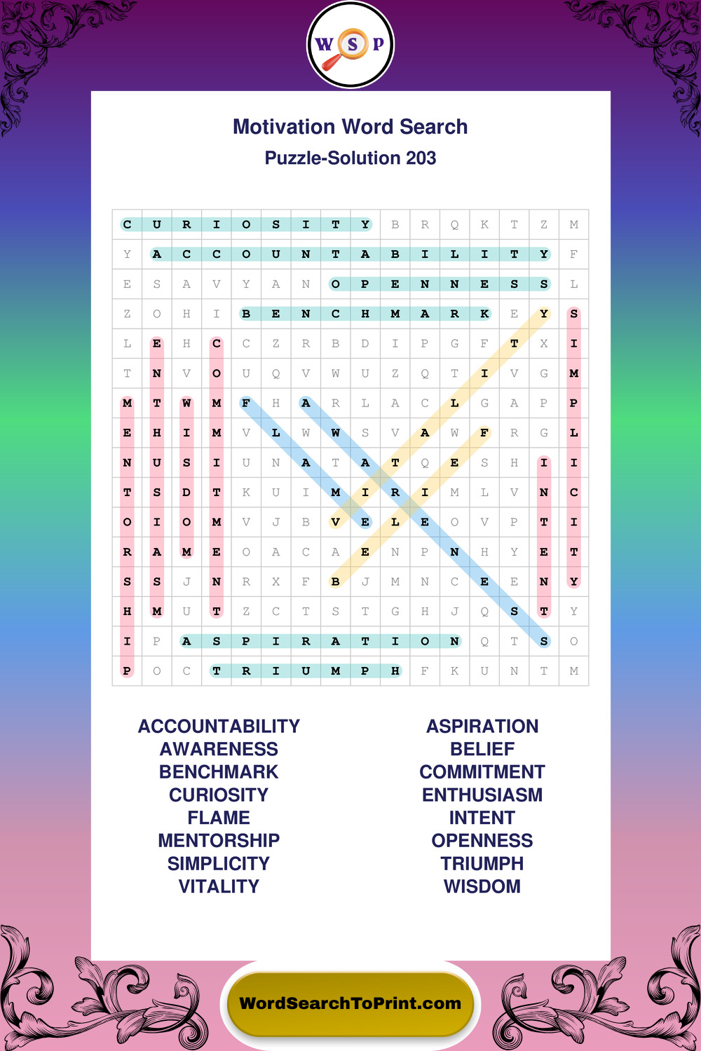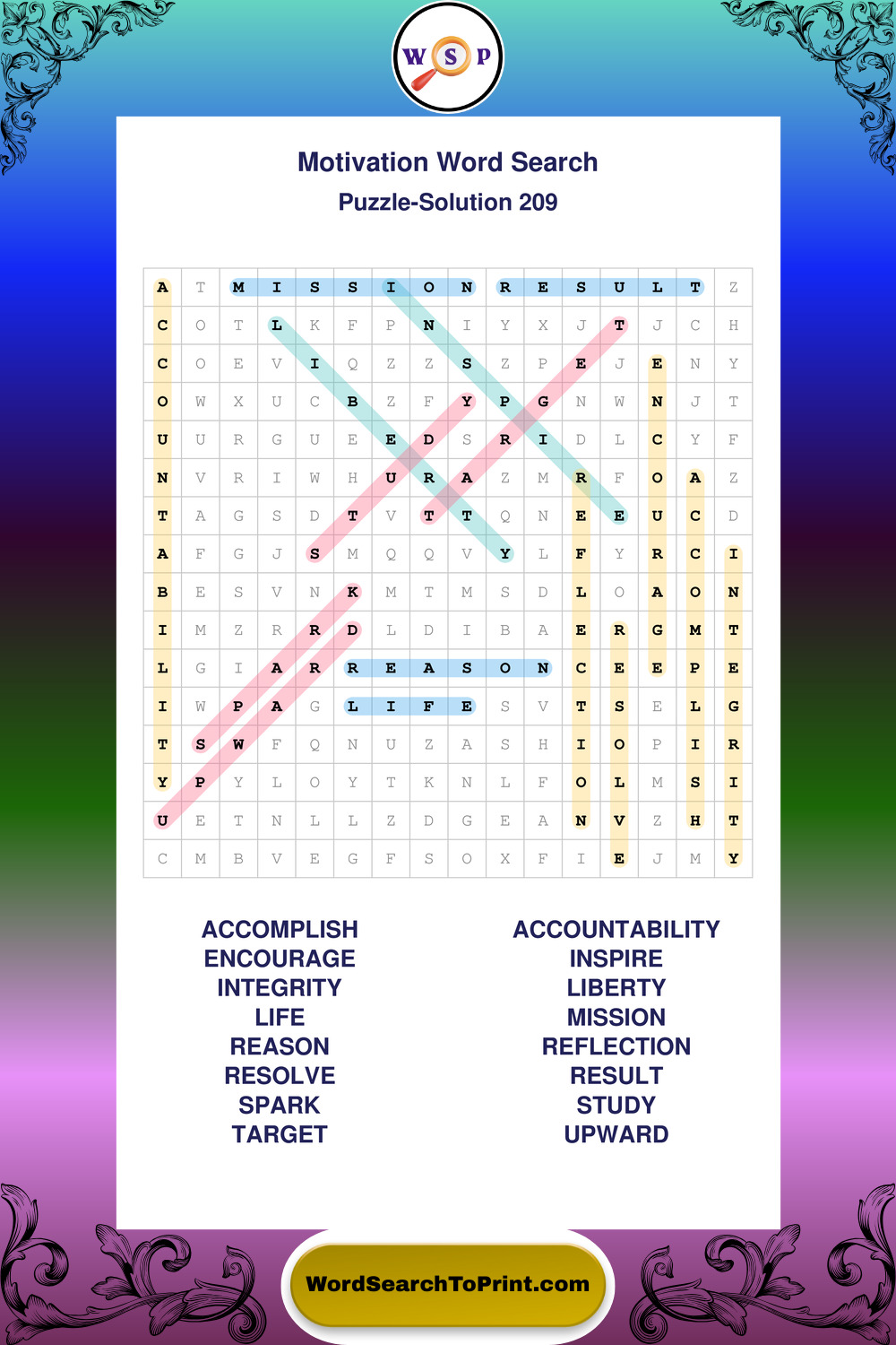 These puzzles focus on motivation, goal setting, life lessons, inspiration, and personal development concepts. They offer a structured and engaging way to explore this topic while strengthening concentration and vocabulary recognition. You may also enjoy our Inspiration word search puzzles and Wisdom word search puzzles.