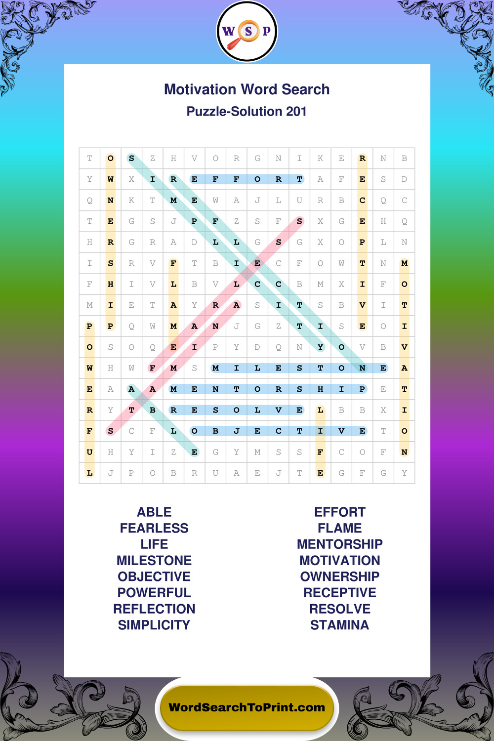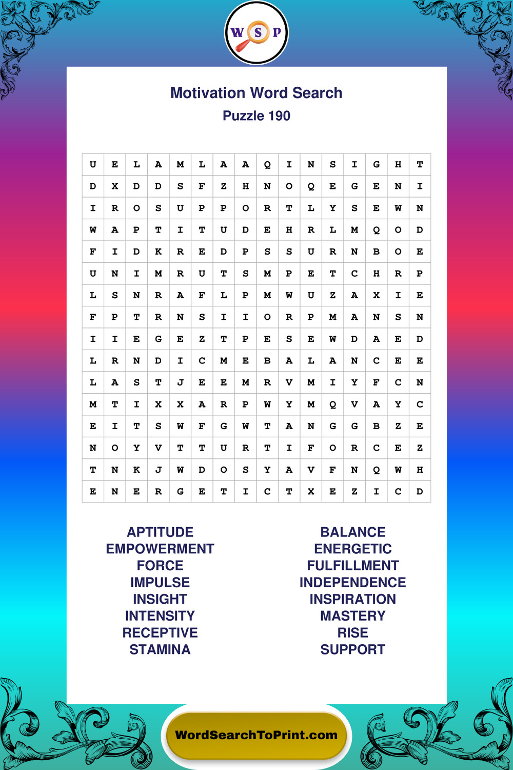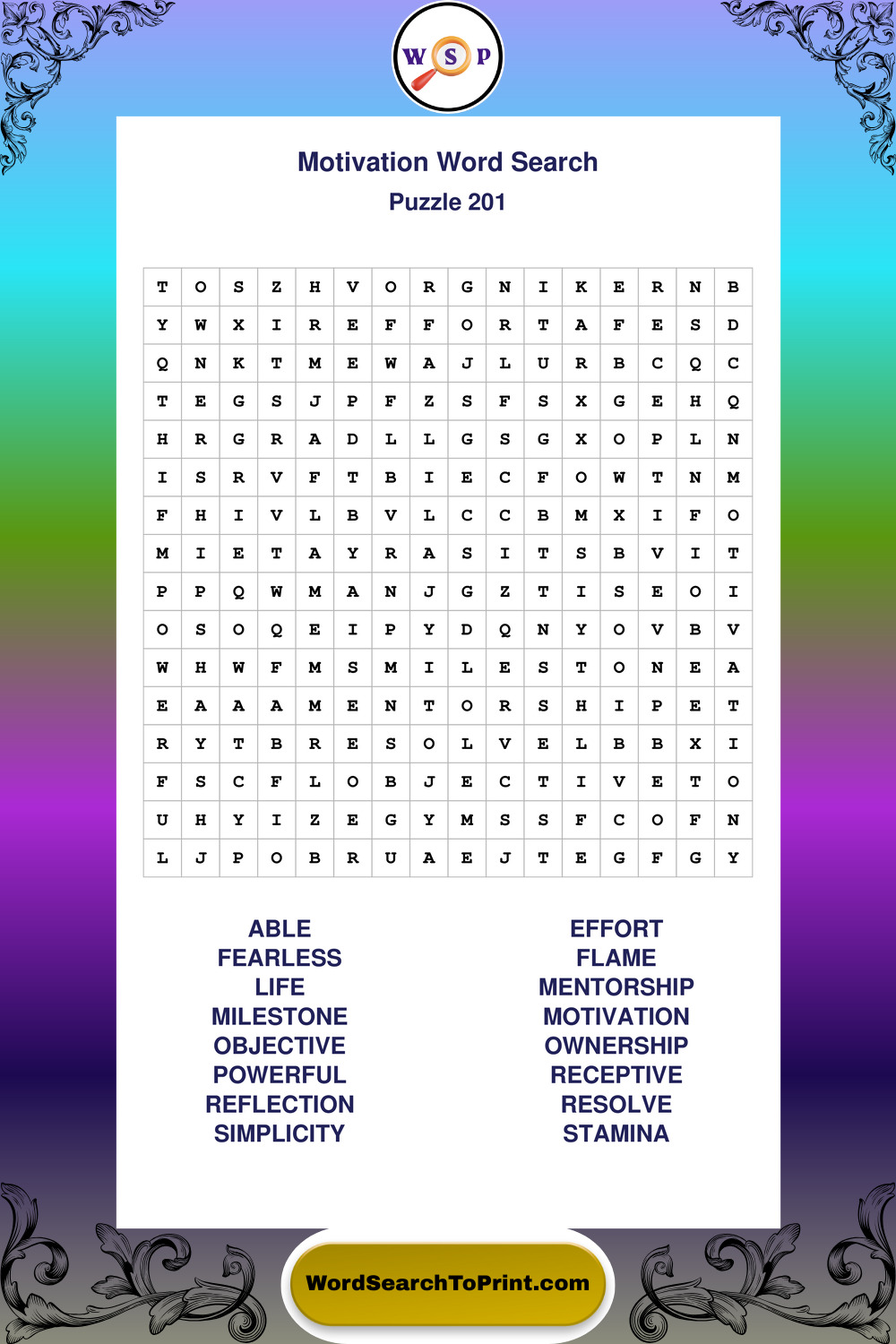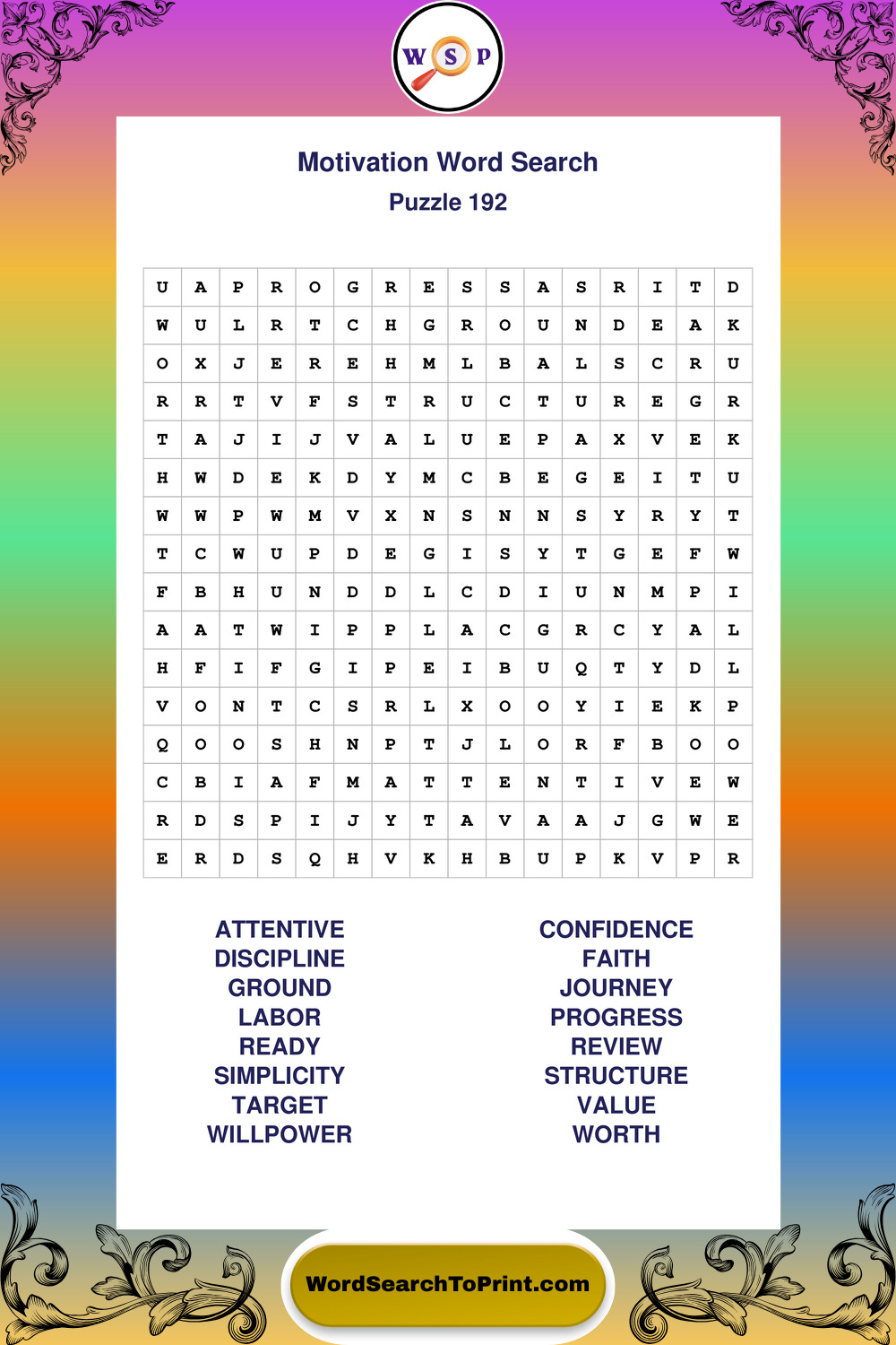 Printable Motivation Wordsearch Puzzles