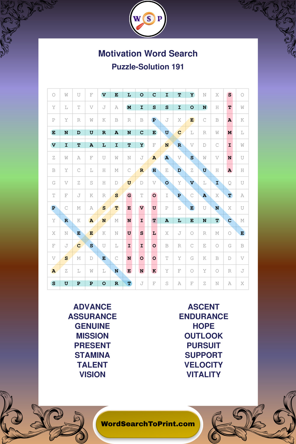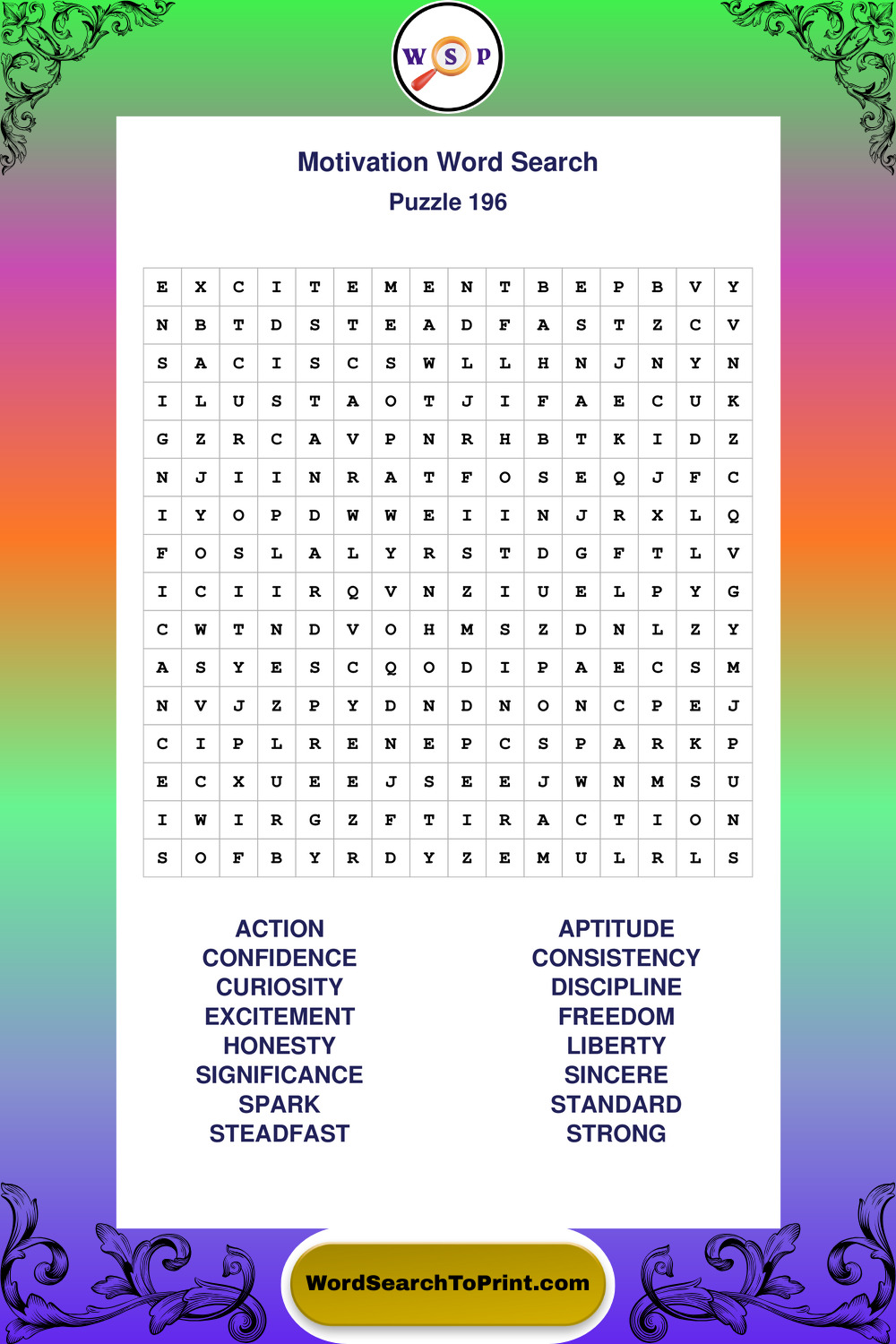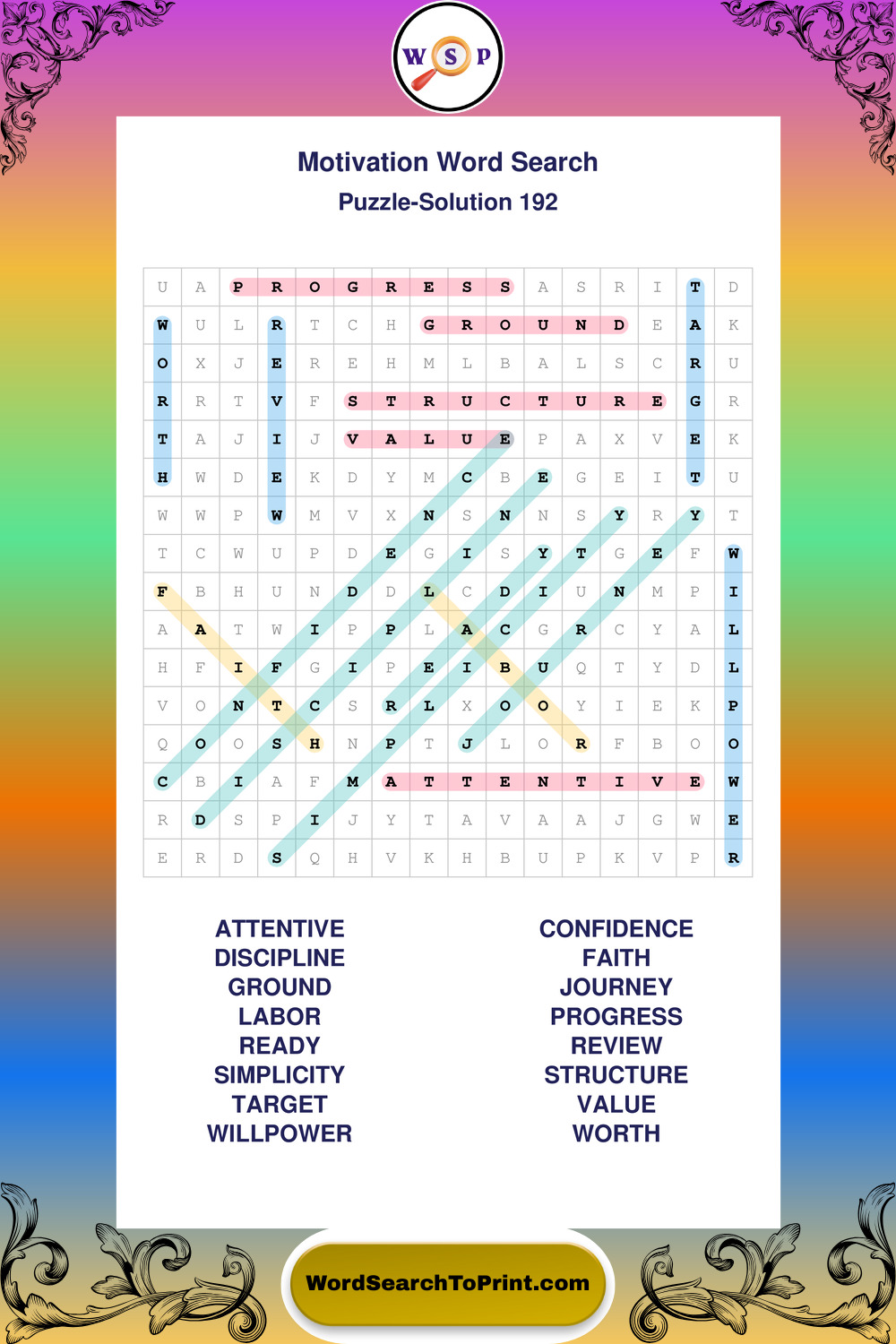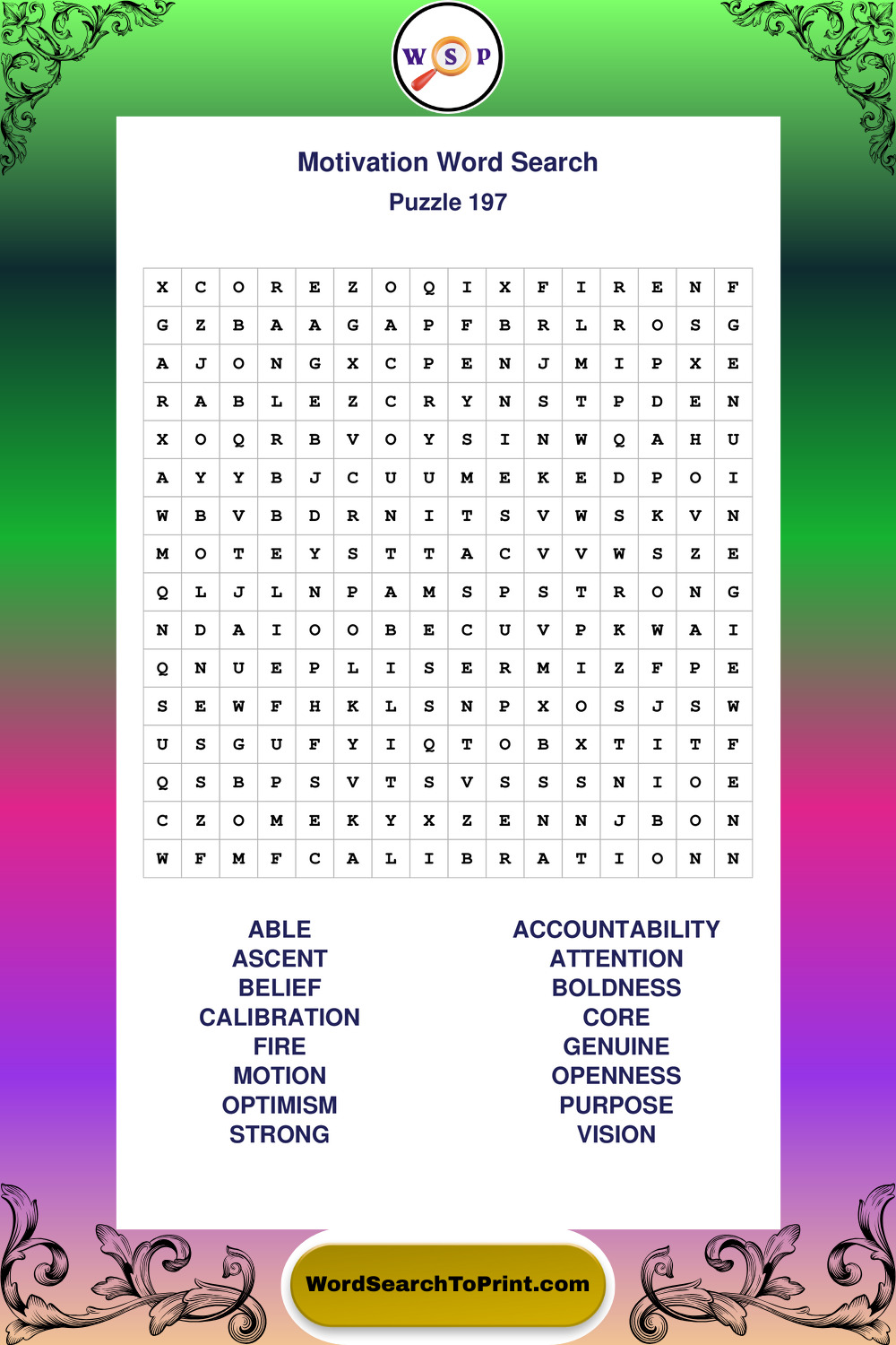 Printable Motivation Wordsearch Puzzles
