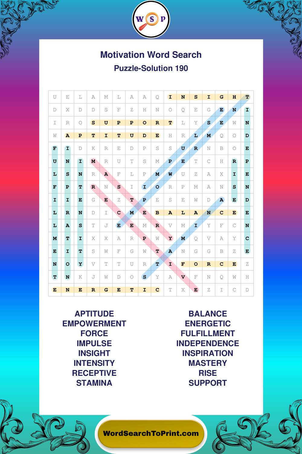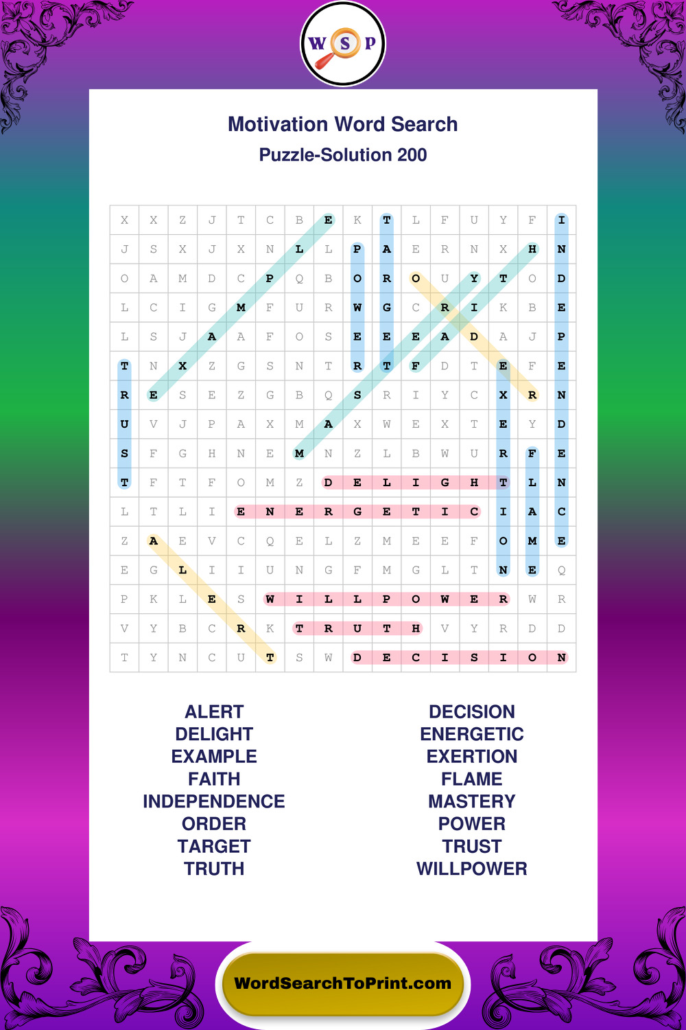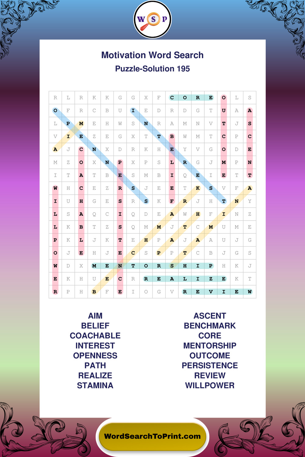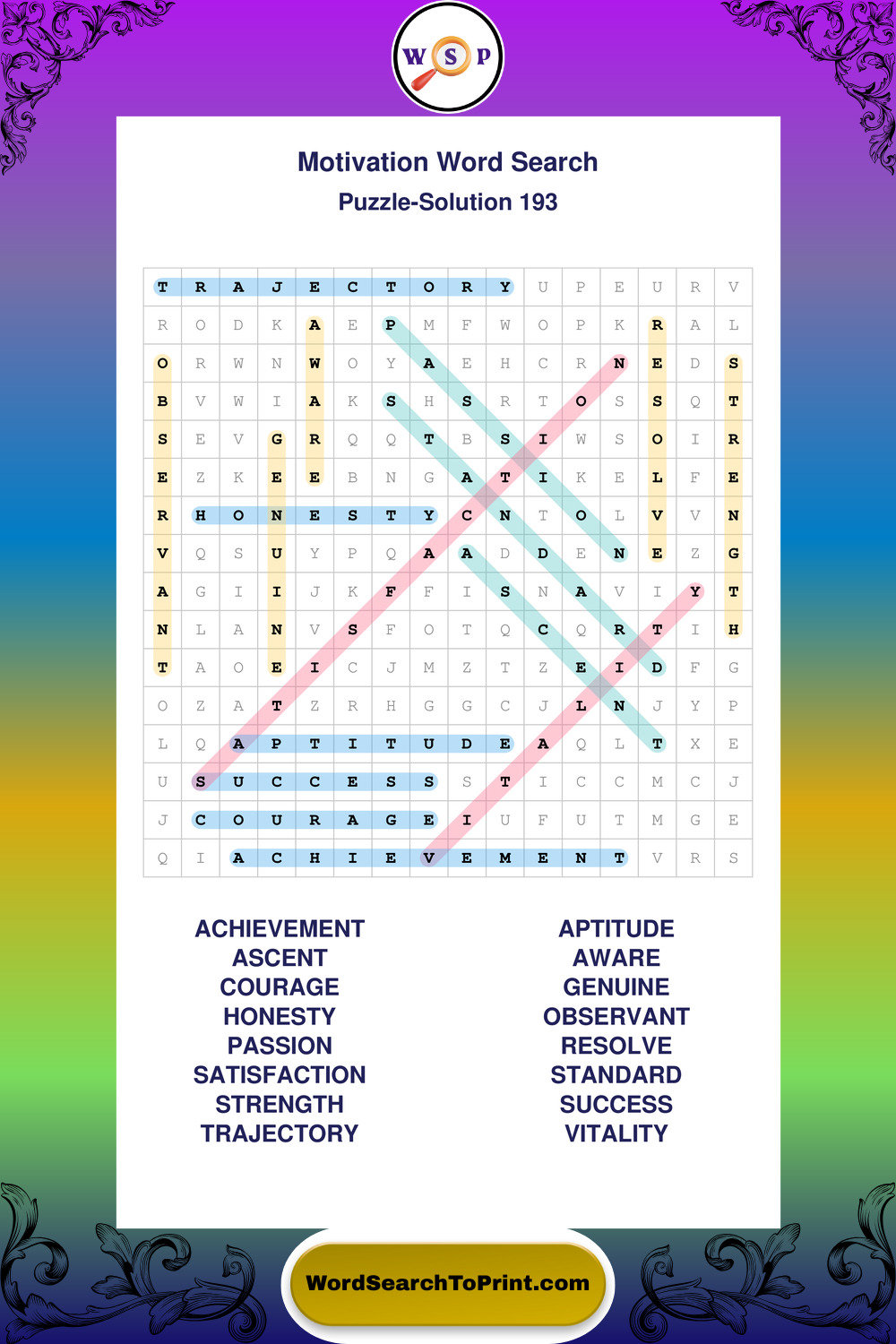 These puzzles focus on motivation, goal setting, life lessons, inspiration, and personal development concepts. They offer a structured and engaging way to explore this topic while strengthening concentration and vocabulary recognition. You may also enjoy our Inspiration word search puzzles and Wisdom word search puzzles.