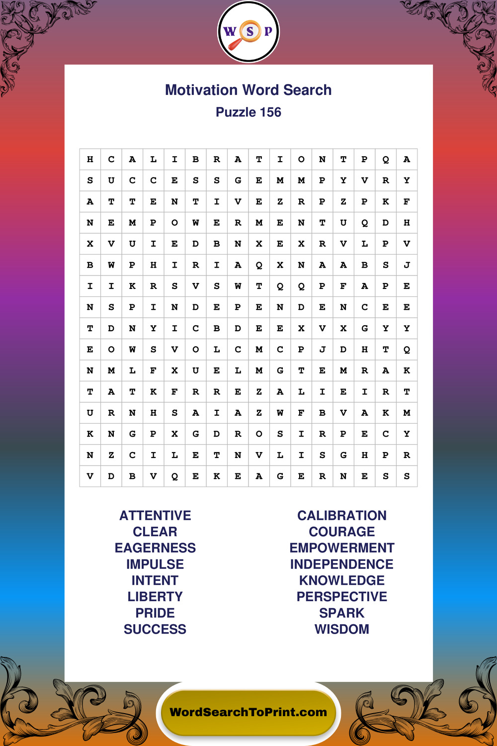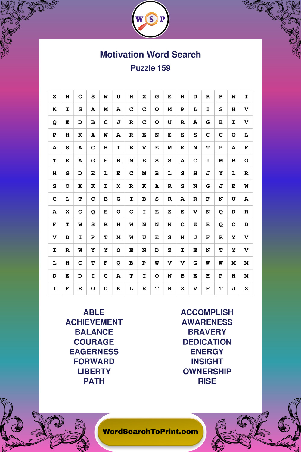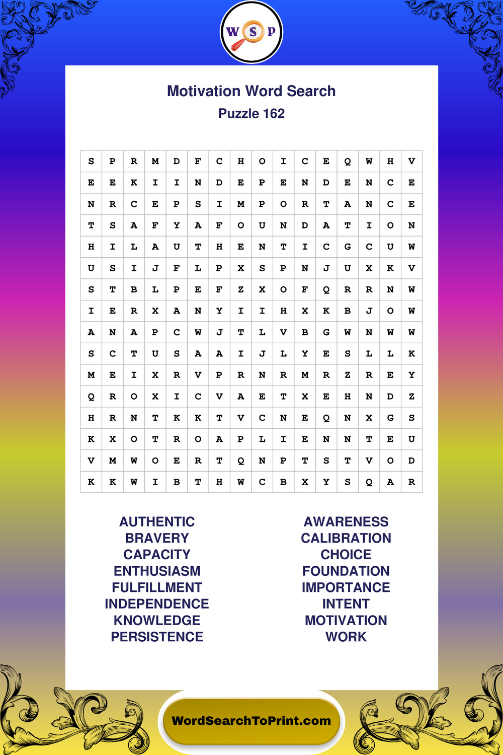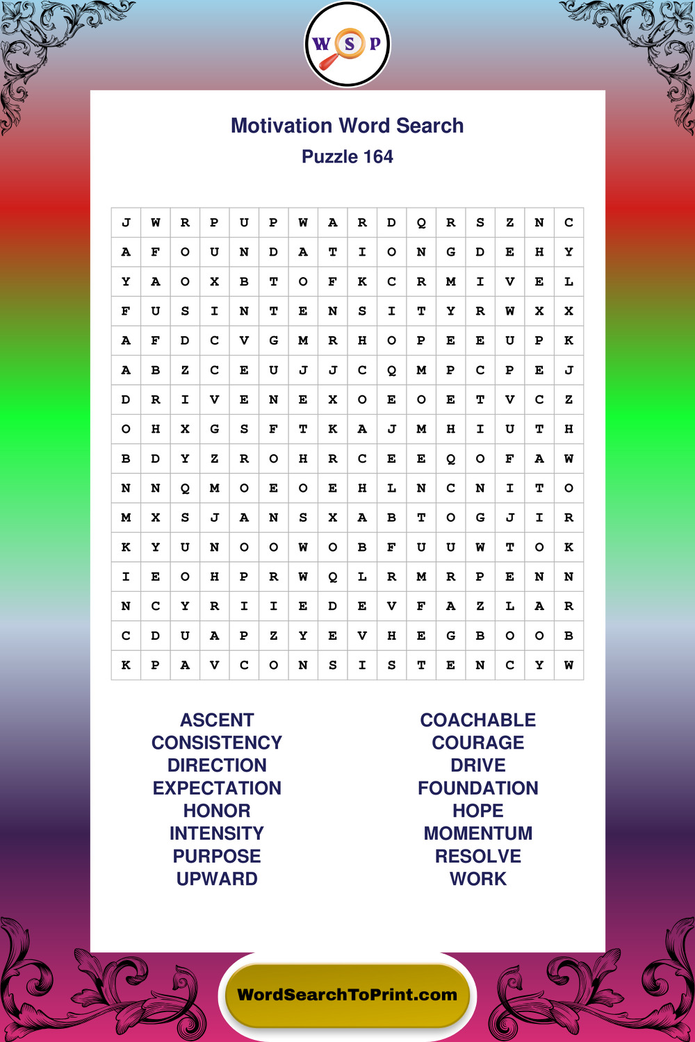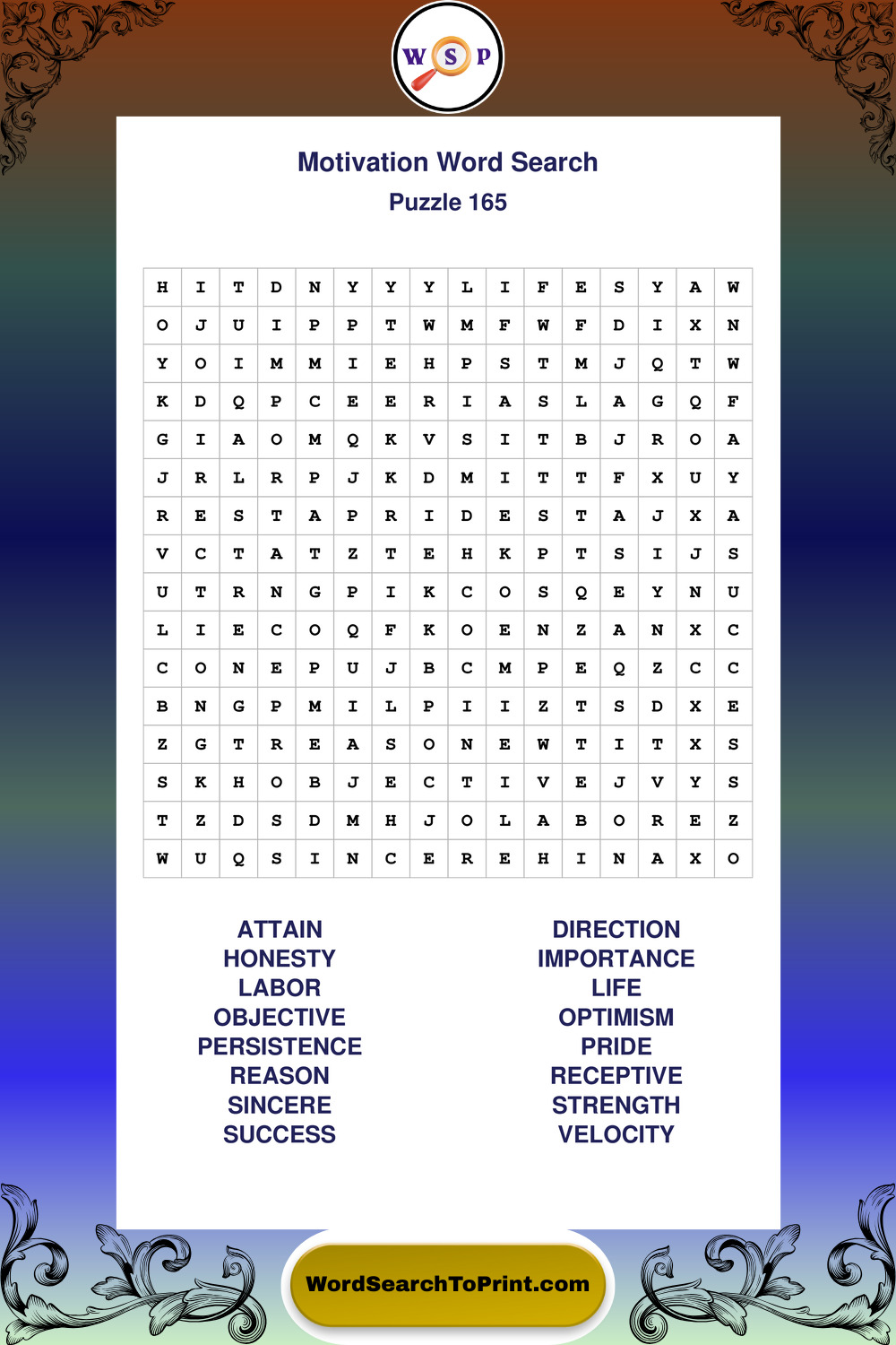 These puzzles focus on motivation, goal setting, life lessons, inspiration, and personal development concepts. They offer a structured and engaging way to explore this topic while strengthening concentration and vocabulary recognition. You may also enjoy our Inspiration word search puzzles and Wisdom word search puzzles.