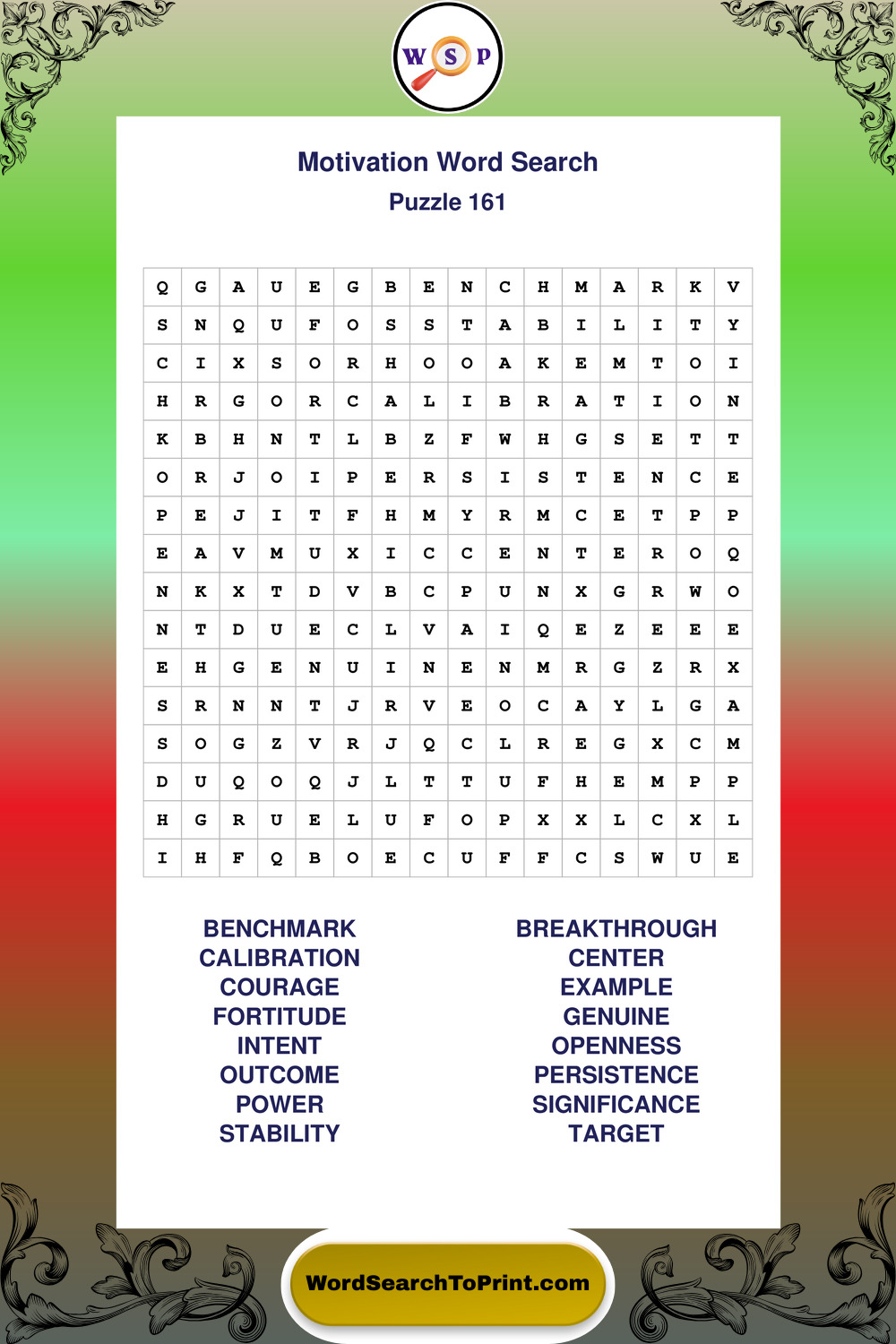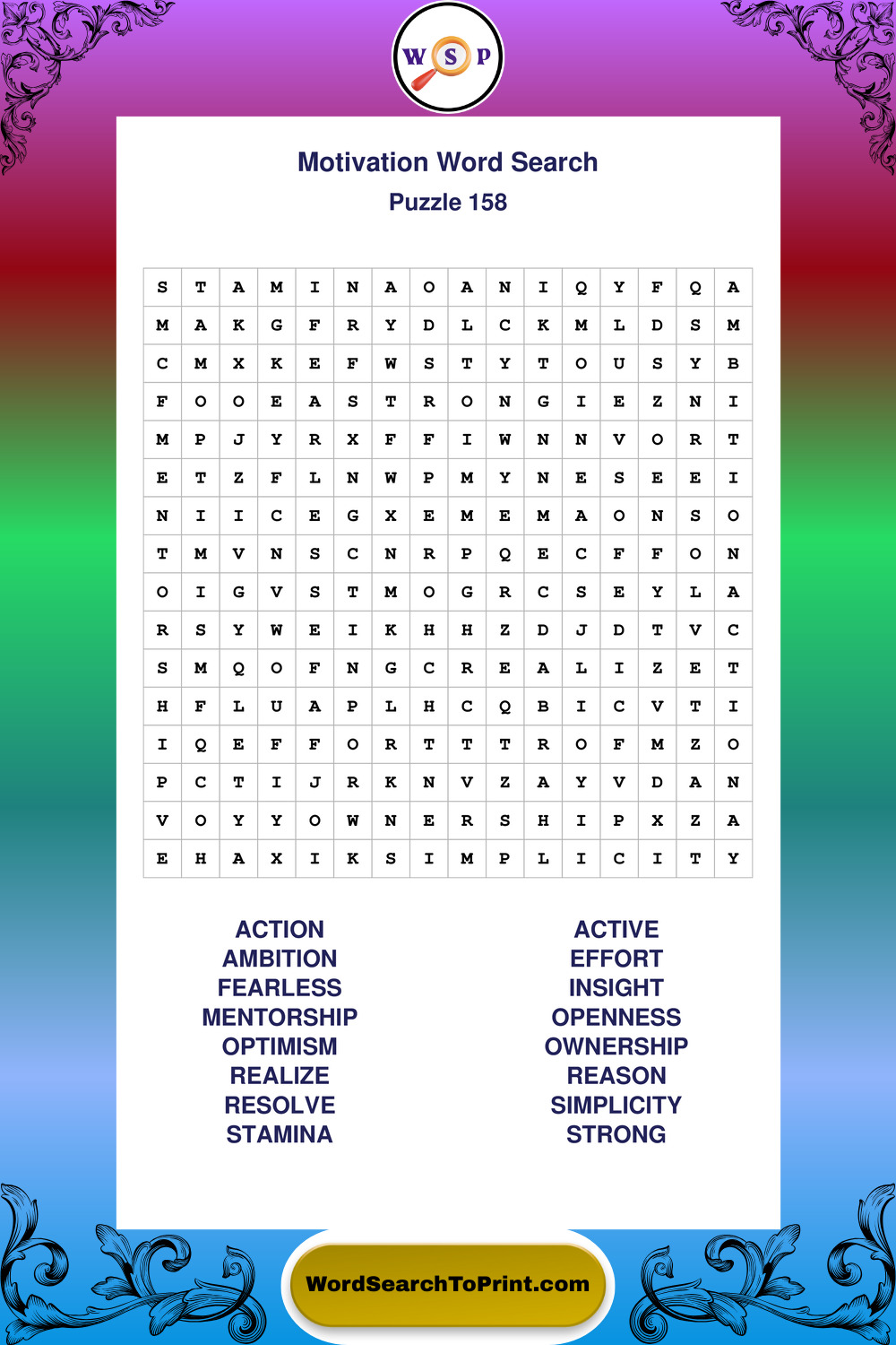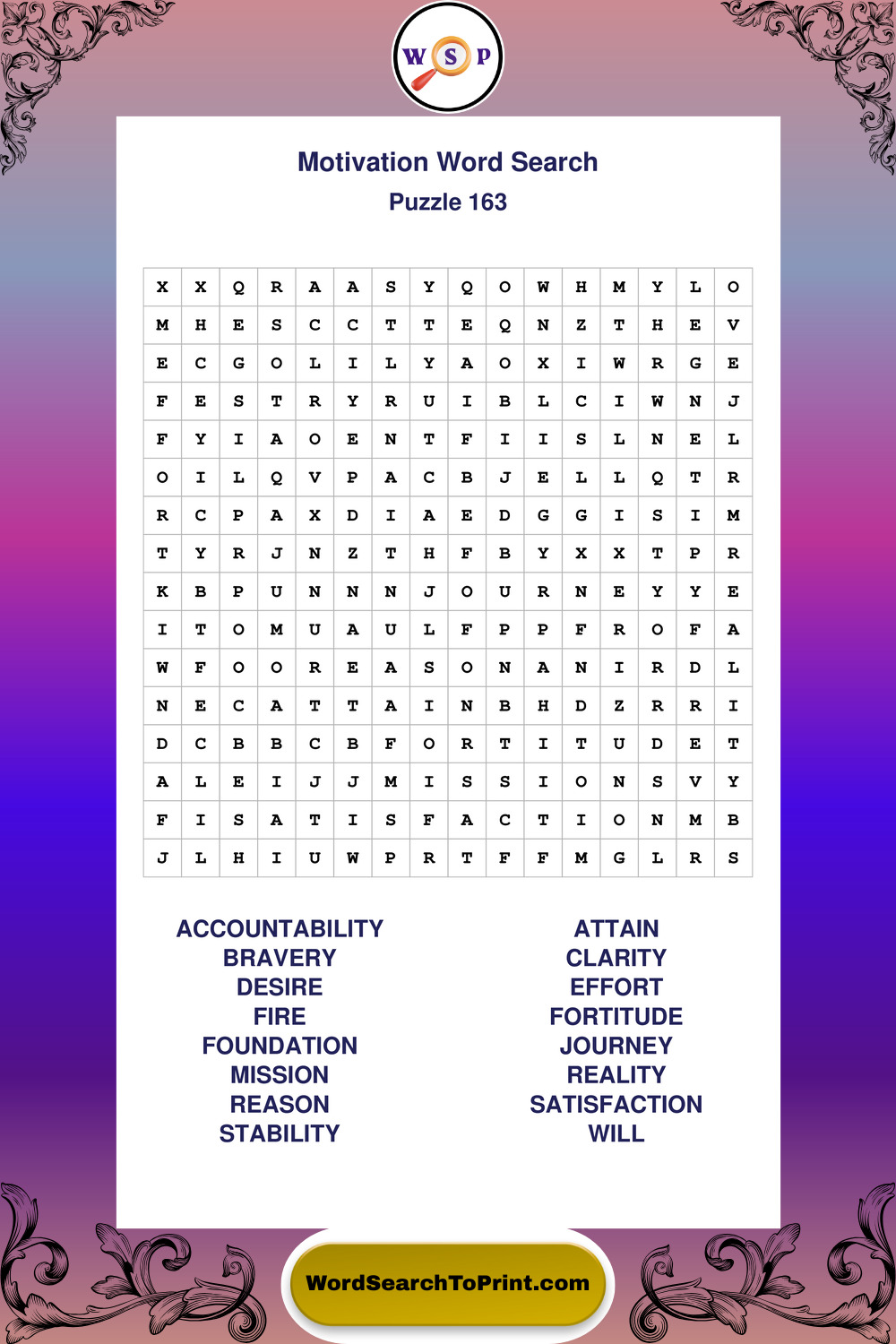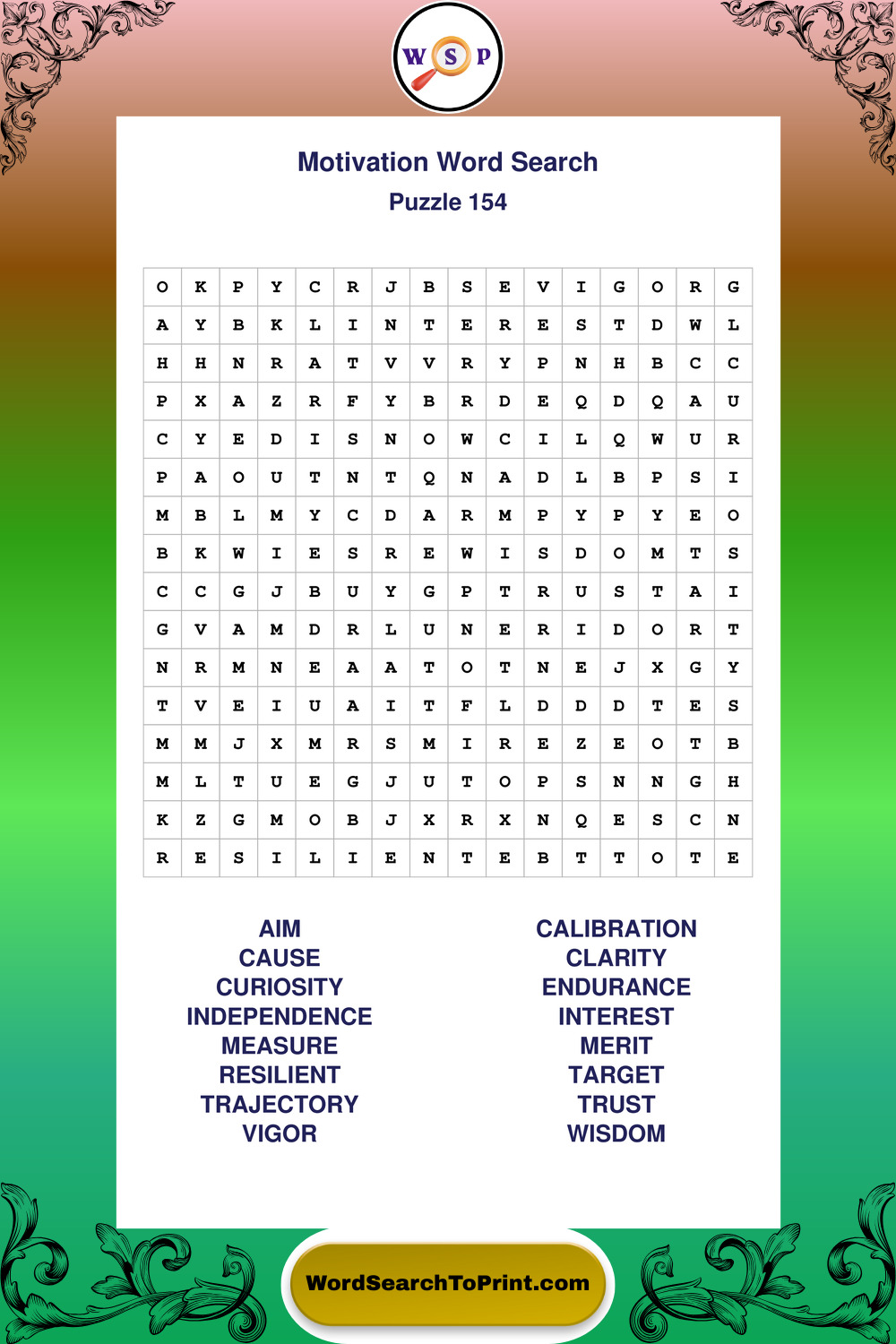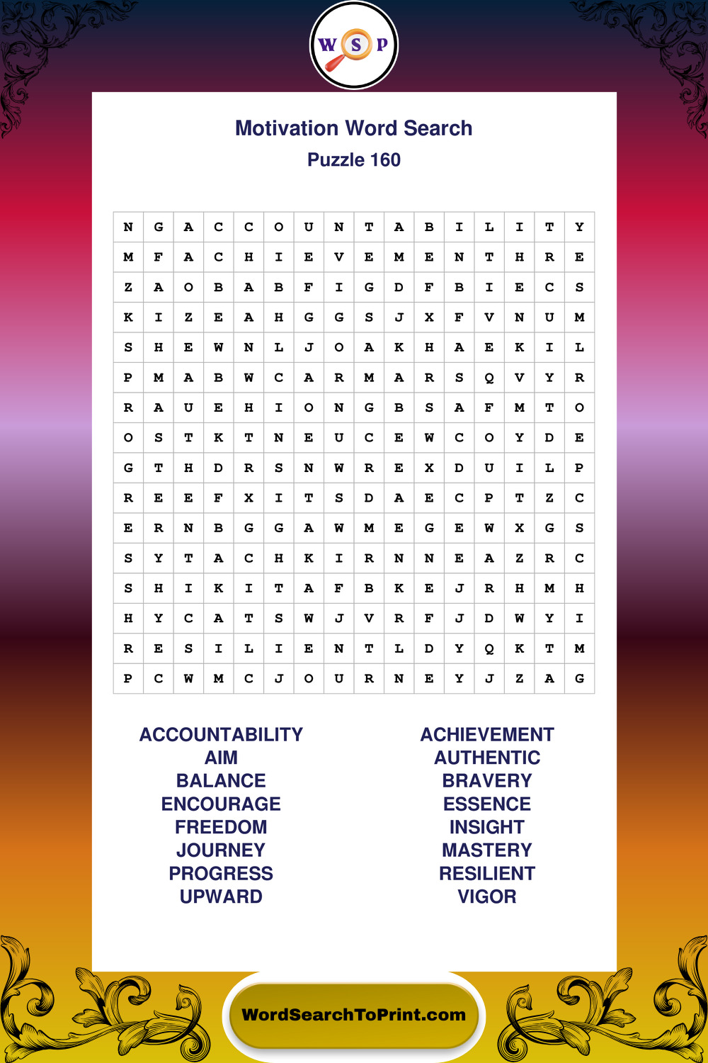 These puzzles focus on motivation, goal setting, life lessons, inspiration, and personal development concepts. They offer a structured and engaging way to explore this topic while strengthening concentration and vocabulary recognition. You may also enjoy our Inspiration word search puzzles and Wisdom word search puzzles.