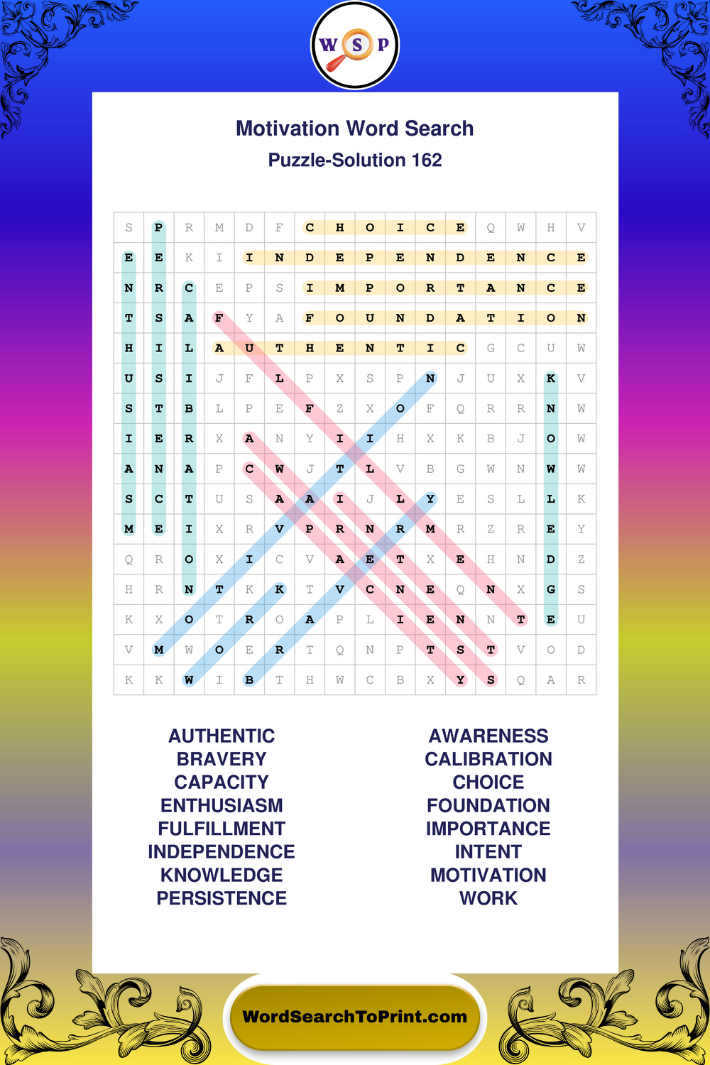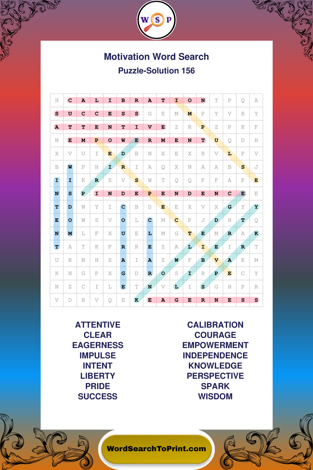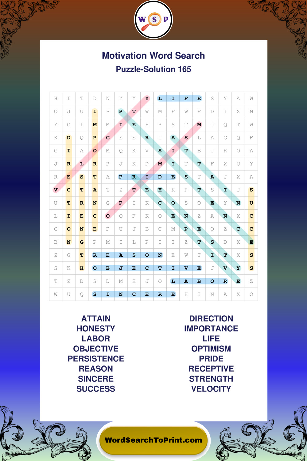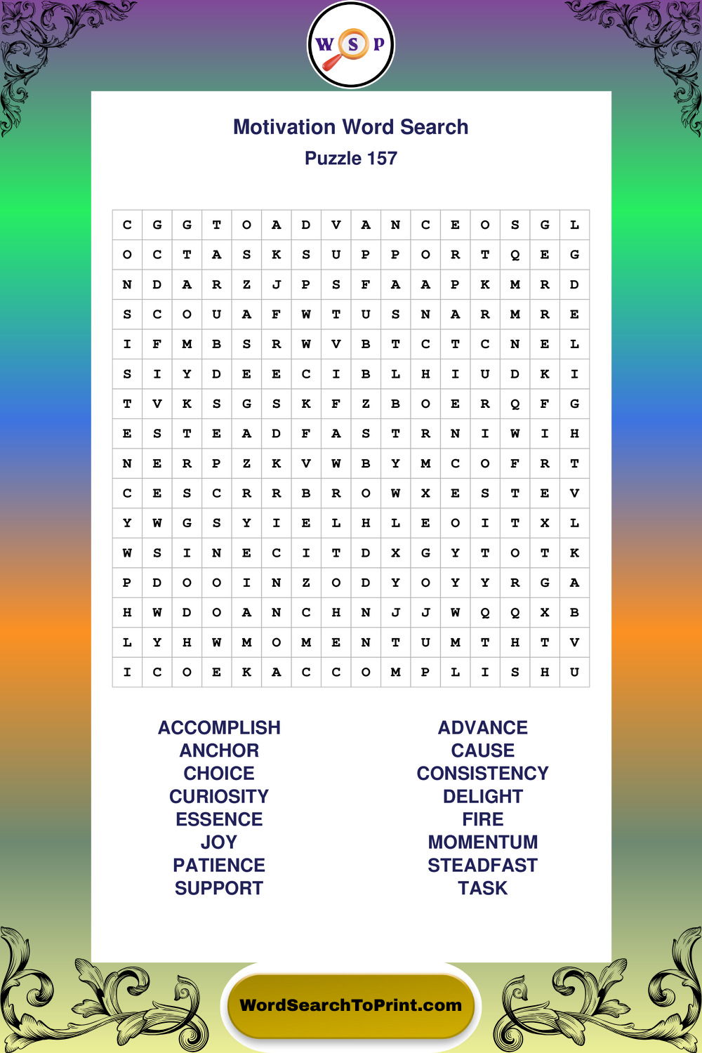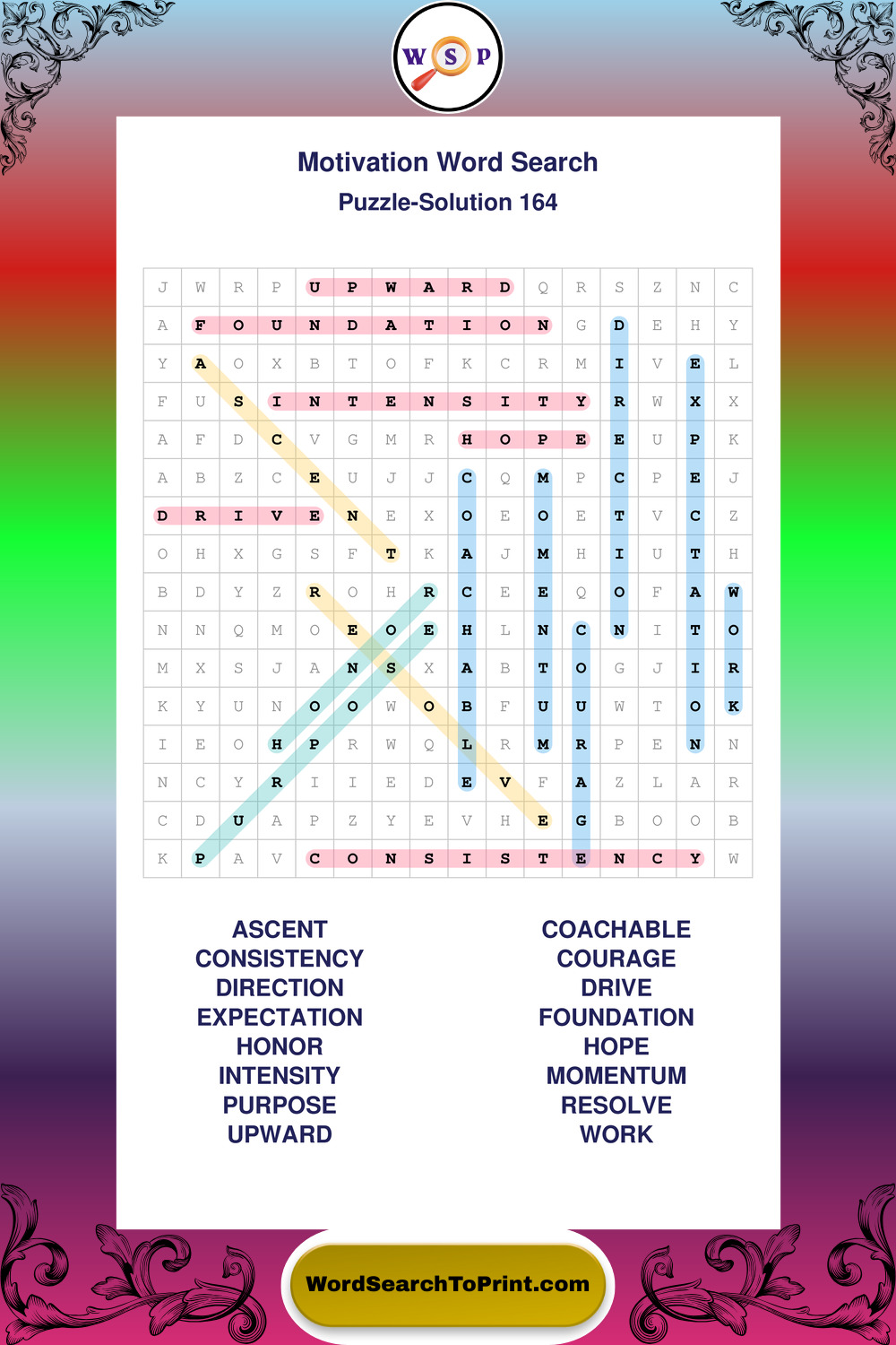 These puzzles focus on motivation, goal setting, life lessons, inspiration, and personal development concepts. They offer a structured and engaging way to explore this topic while strengthening concentration and vocabulary recognition. You may also enjoy our Inspiration word search puzzles and Wisdom word search puzzles.