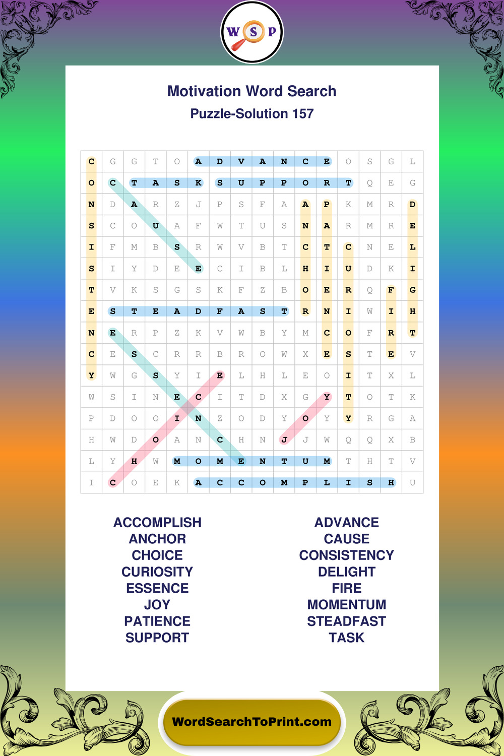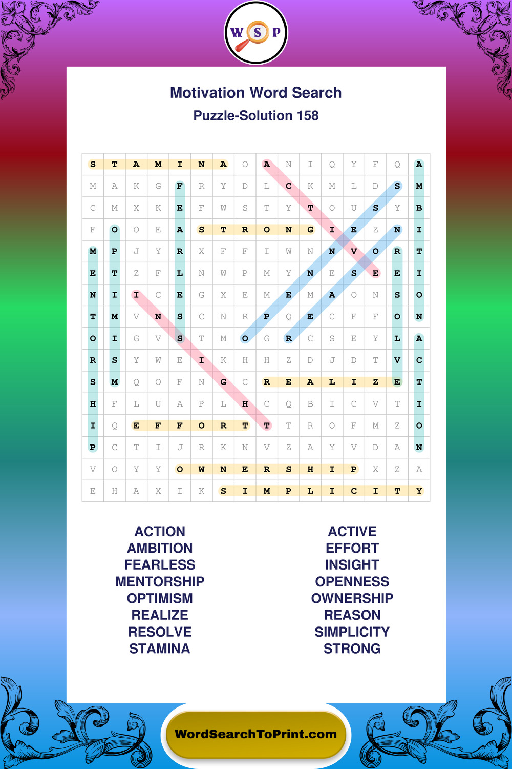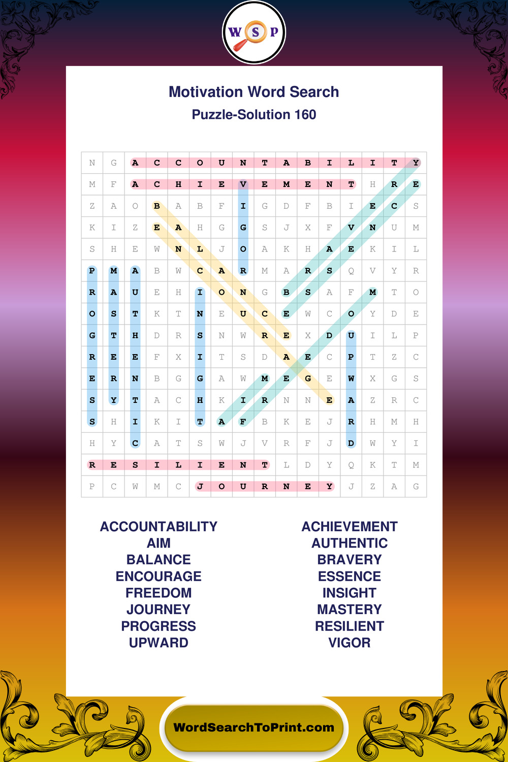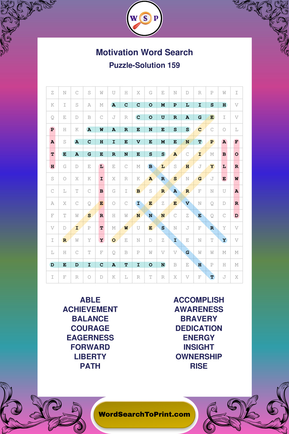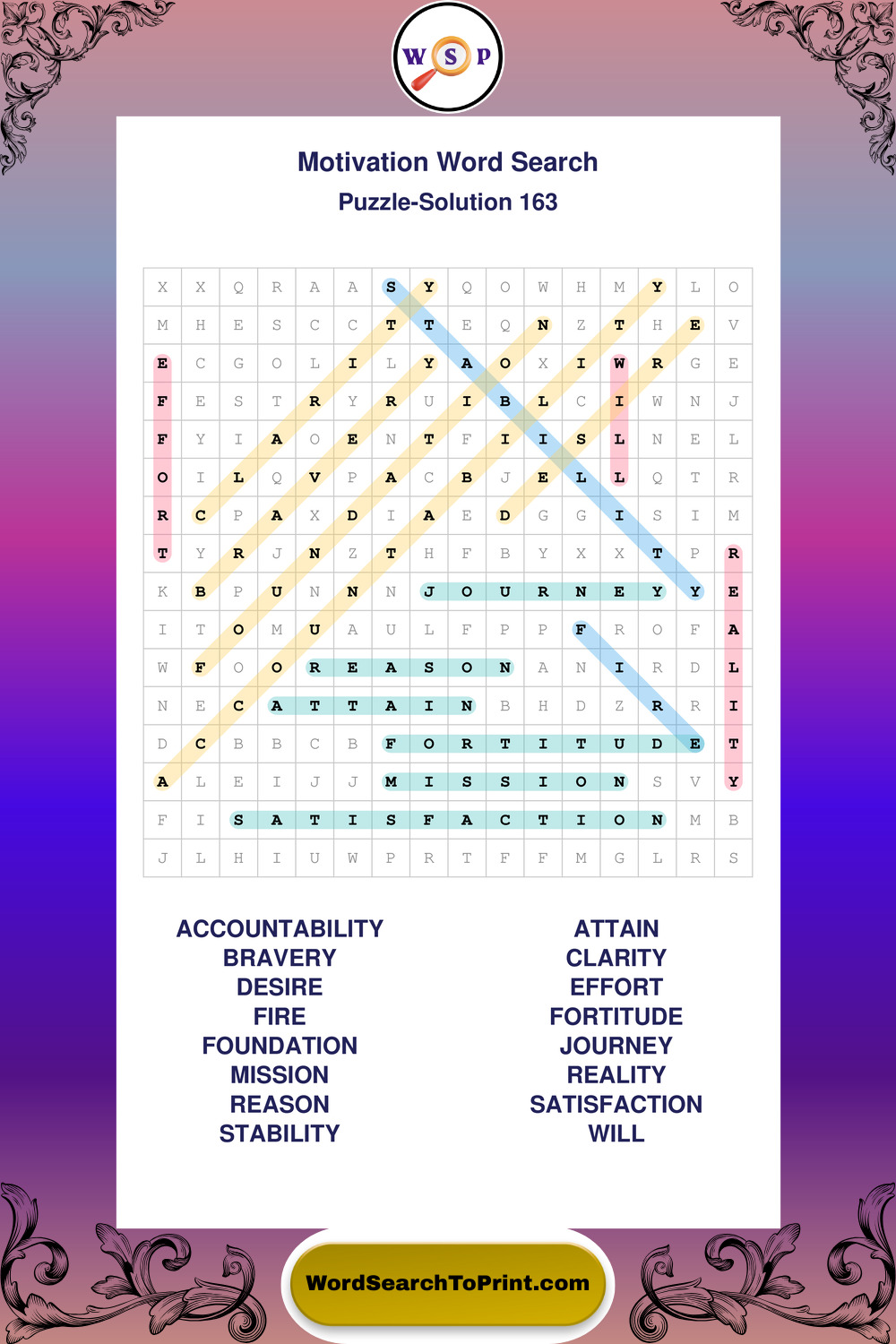 These puzzles focus on motivation, goal setting, life lessons, inspiration, and personal development concepts. They offer a structured and engaging way to explore this topic while strengthening concentration and vocabulary recognition. You may also enjoy our Inspiration word search puzzles and Wisdom word search puzzles.