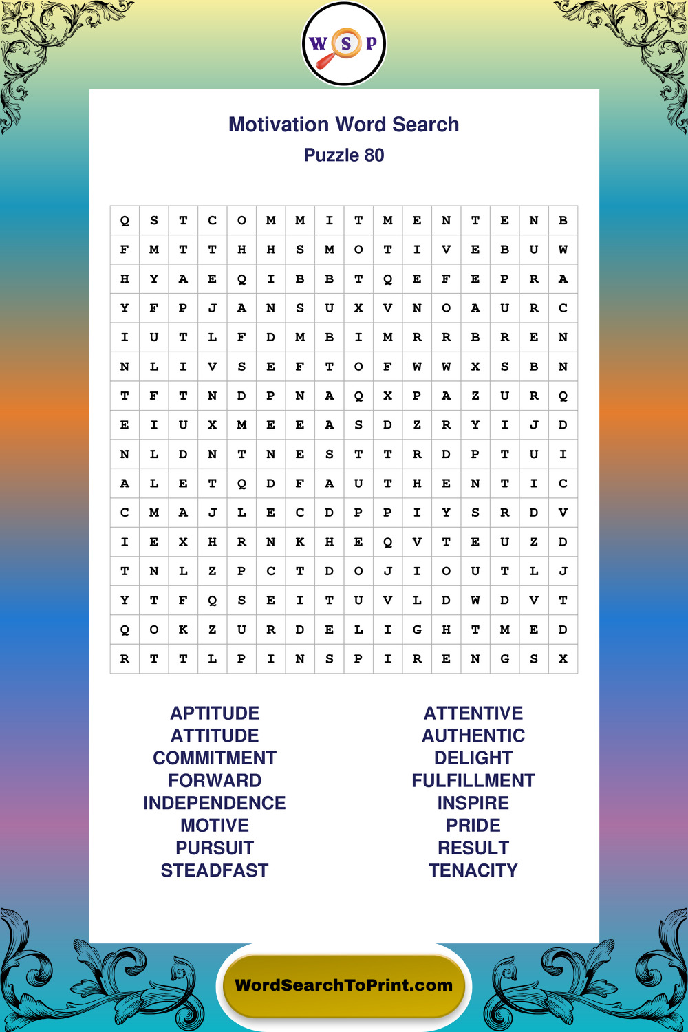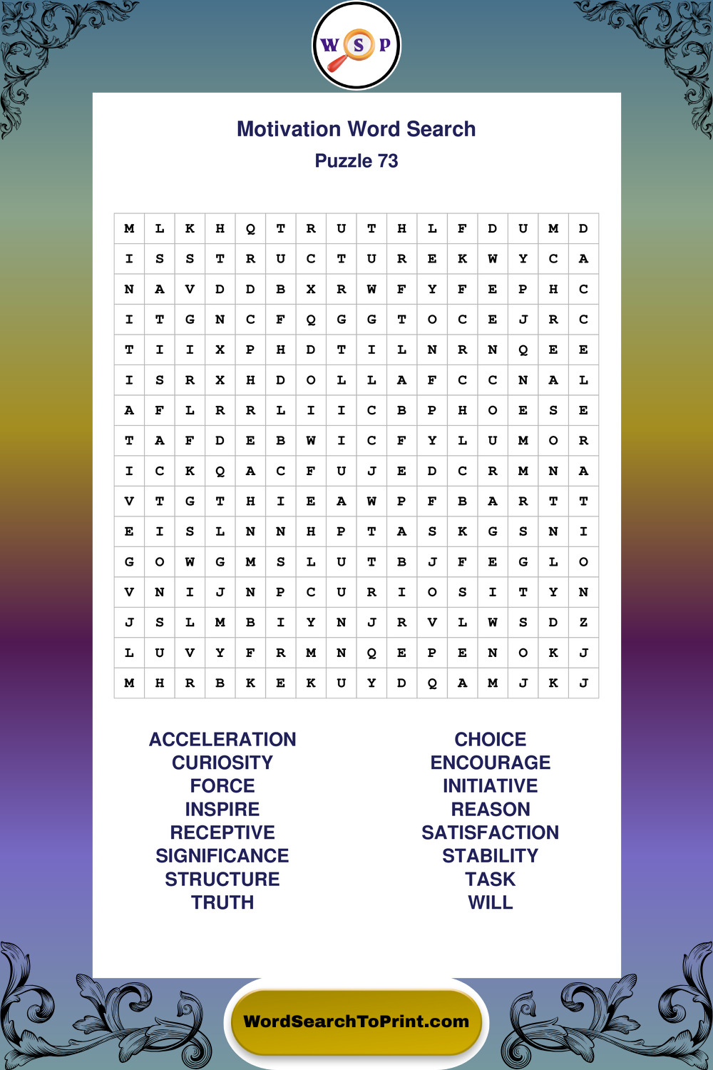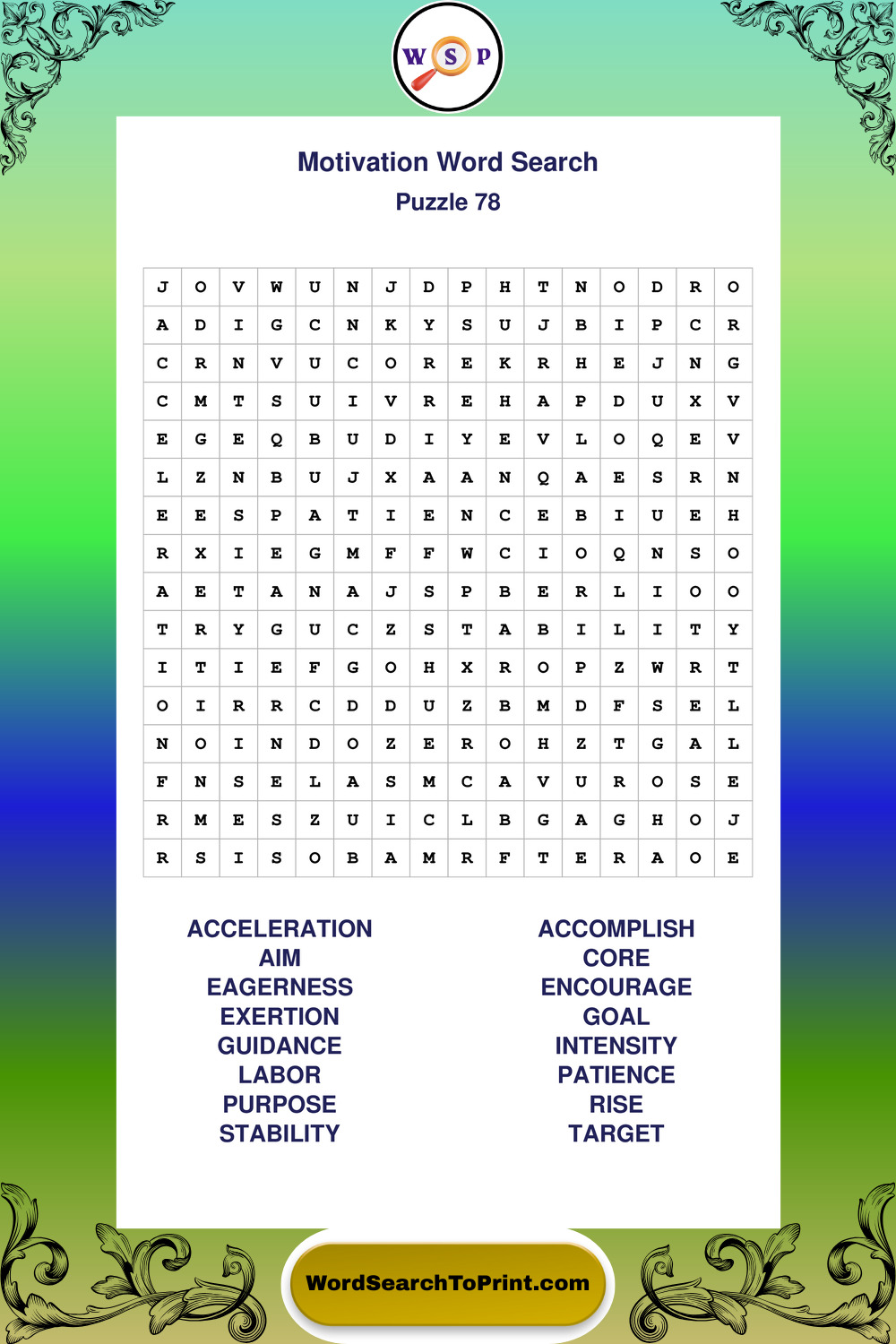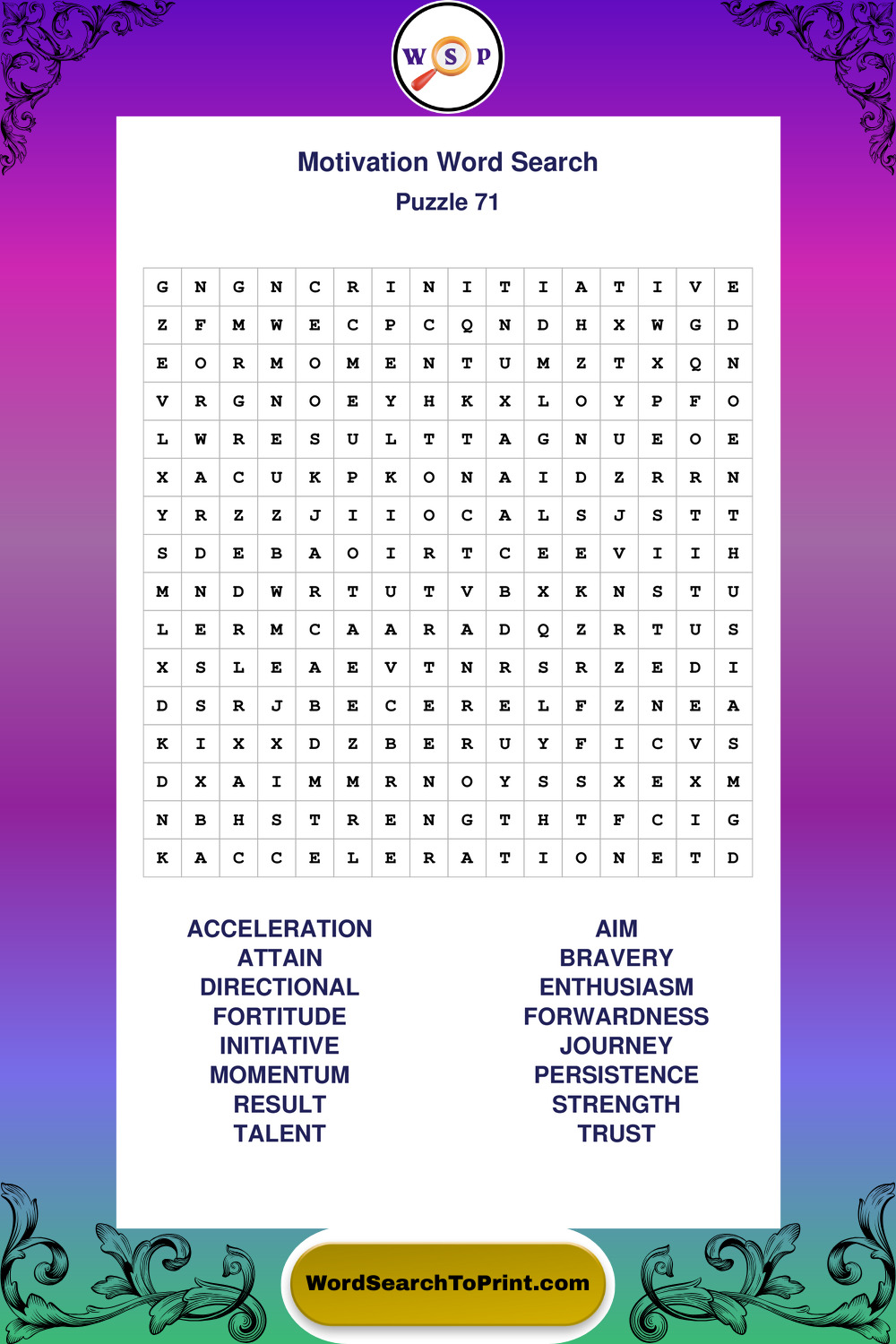 Printable Motivation Wordsearch Puzzles