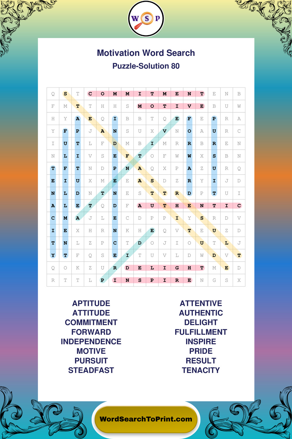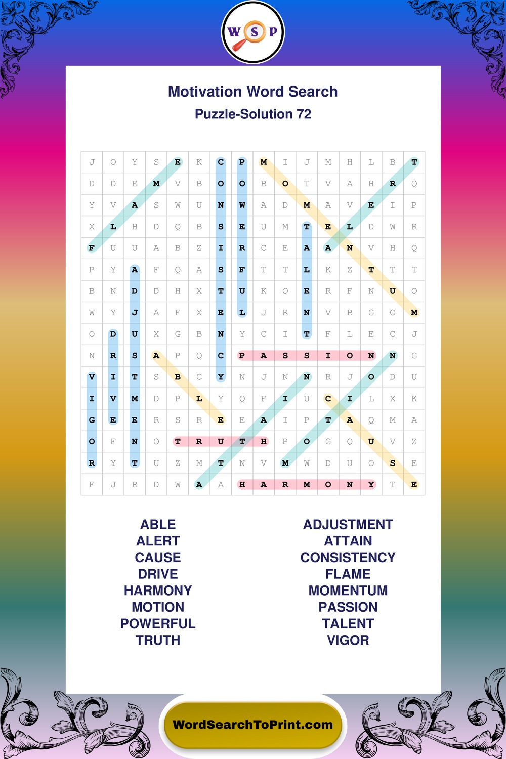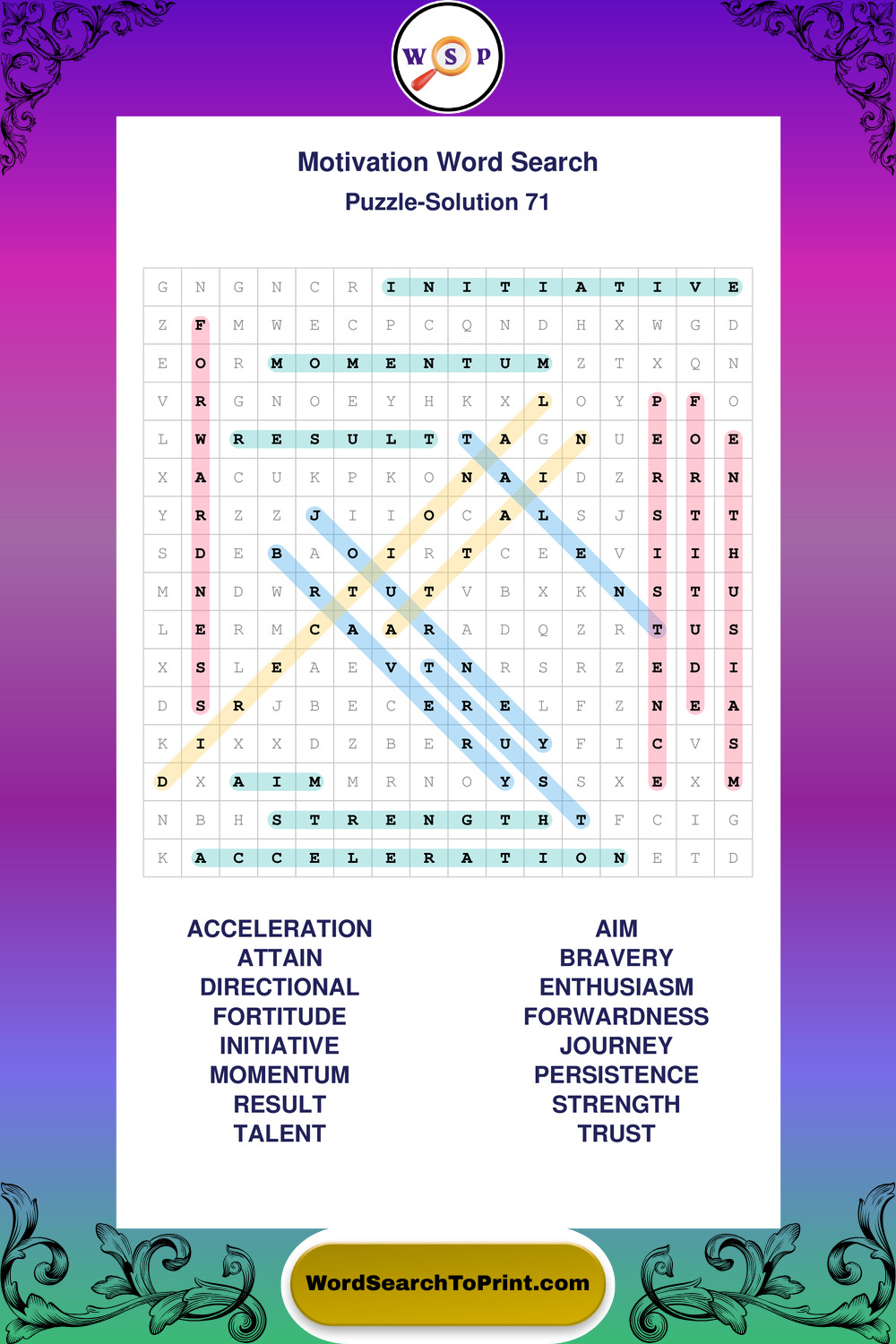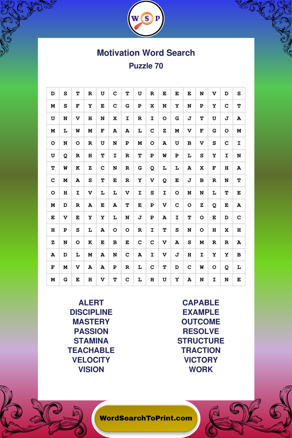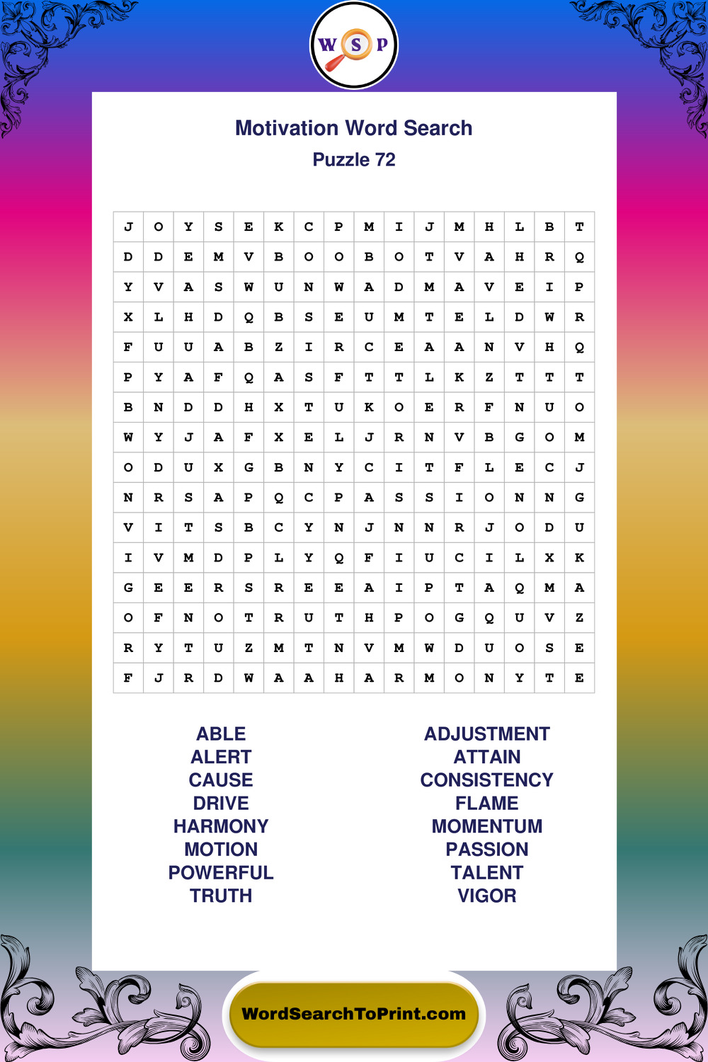 Printable Motivation Wordsearch Puzzles