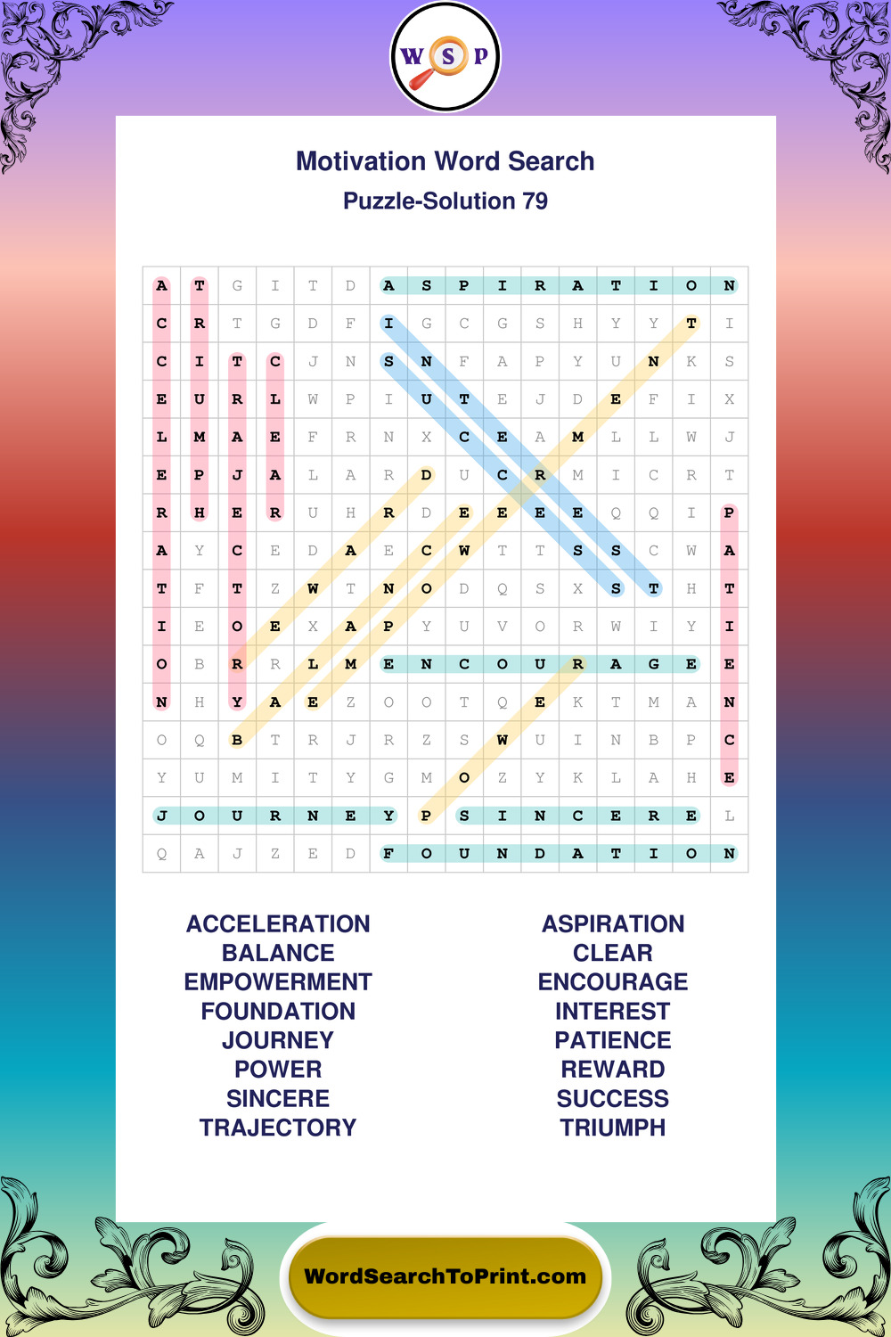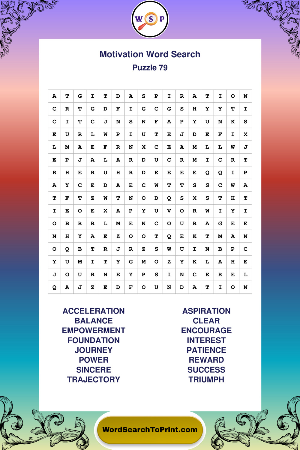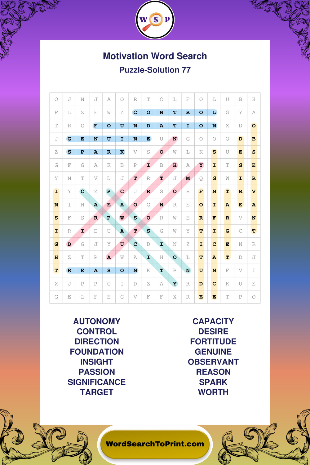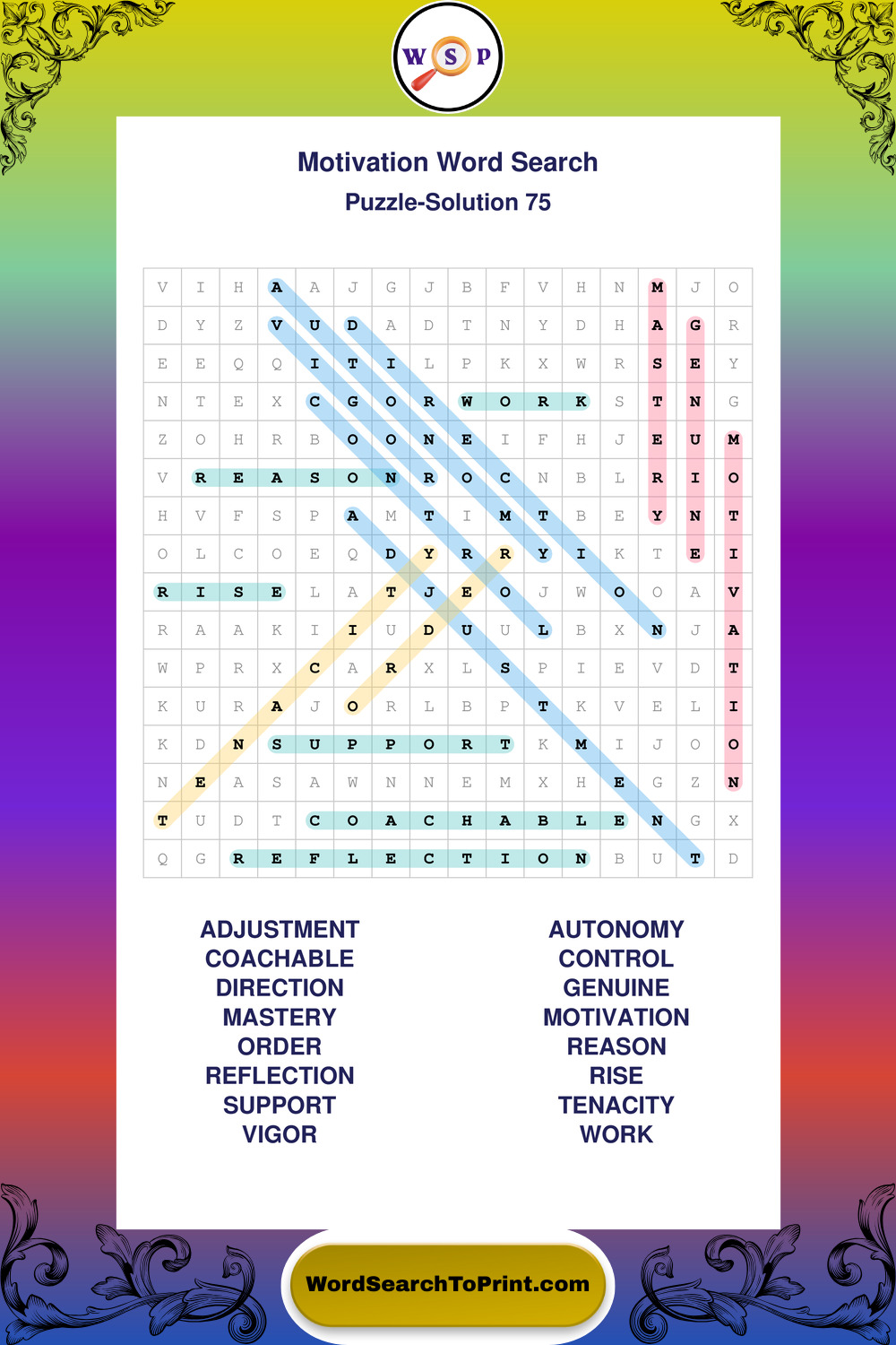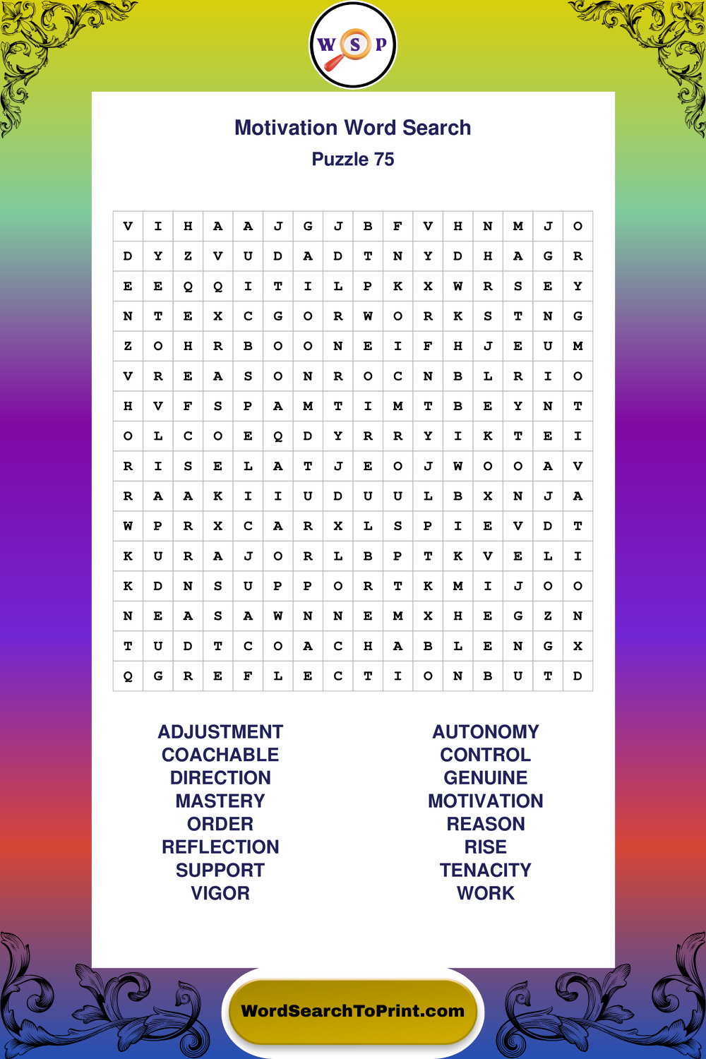These puzzles focus on motivation, goal setting, life lessons, inspiration, and personal development concepts. They offer a structured and engaging way to explore this topic while strengthening concentration and vocabulary recognition. You may also enjoy our Inspiration word search puzzles and Wisdom word search puzzles.