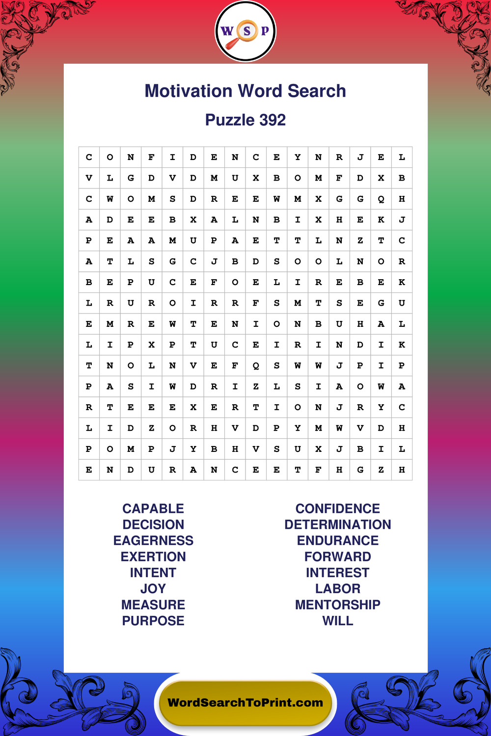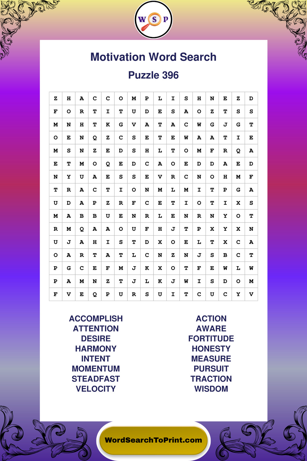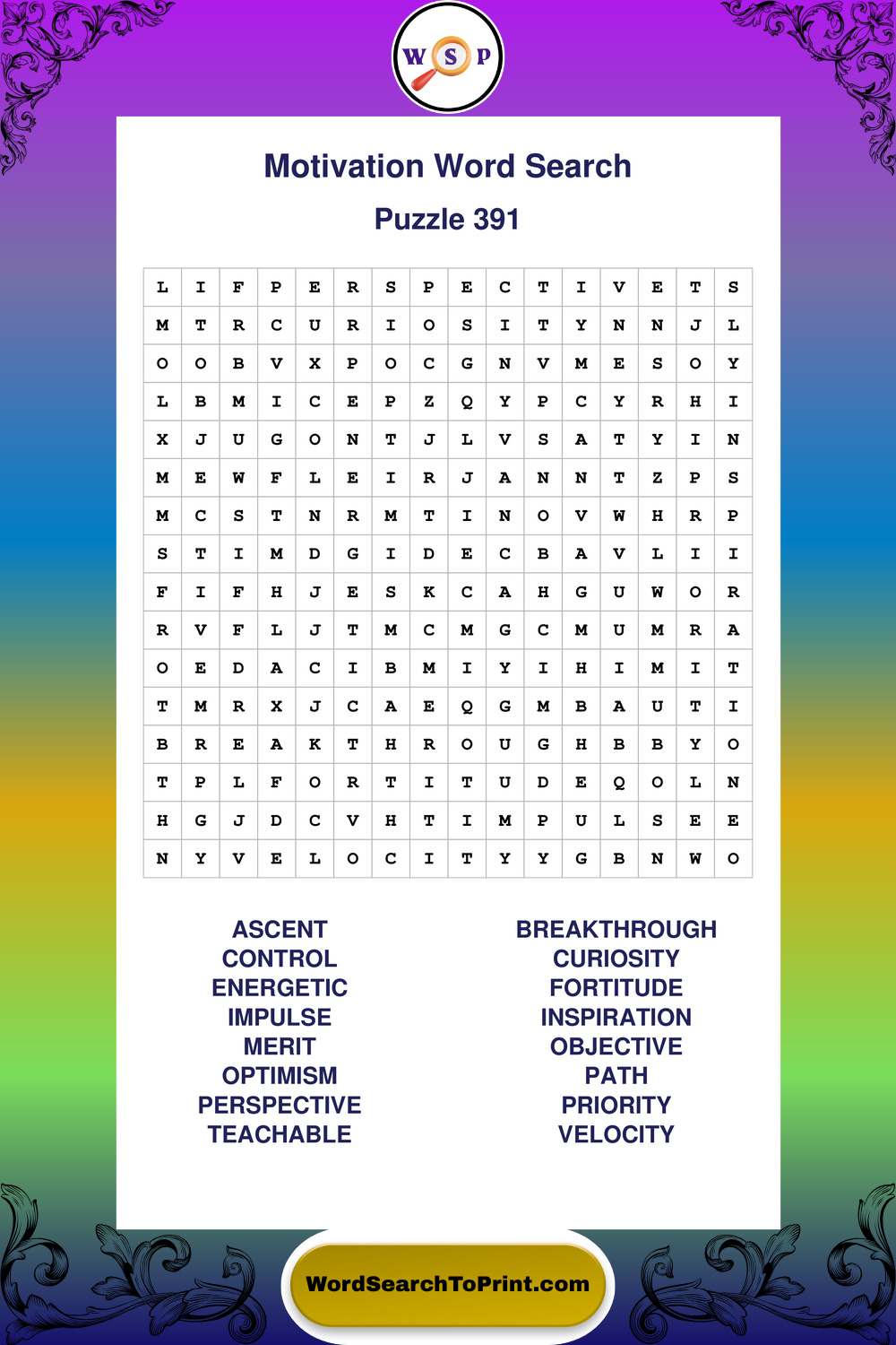 These puzzles focus on motivation, goal setting, life lessons, inspiration, and personal development concepts. They offer a structured and engaging way to explore this topic while strengthening concentration and vocabulary recognition. You may also enjoy our Inspiration word search puzzles and Wisdom word search puzzles.