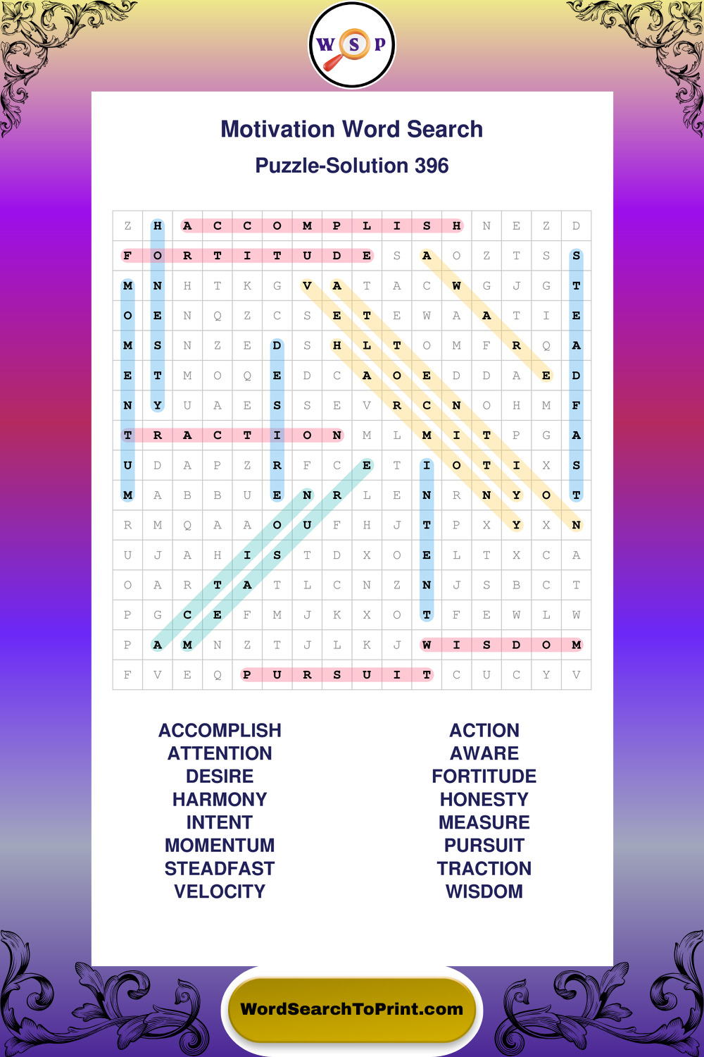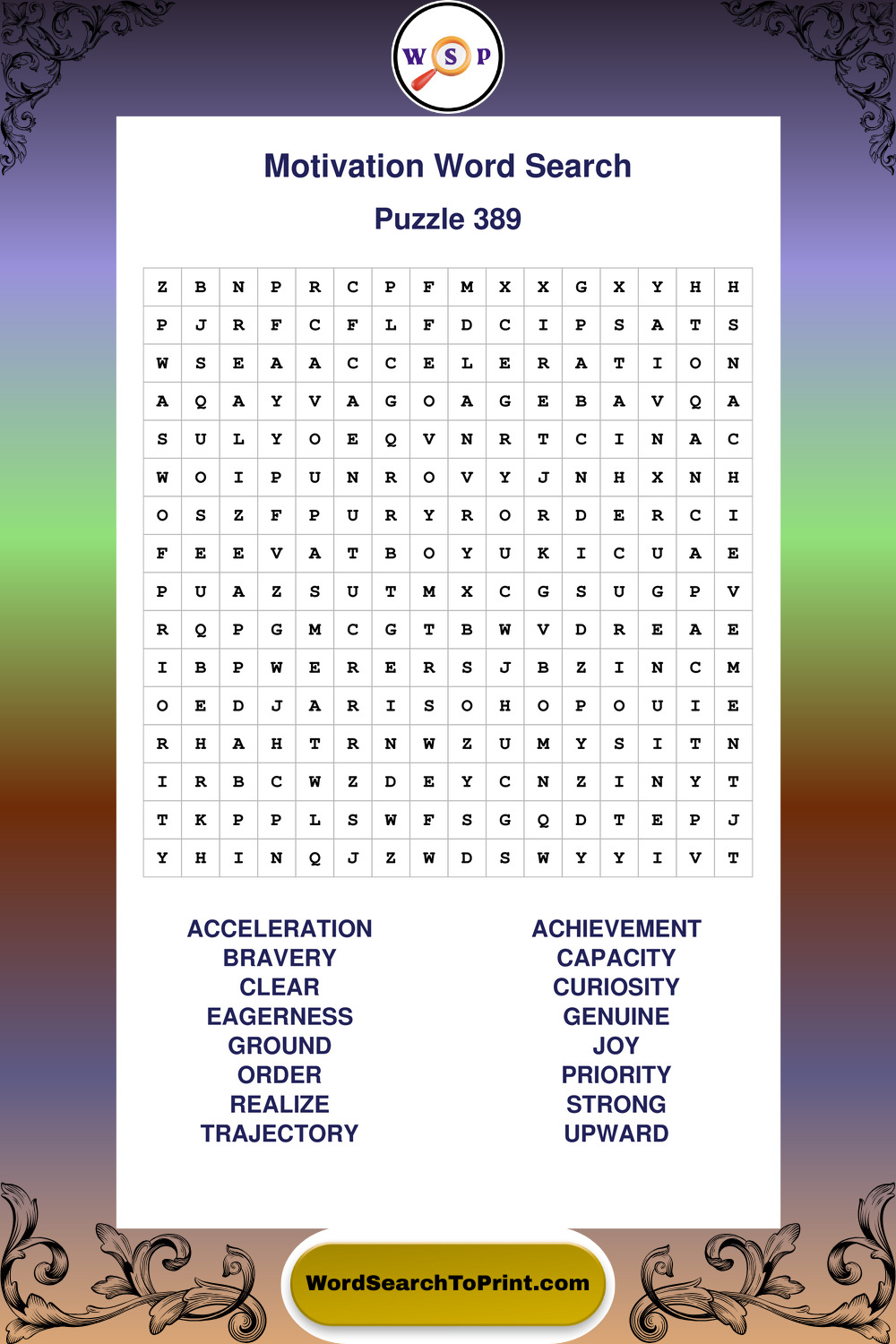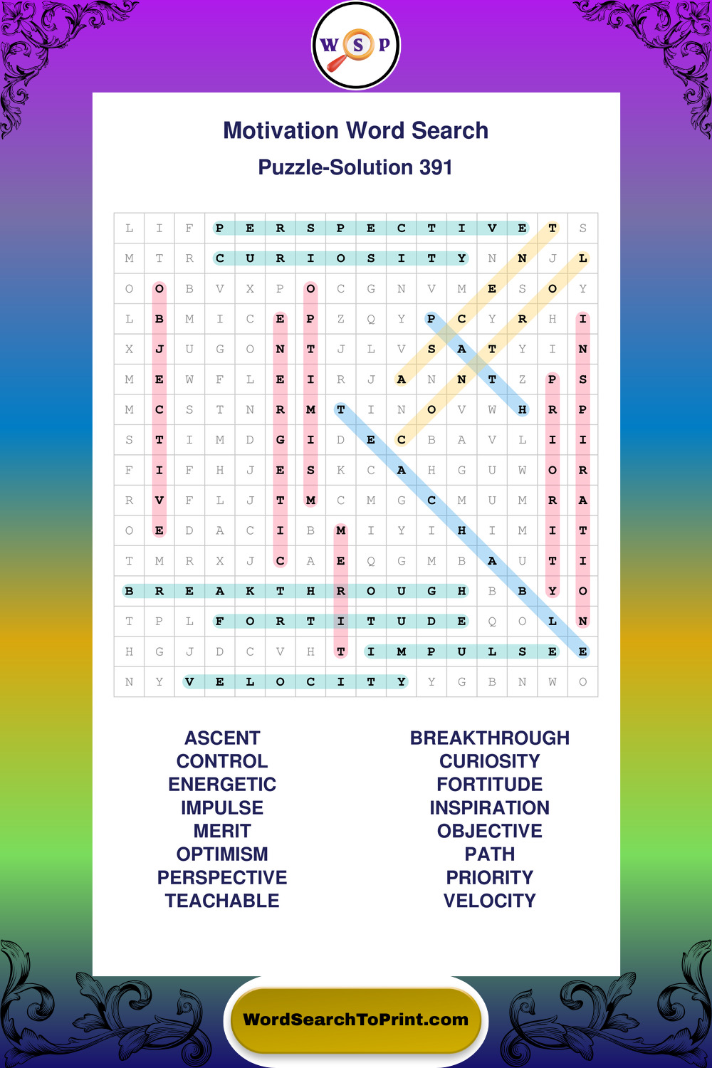These puzzles focus on motivation, goal setting, life lessons, inspiration, and personal development concepts. They offer a structured and engaging way to explore this topic while strengthening concentration and vocabulary recognition. You may also enjoy our Inspiration word search puzzles and Wisdom word search puzzles.
