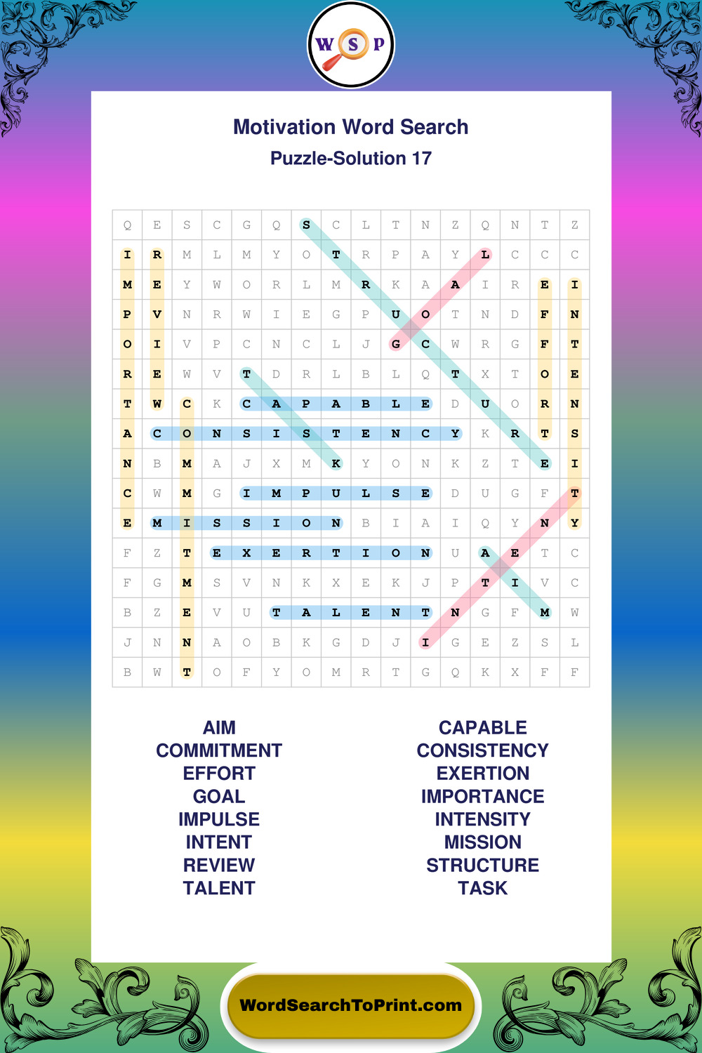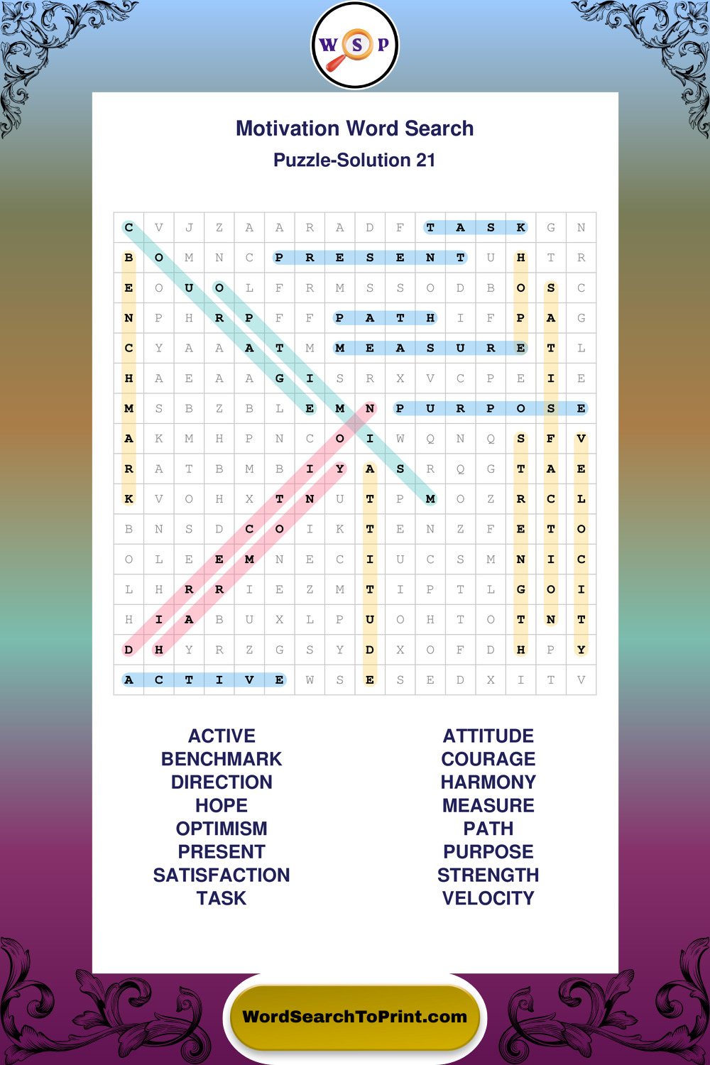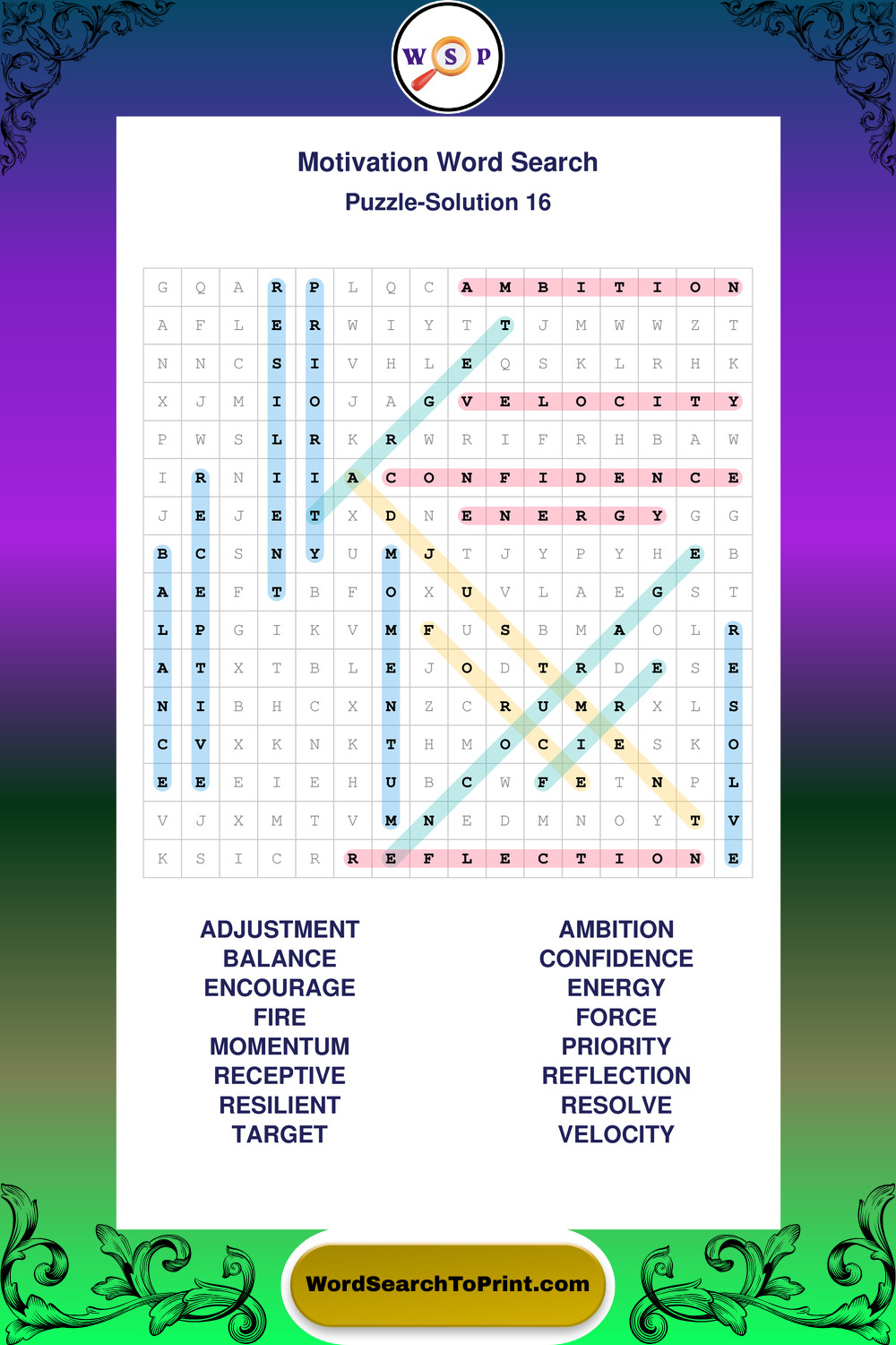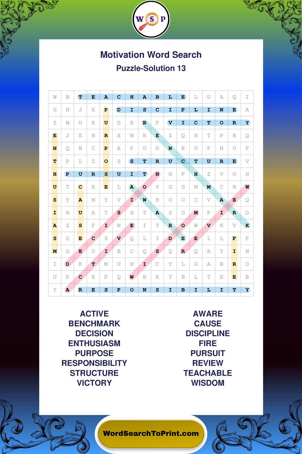 These puzzles focus on motivation, goal setting, life lessons, inspiration, and personal development concepts. They offer a structured and engaging way to explore this topic while strengthening concentration and vocabulary recognition. You may also enjoy our Inspiration word search puzzles and Wisdom word search puzzles.