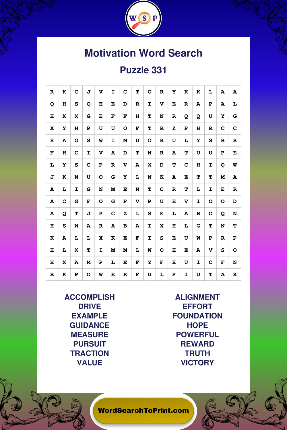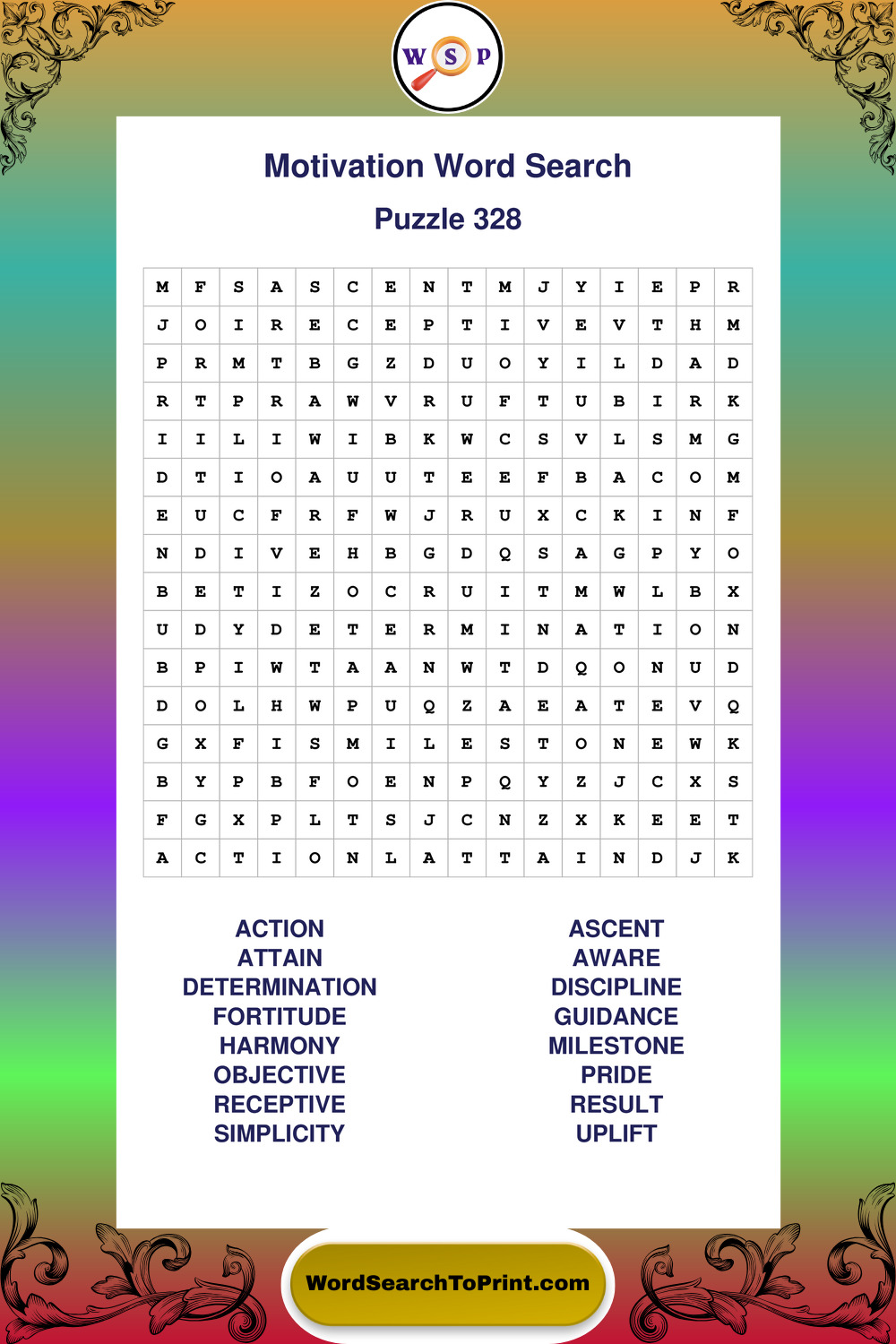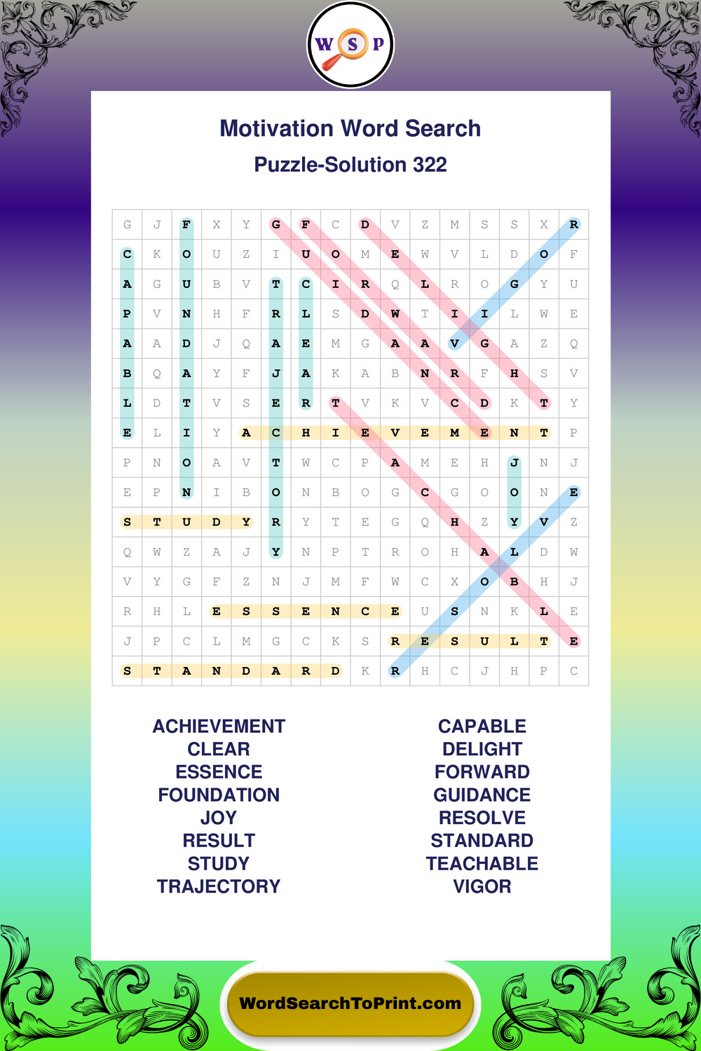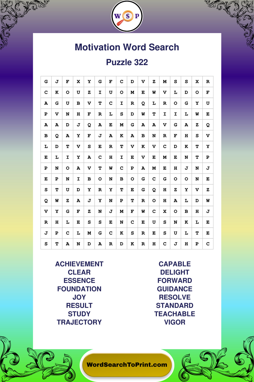 These puzzles focus on motivation, goal setting, life lessons, inspiration, and personal development concepts. They offer a structured and engaging way to explore this topic while strengthening concentration and vocabulary recognition. You may also enjoy our Inspiration word search puzzles and Wisdom word search puzzles.