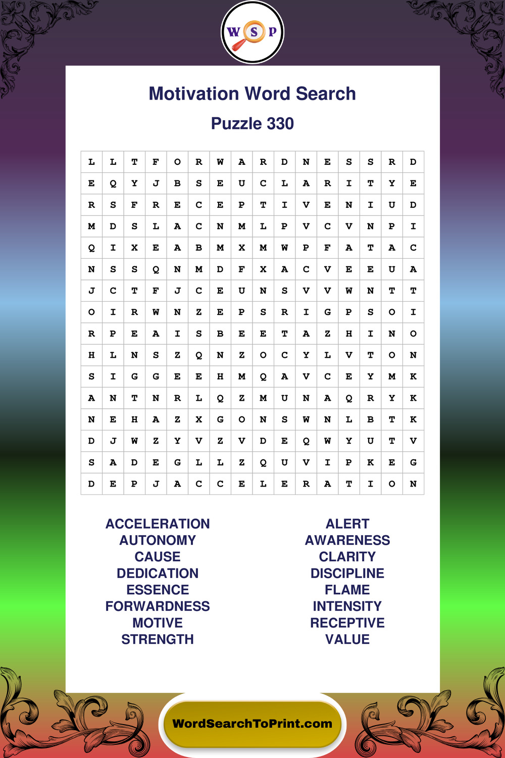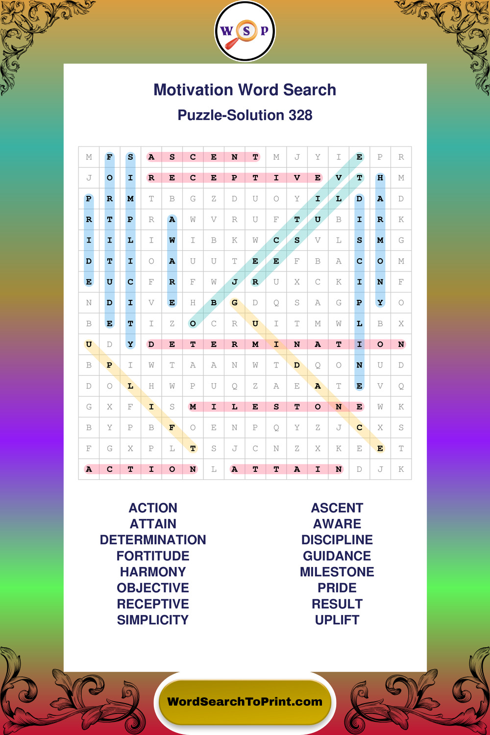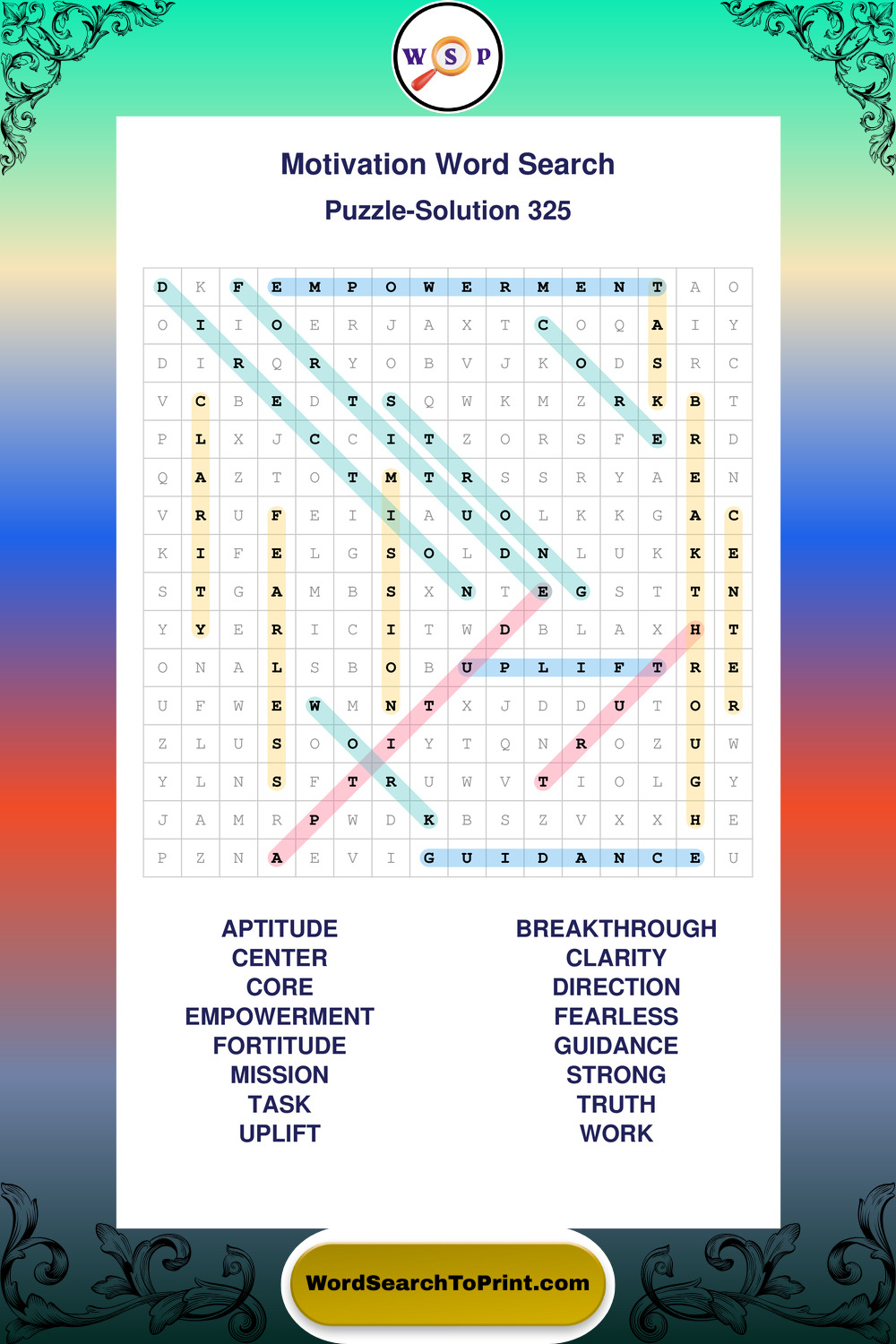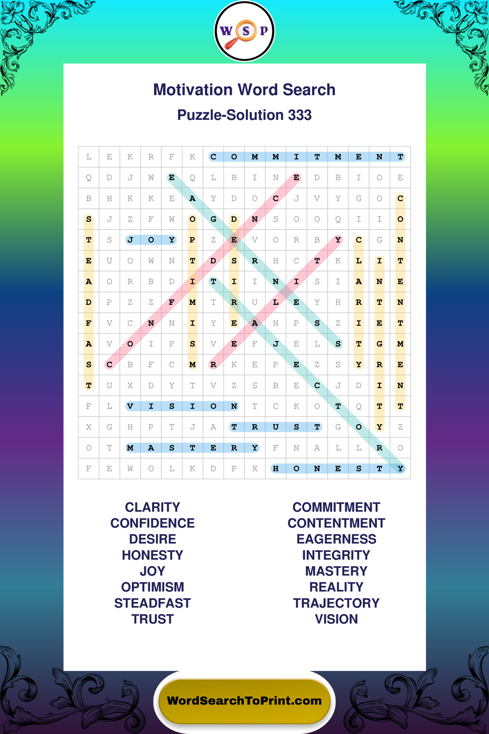 These puzzles focus on motivation, goal setting, life lessons, inspiration, and personal development concepts. They offer a structured and engaging way to explore this topic while strengthening concentration and vocabulary recognition. You may also enjoy our Inspiration word search puzzles and Wisdom word search puzzles.